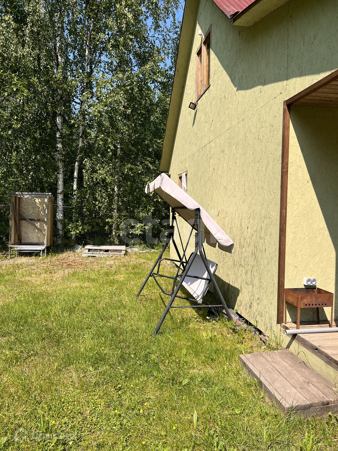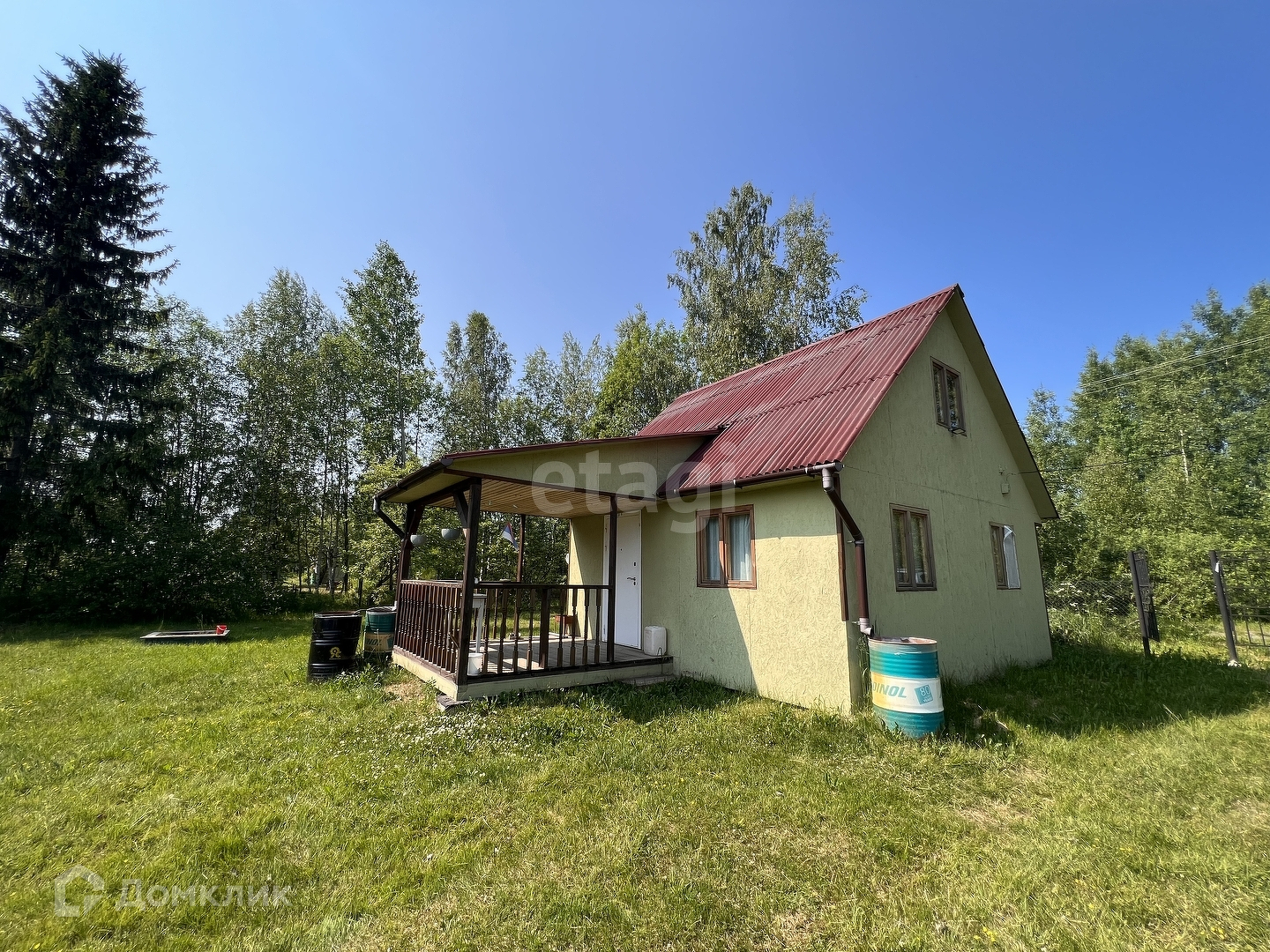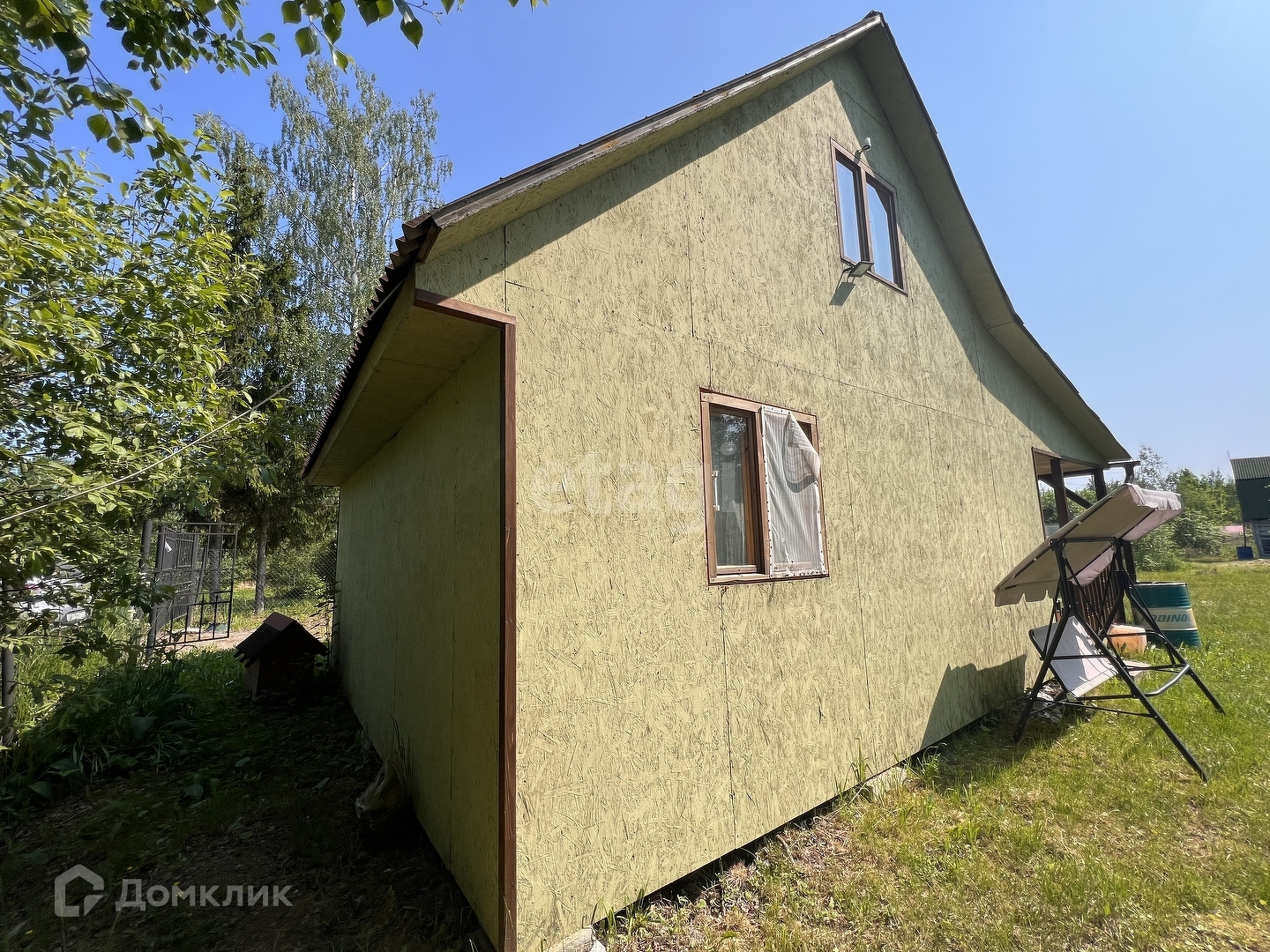 ДОМ каркасно-щитовой 36 кв. м. с верандой 9 кв.м. внутри обшит вагонкой. Стены, потолок и перегородки утеплены 100 мм утеплителем, в полу 150 мм и пароветрозащита. В доме 2 комнаты по 6 кв.м. и большая кухня. Вся мебель остаётся. Дом отапливается конверторными обогревателями.