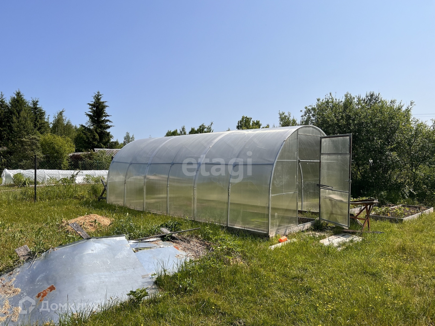 НА УЧАСТКЕ 6 соток есть теплица 3*6 кв.м., хозблок железный 3*3, туалет и качель. Участок угловой, соседи только с двух сторон.