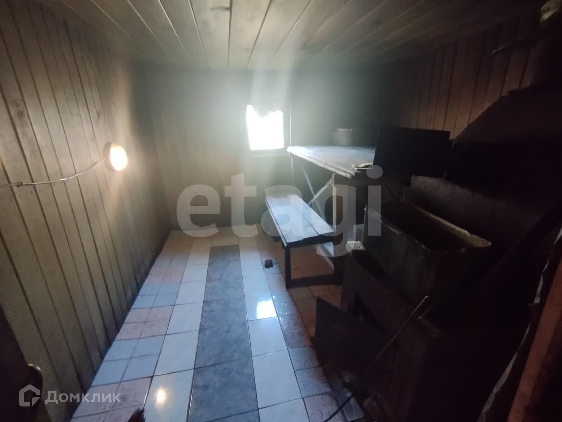 Баня из брёвна на фундаменте, состоит из нескольких помещений (закрытая веранда, комната отдыха, помывочная-парная).