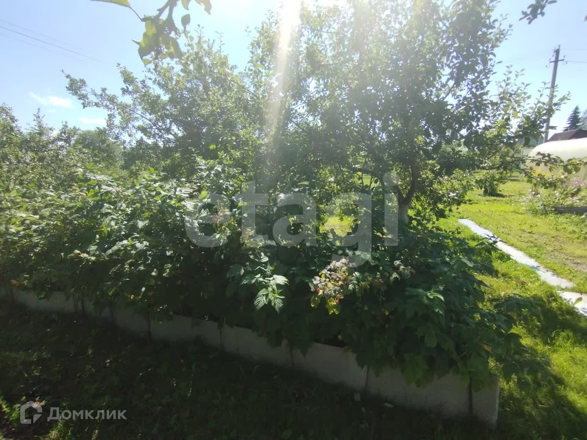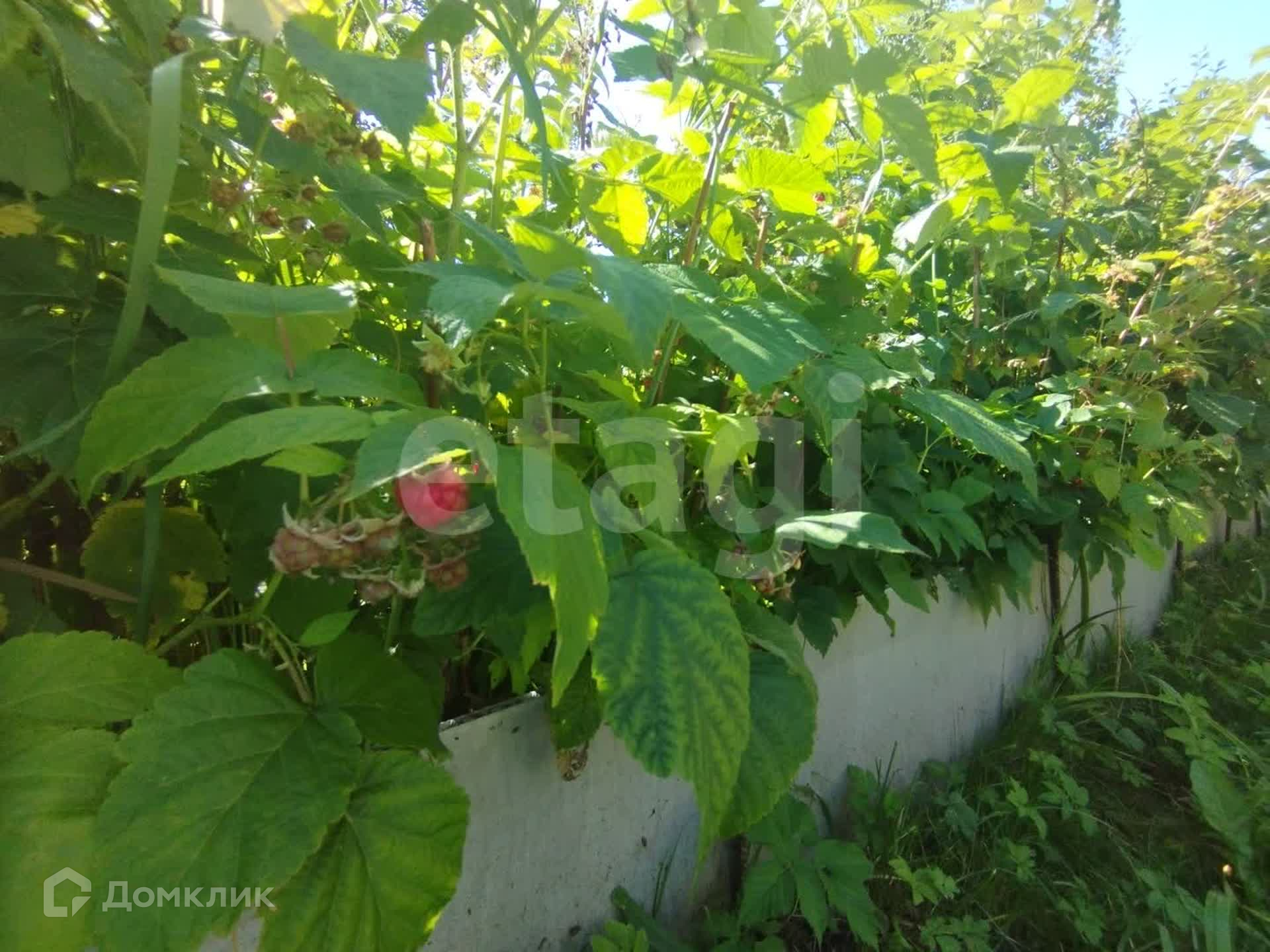 Плодовые деревья, множество кустов ( яблони, смородина, малина и т.д.)