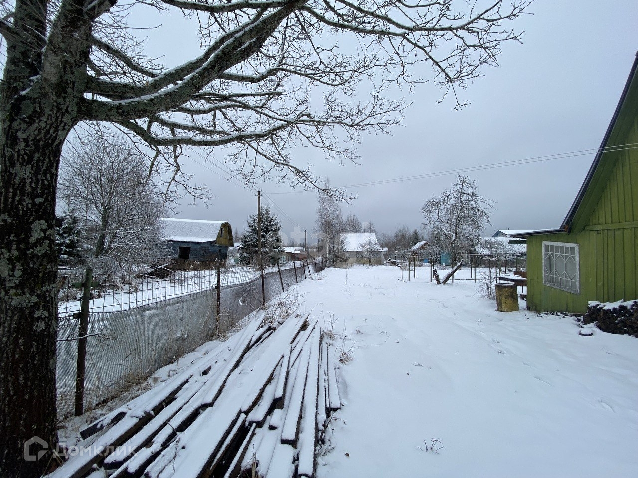 Продается огороженный участок с небольшим домиком.