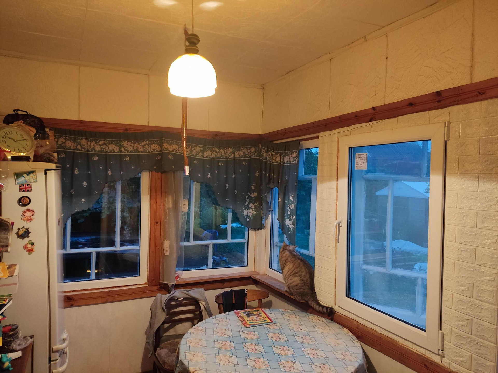 Участок 6 соток (по факту где то 7,5) , дом 6*6 , установлены стеклопакеты(получается двойное остекление, изнутри однокамерный стеклопакет, снаружи деревянное остекление), пол дома утеплён минеральной ватой , при температуре воздуха 0 градусов, в доме на первом этаже достаточно включить один обогреватель чтобы было комфортно.