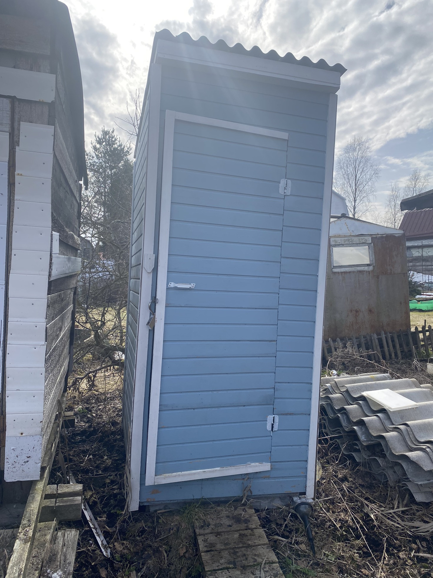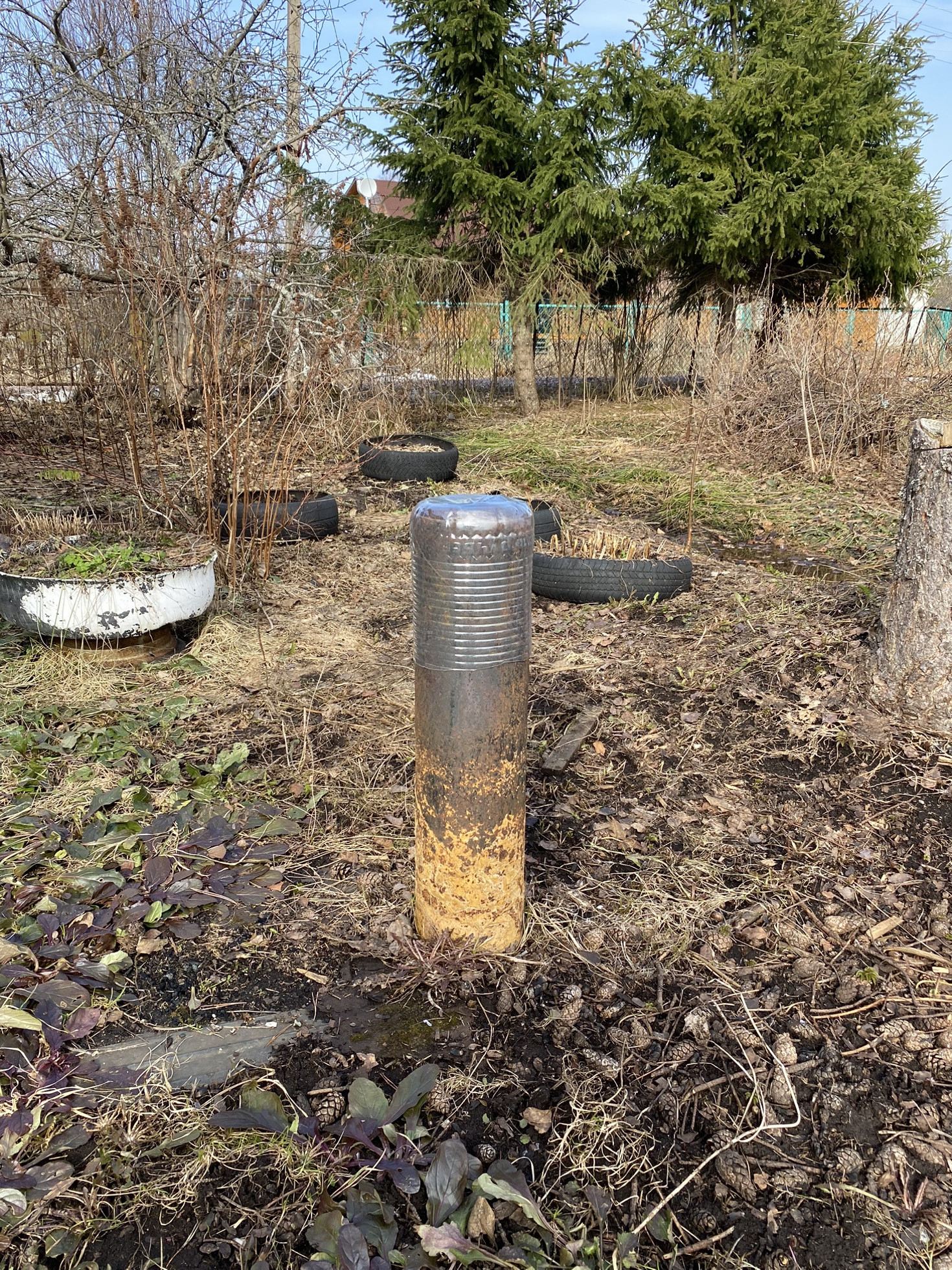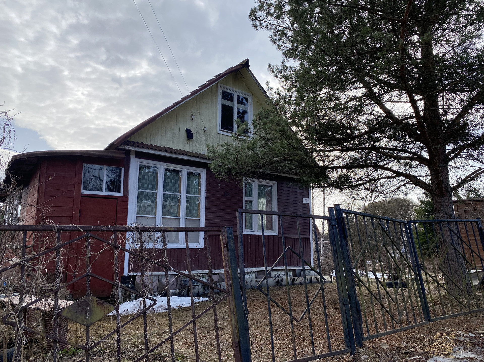 Плодородная земля, все растет очень хорошо. На участке три яблони:одна из них белый налив и две яблони зимний сорт. Есть вишня, слива, черная смородина. Посажены молодые кустарники: крыжовник, жимолость, голубика. Много цветов. Участок сухой, по фото видно, что еще кое-где лежит снег, но вода на участке не стоит.