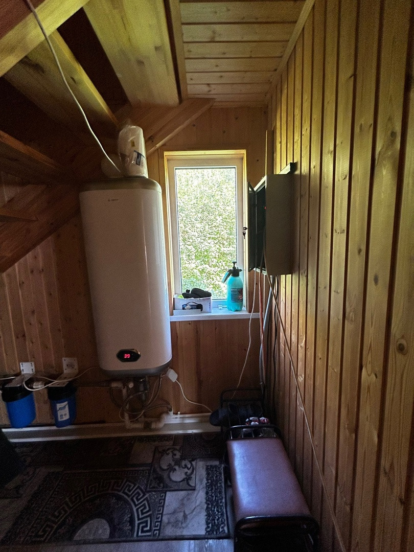 Все удобства подключены и заведены в дом. Холодная вода подается из своей скважины, горячая – водонагреватель. Септик рассчитан на четырех человек.