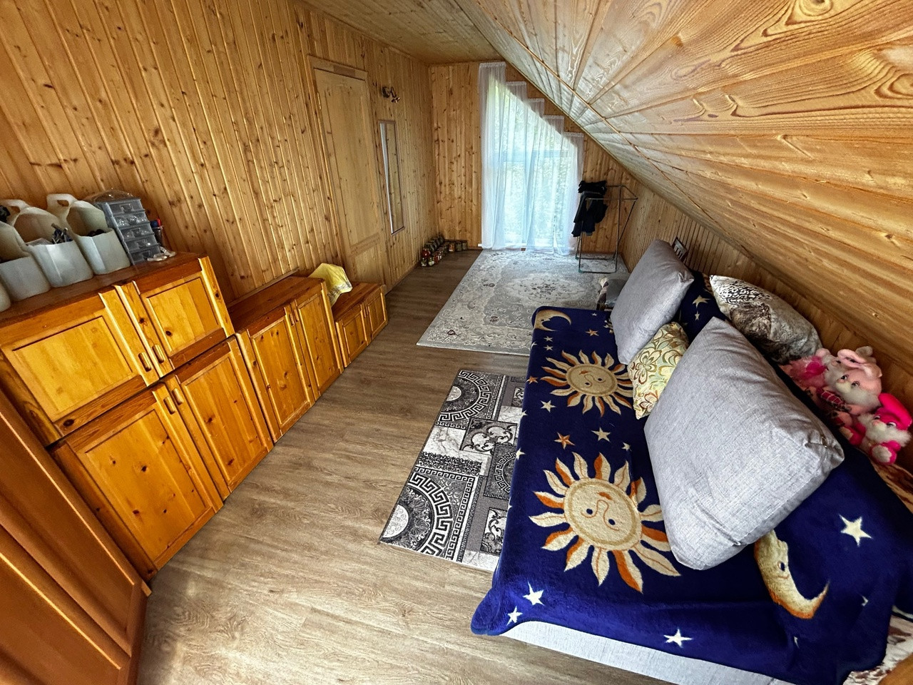 Продается двухэтажный дом, предназначен и для круглогодичного проживания. Дом просторный, теплый. Первый этаж отапливается теплыми полами, второй обогревателями. На первом этаже расположена большая кухня – гостиная, комната и санузел с душевой кабиной. Гостиная очень уютная и светлая благодаря большим окнам, наполняющих ее солнечным светом. На втором этаже находятся две спальные комнаты и туалет.