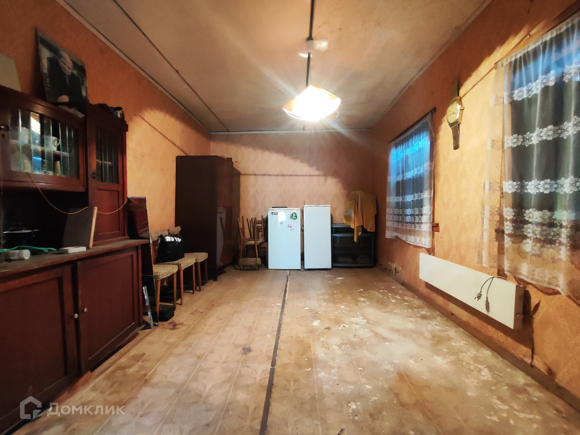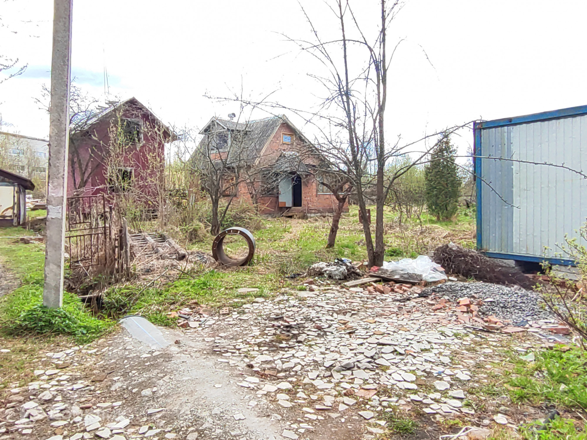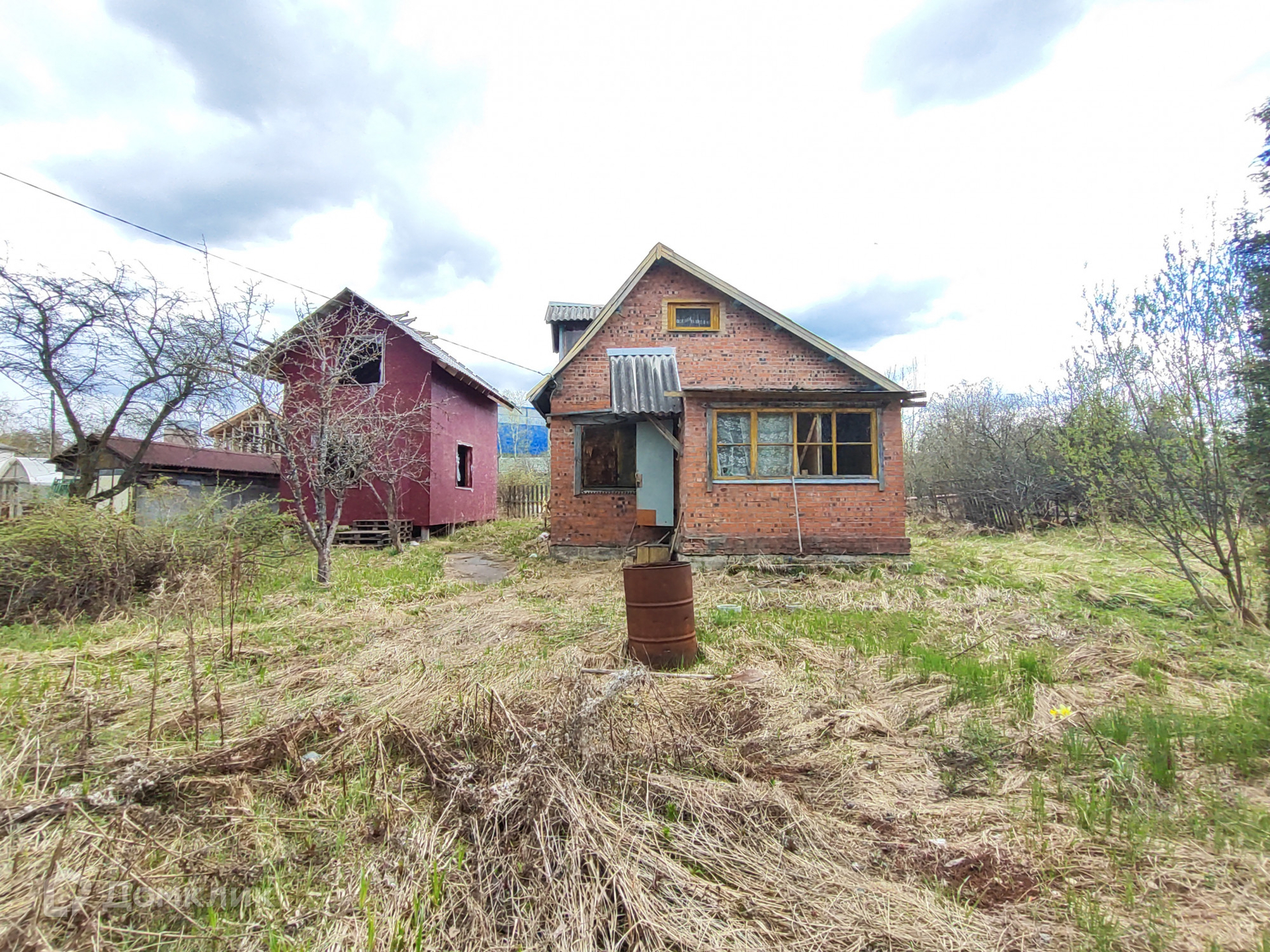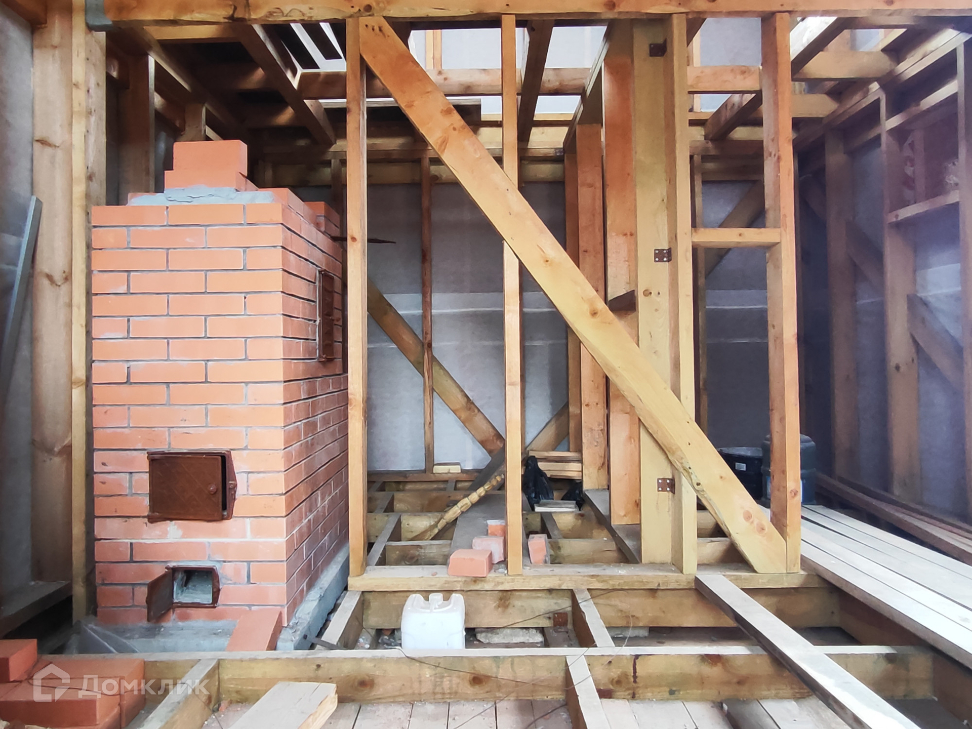 Кирпичный дом 1 этаж – 1 комната+ кухня, 2 этаж- комната с балконом. Крыша-шифер. Фундамент –блоки. Перекрытие между этажами бетонные плиты. Окна деревянные, в кухне установлена печь-камин. Дом требует ремонта.
