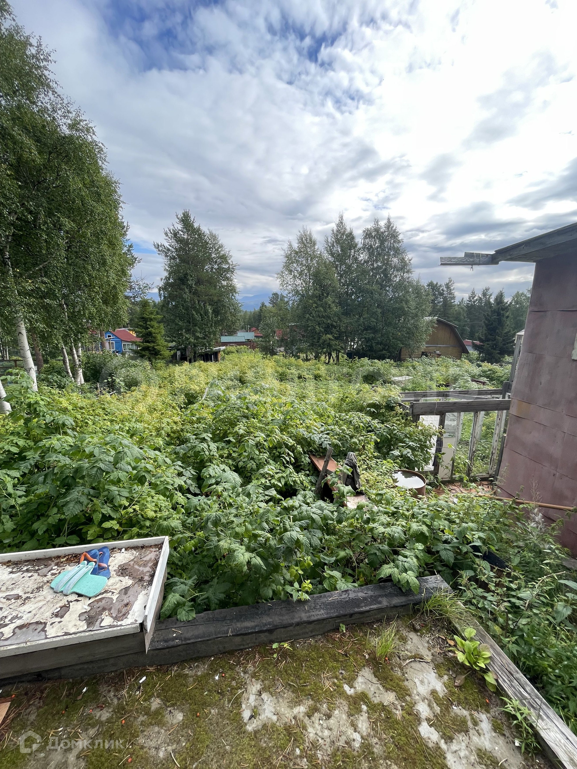 На плодородном участке оргомное количество кустов малины, выращиваются картофель, морковь и другие культуры.