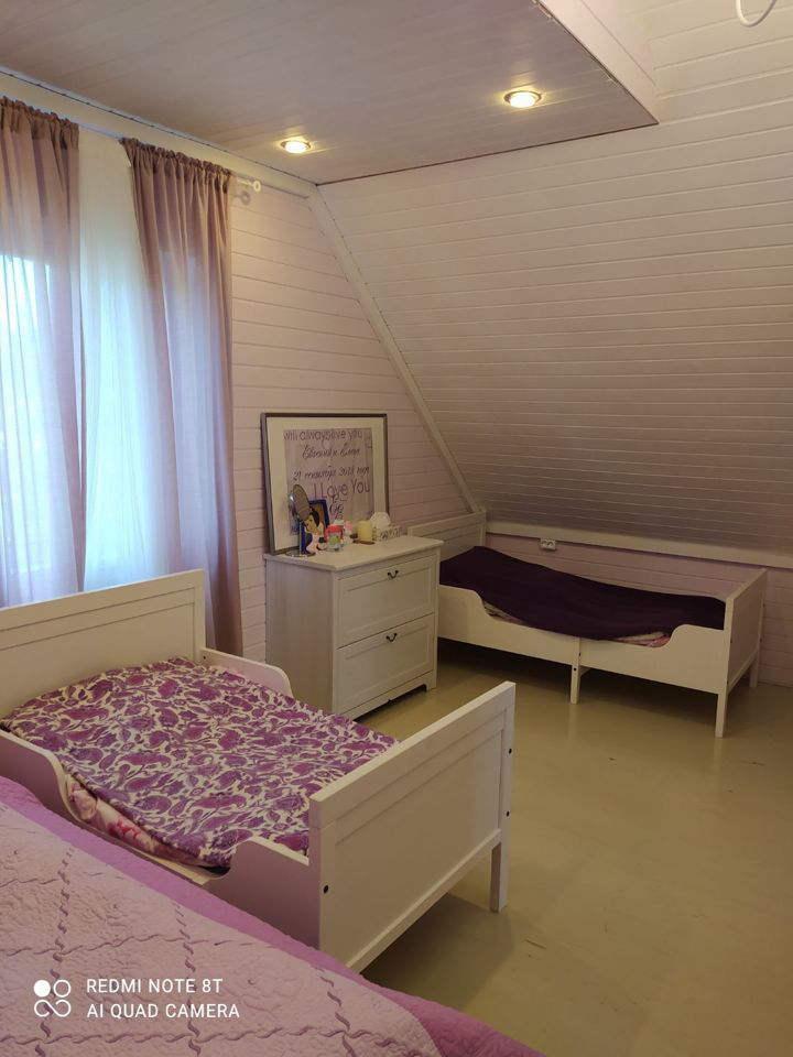Размер дома 7*9, брус 150*150, фундамент свайно-винтовой, дом строили для себя, поэтому все материалы качественные и экологичные, всю мебель оставляем. Также на участке металлический вагончик для хоз.инвентаря, бытовка с возможностью переделки под баню и домик-туалет. Детский спортивный комплекс. Колодец с водой для полива.