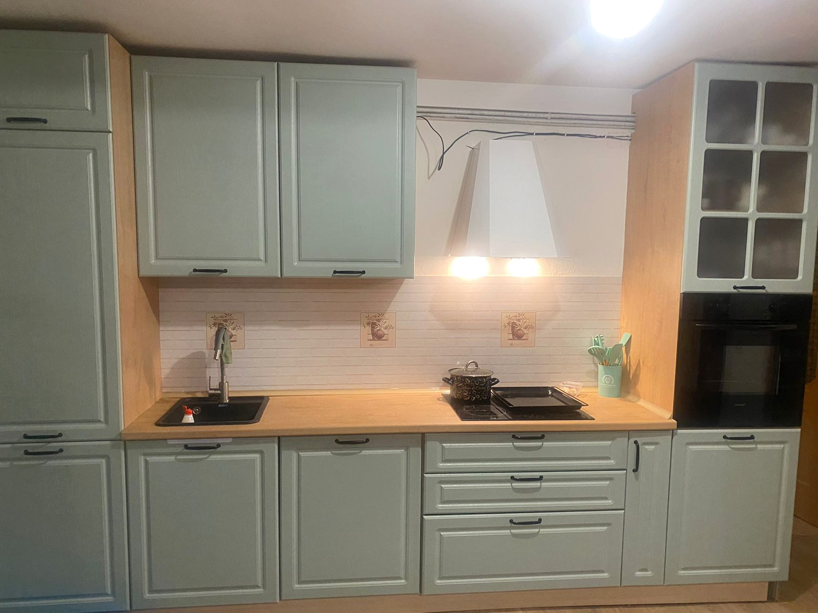 Установлена Новая шикарная кухня под заказ со встраиваемой бытовой техникой: посудомоечная машина, элеткроплита, духовой шкаф, вытяжка (есть чеки и гарантийные талоны)