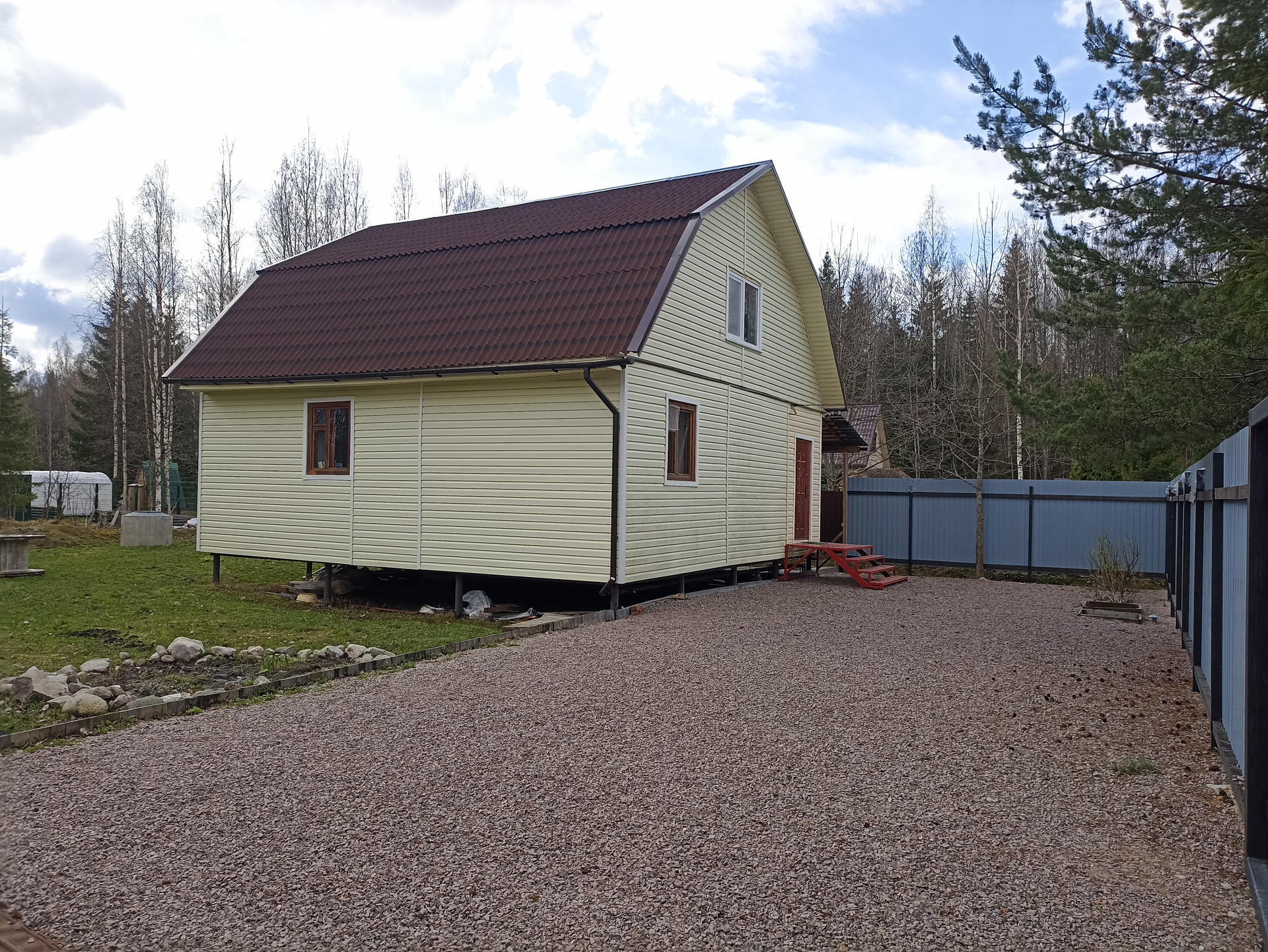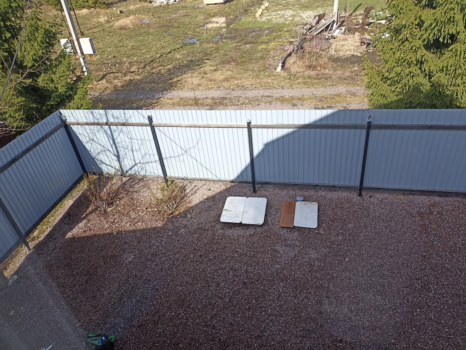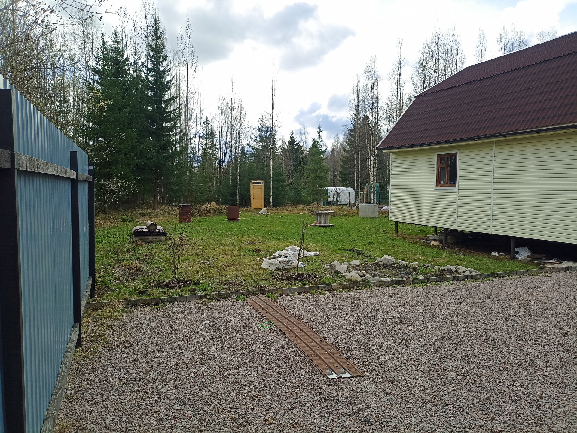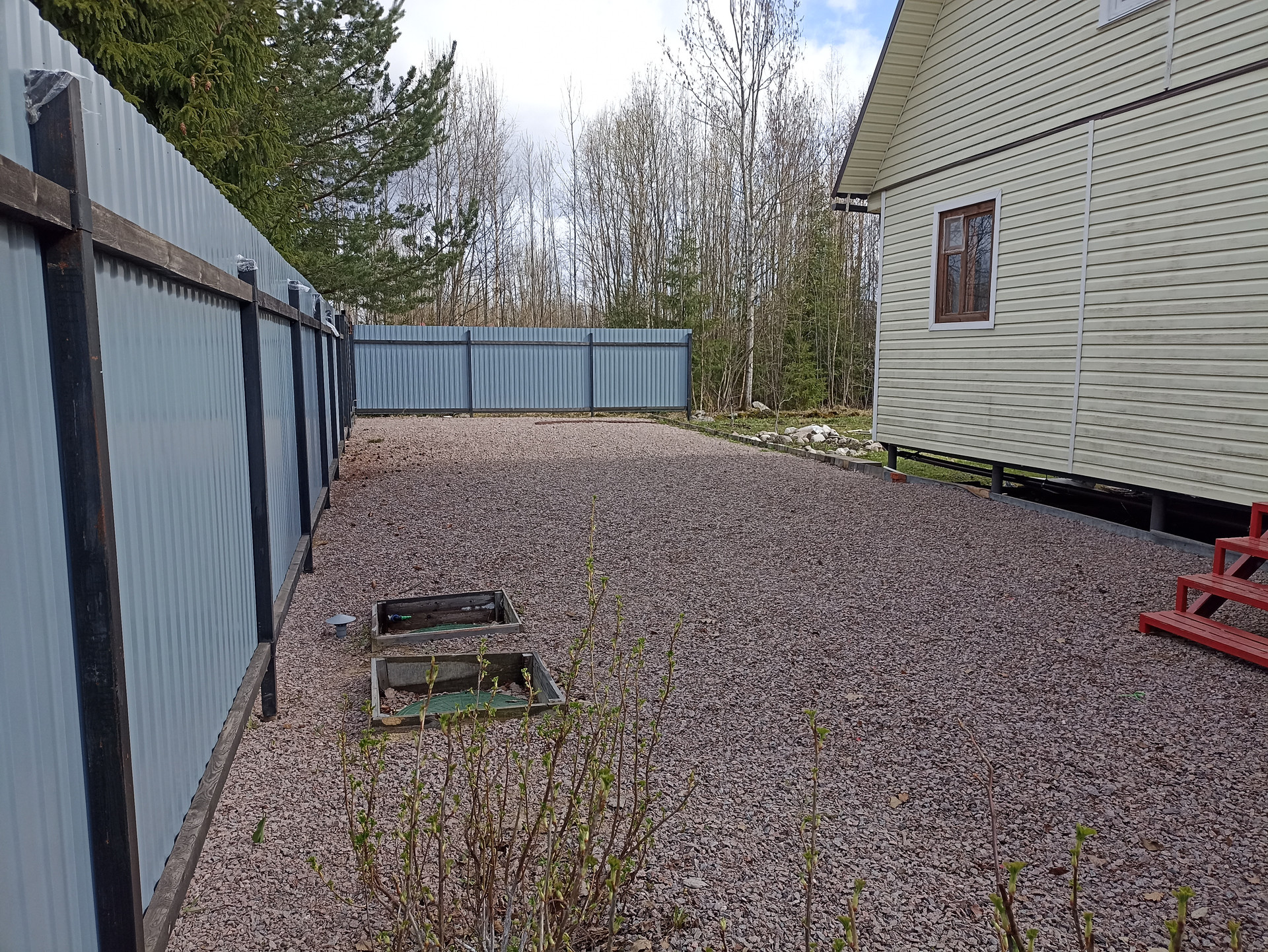 - Огорожен забором из проф-листа частично.