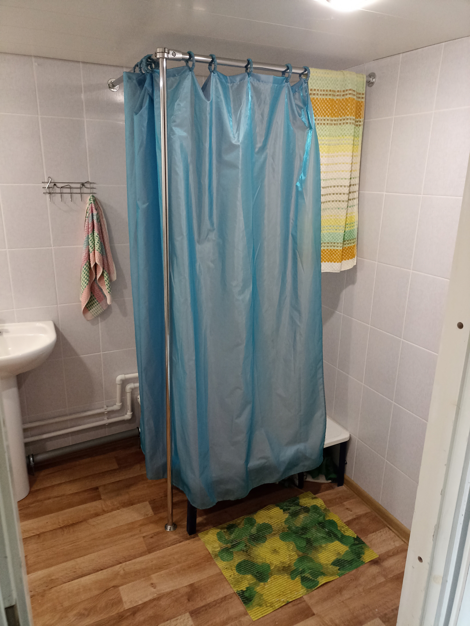 - Полностью оборудованный санузел: унитаз, душевая, раковина.