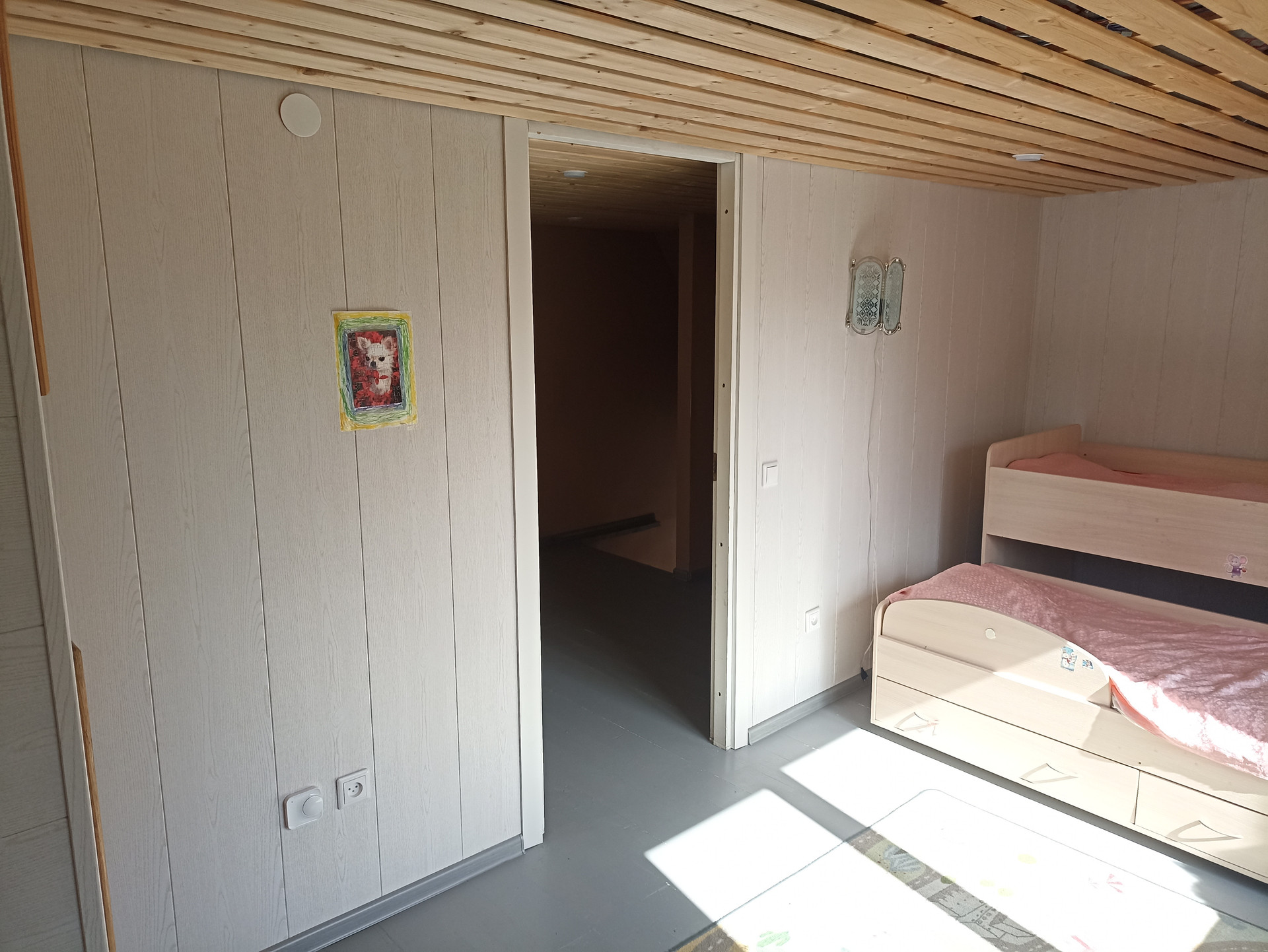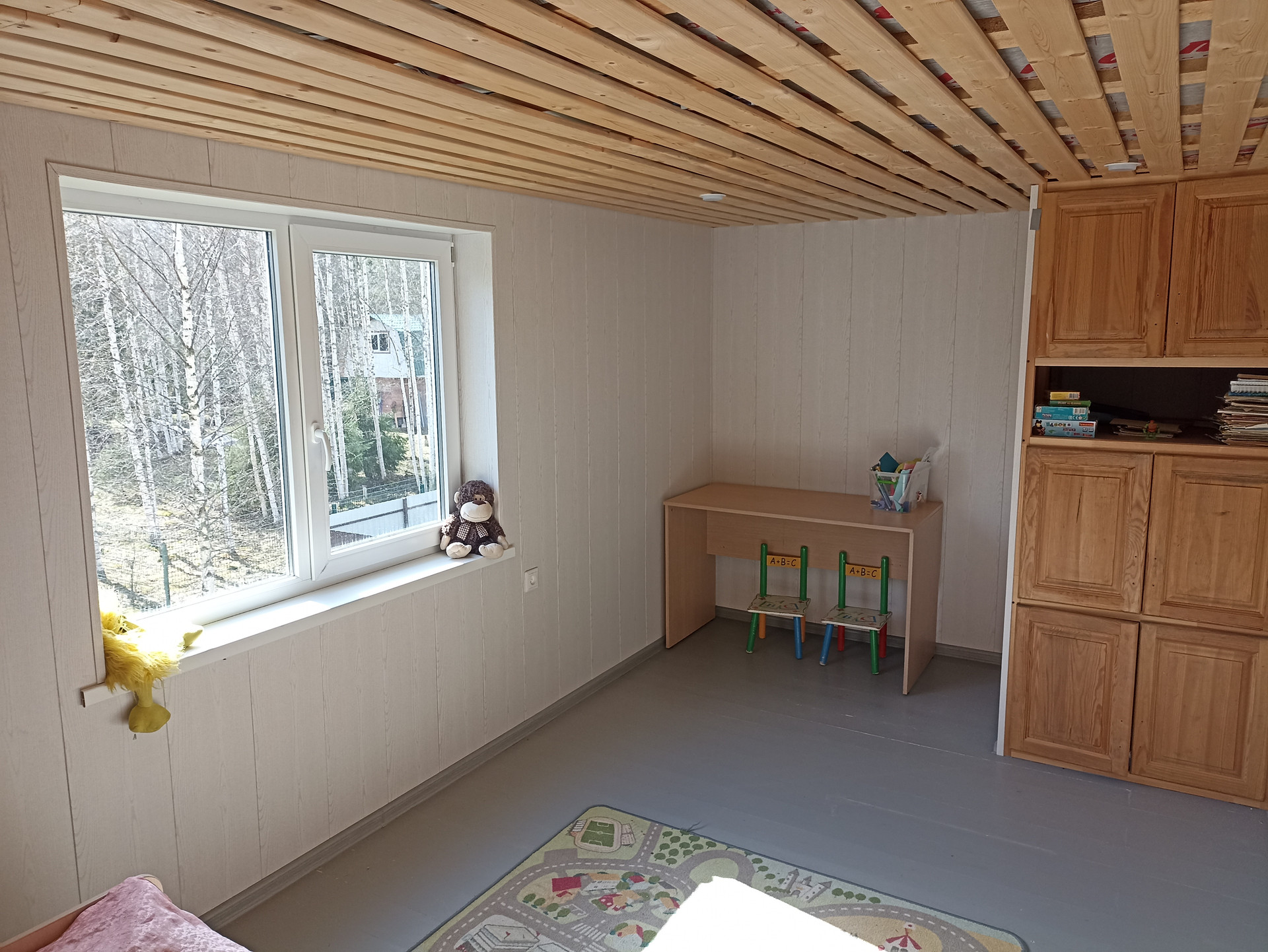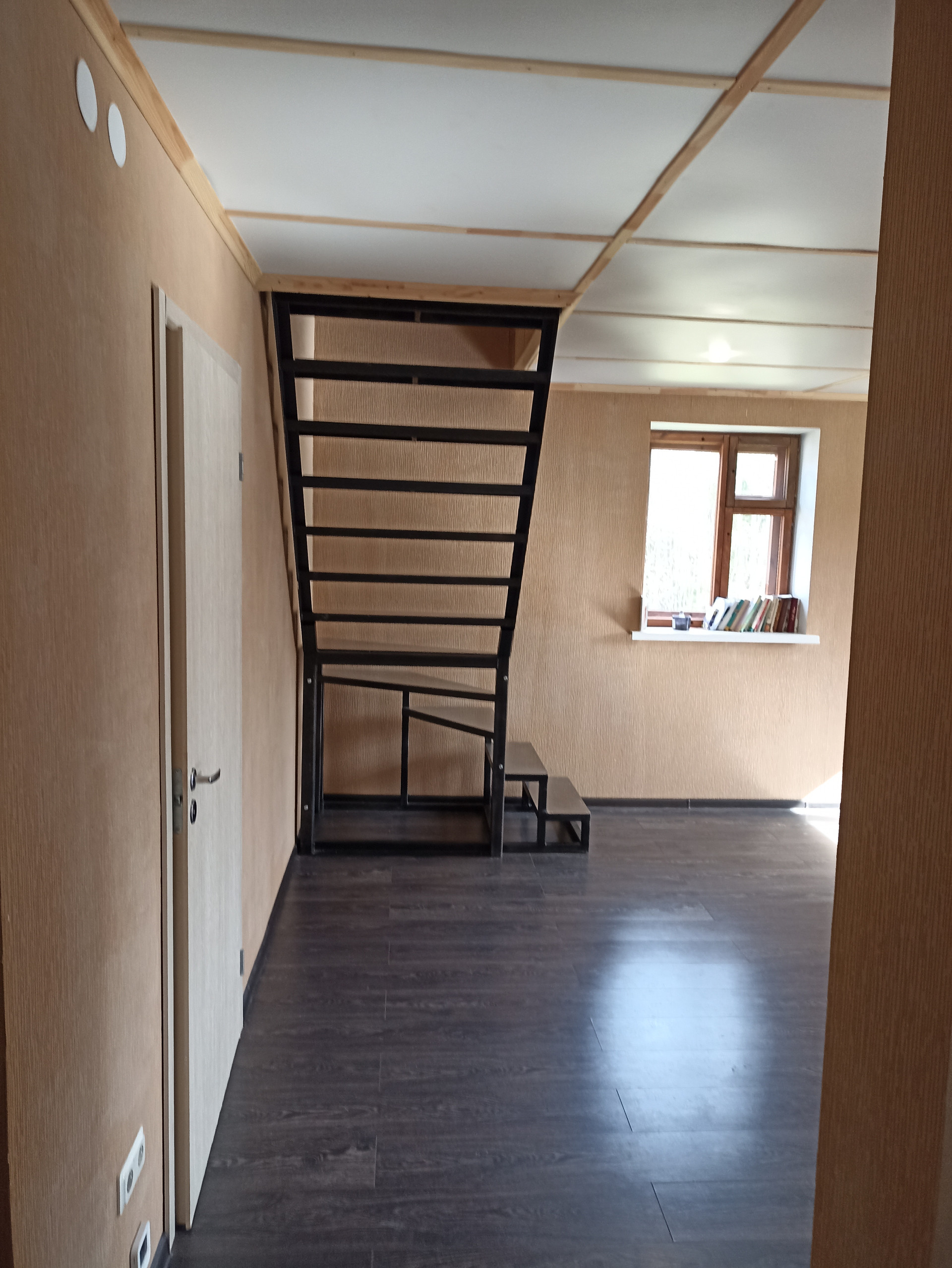 - Внутренняя отделка: стены - перегородки из ГВП, оклеенные обоями и окрашенные, полы – ламинат(1 этаж), окрашенная доска(2 этаж).