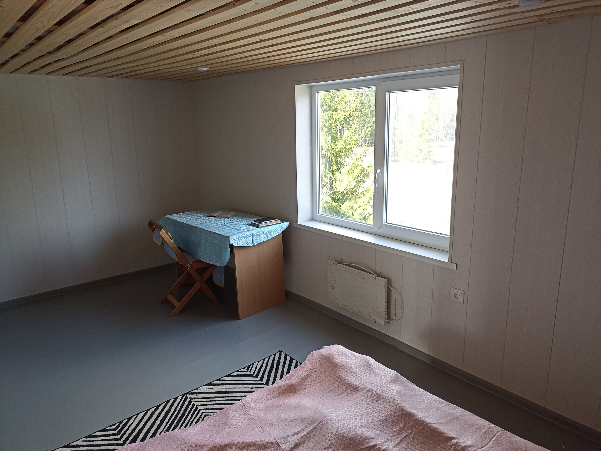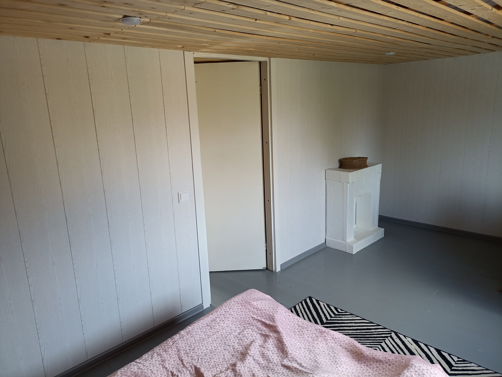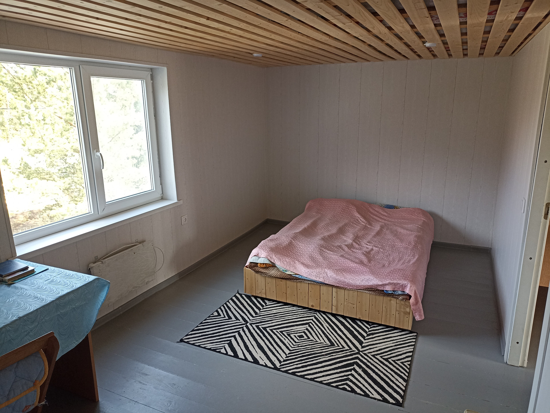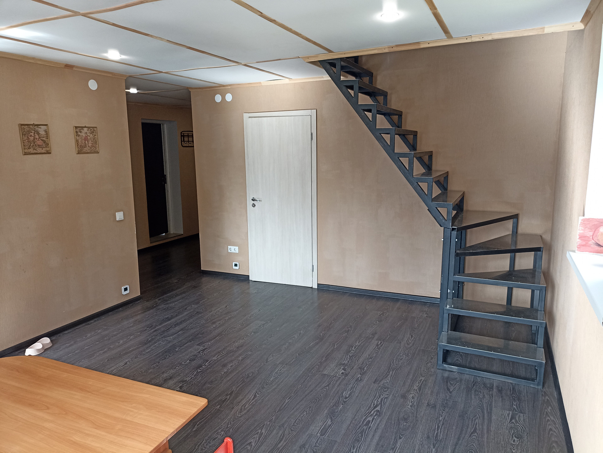 - Внутренняя отделка: стены - перегородки из ГВП, оклеенные обоями и окрашенные, полы – ламинат(1 этаж), окрашенная доска(2 этаж).