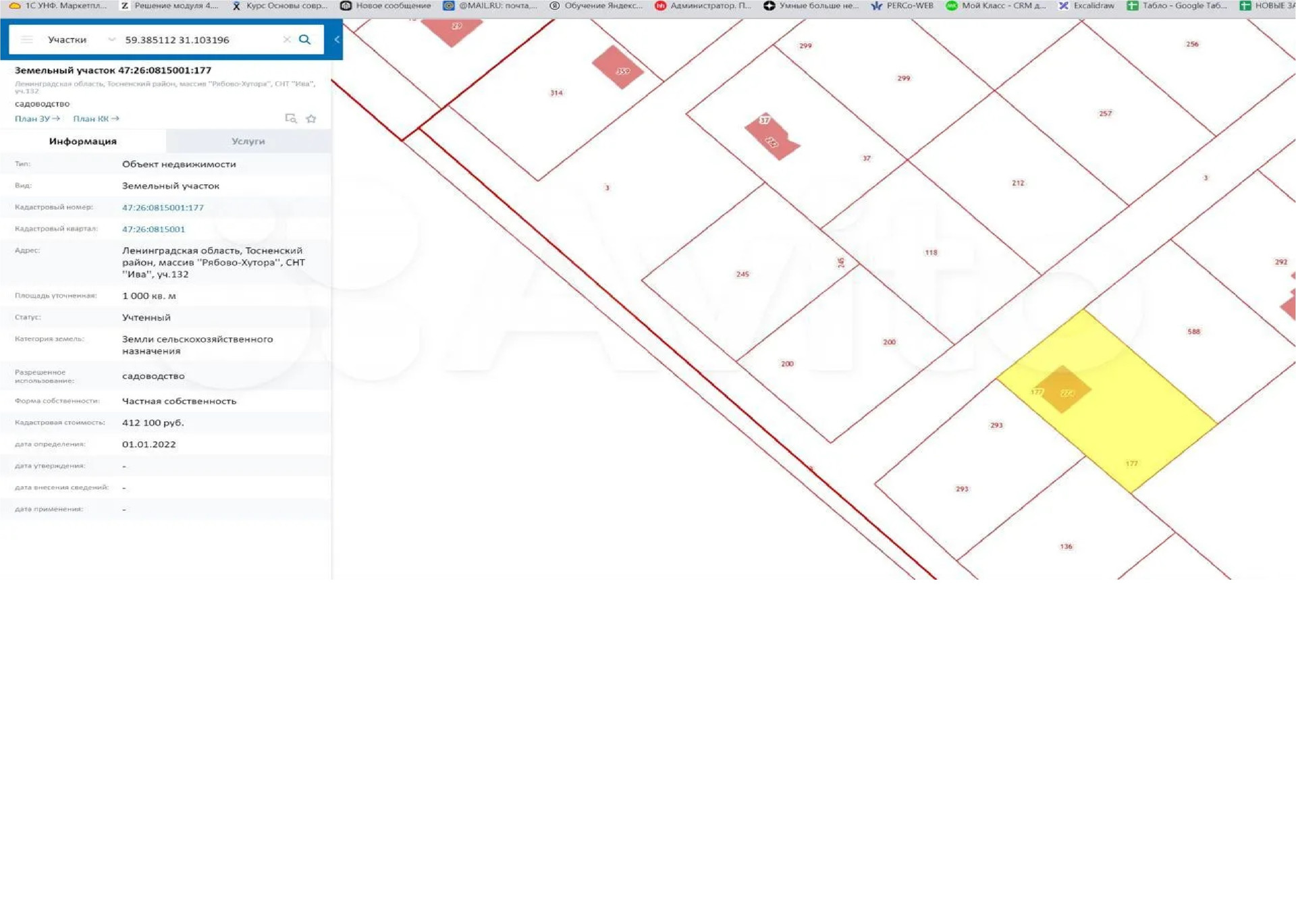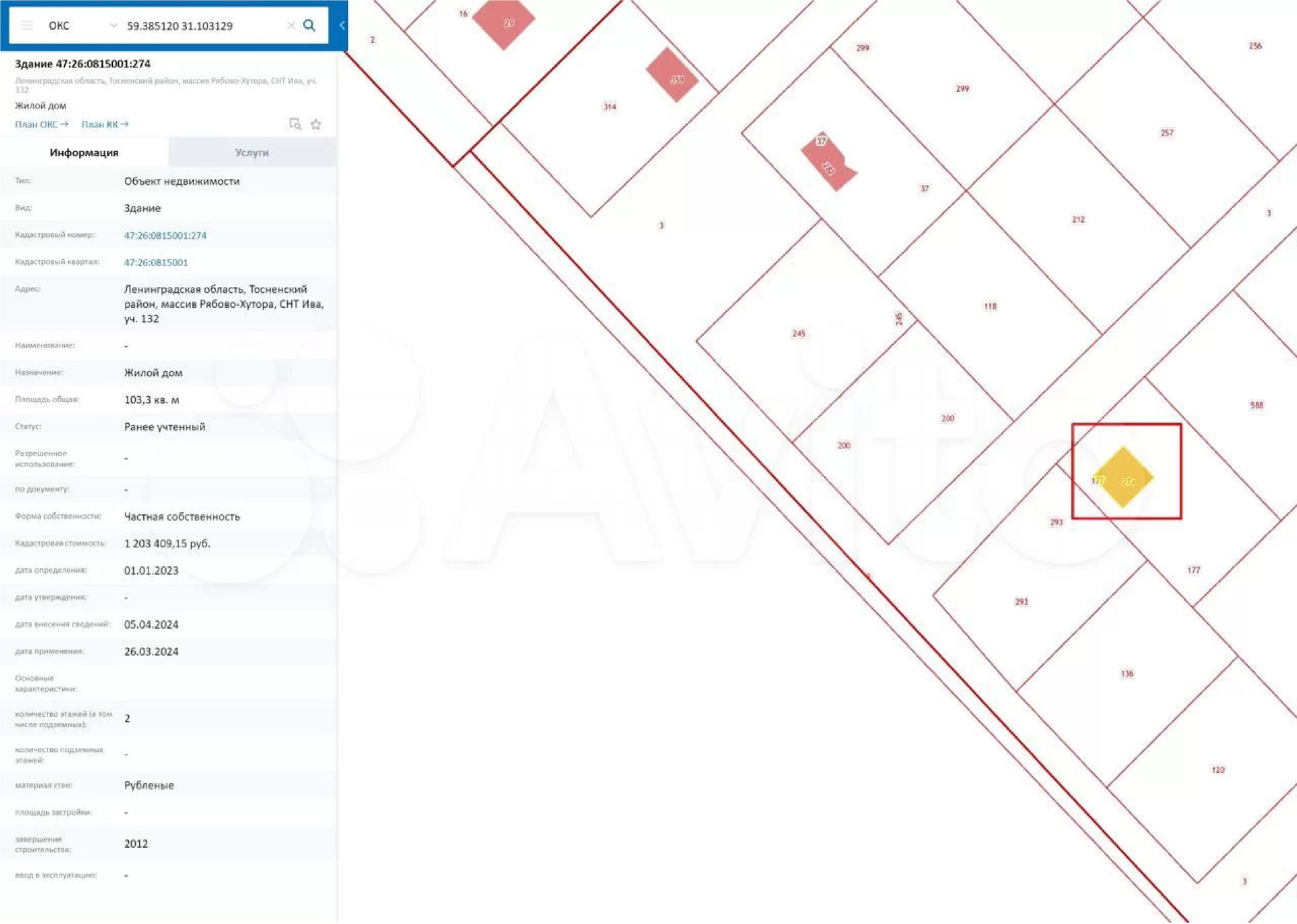 Участок находится в 5 минутах езды от московской трассы, СНТ Ива. 10 минут езды до электрички "Рябово". До Санкт-Петербурга возможно добраться за 55 мин минут до Московского вокзала.