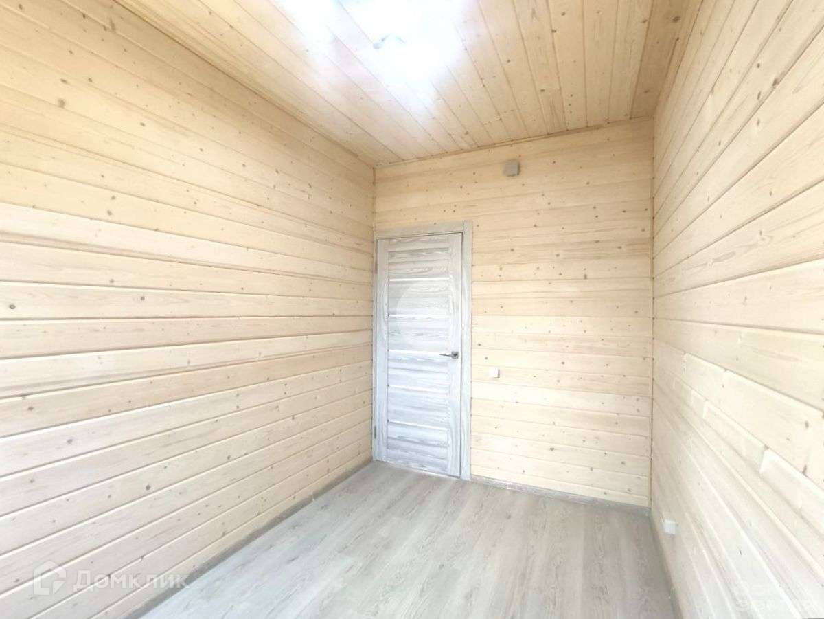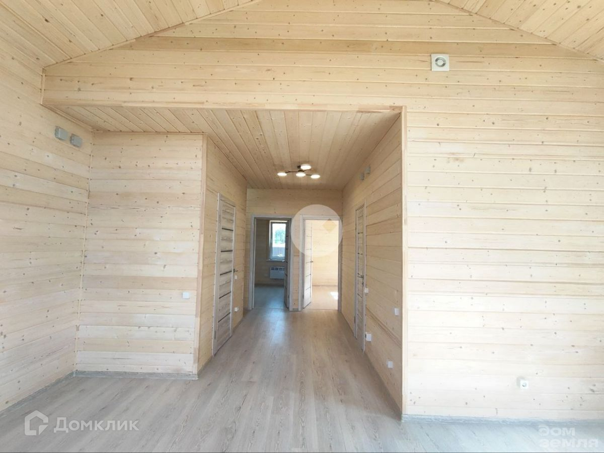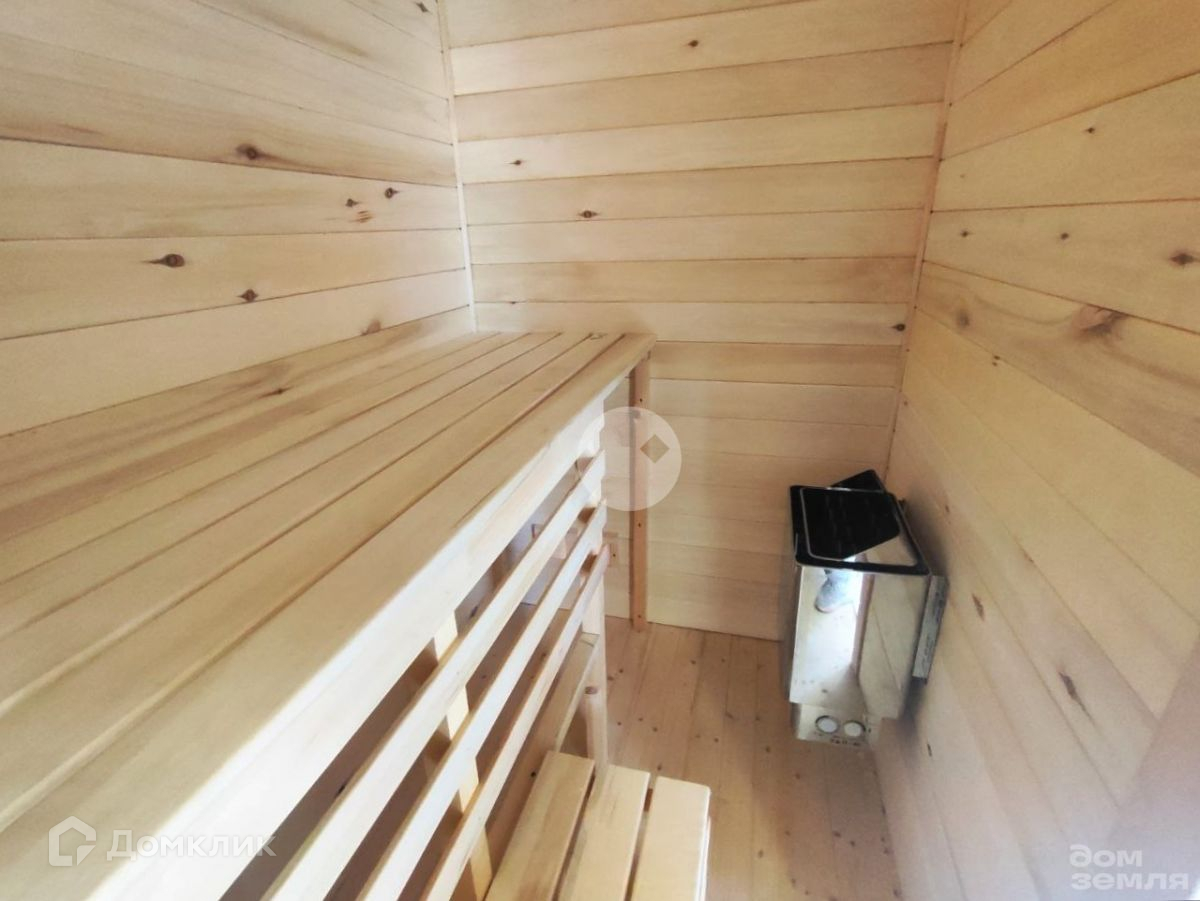 В доме полноценно один жилой этаж, где с комфортом расположилась кухня - гостиная 30 м2, три спальни 12, 11 и 7 м2 соответственно, сан. узел 4 м2, сауна 3 м2 и прихожая 2,5 м2. А также просторная крытая терраса 17 м2. В санузле установлена душевая кабина, раковина, унитаз, водонагреватель. В сауне установлена электропечь.