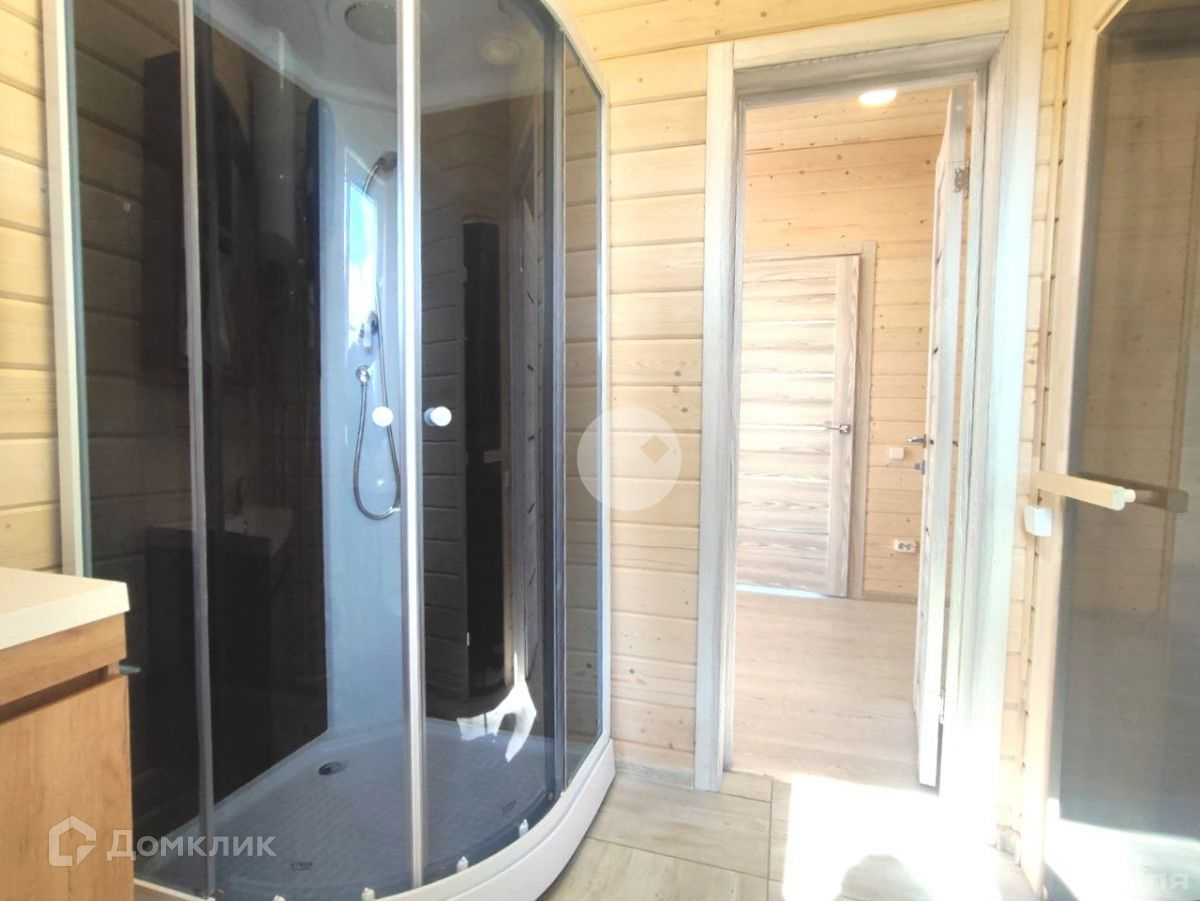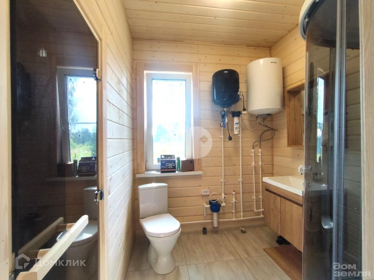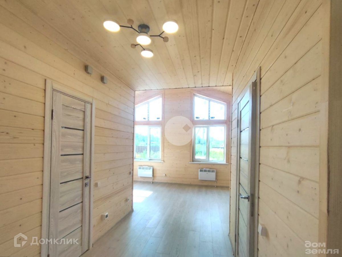 В доме полноценно один жилой этаж, где с комфортом расположилась кухня - гостиная 30 м2, три спальни 12, 11 и 7 м2 соответственно, сан. узел 4 м2, сауна 3 м2 и прихожая 2,5 м2. А также просторная крытая терраса 17 м2. В санузле установлена душевая кабина, раковина, унитаз, водонагреватель. В сауне установлена электропечь.
