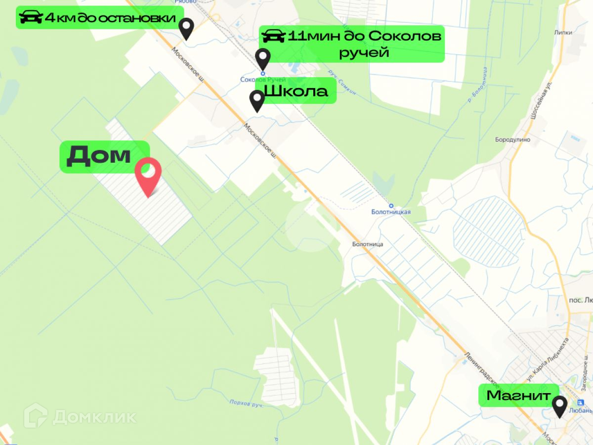 - Добраться до СПб можно электричкой, ближайшая станция Соколов Ручей в 5 км от участка. За 1 час 20 минут Вы доберетесь до центра города без пробок.