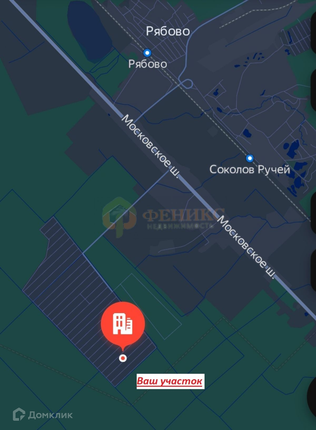 Массив расположен в стороне от шумной трассы, подъездные пути асфальтированные. От метро Московская время в пути на машине 1 час 9 минут.