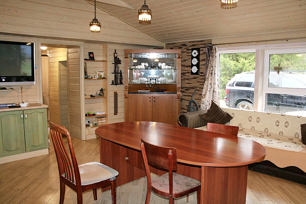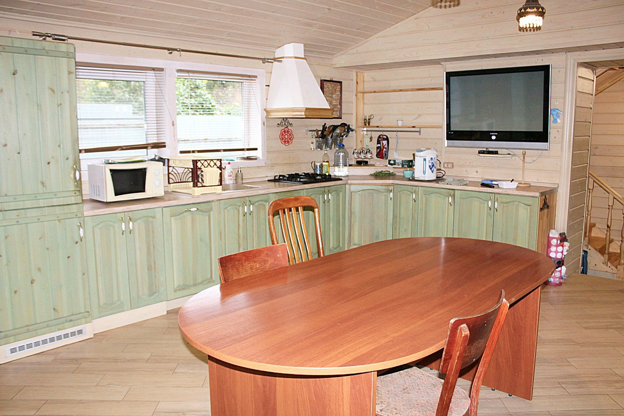 + Дом из газобетона -первый этаж, второй бревно. Крыша- гибкая черепица. Фундамент - бетонная плита. Отделка дома- имитация бруса.