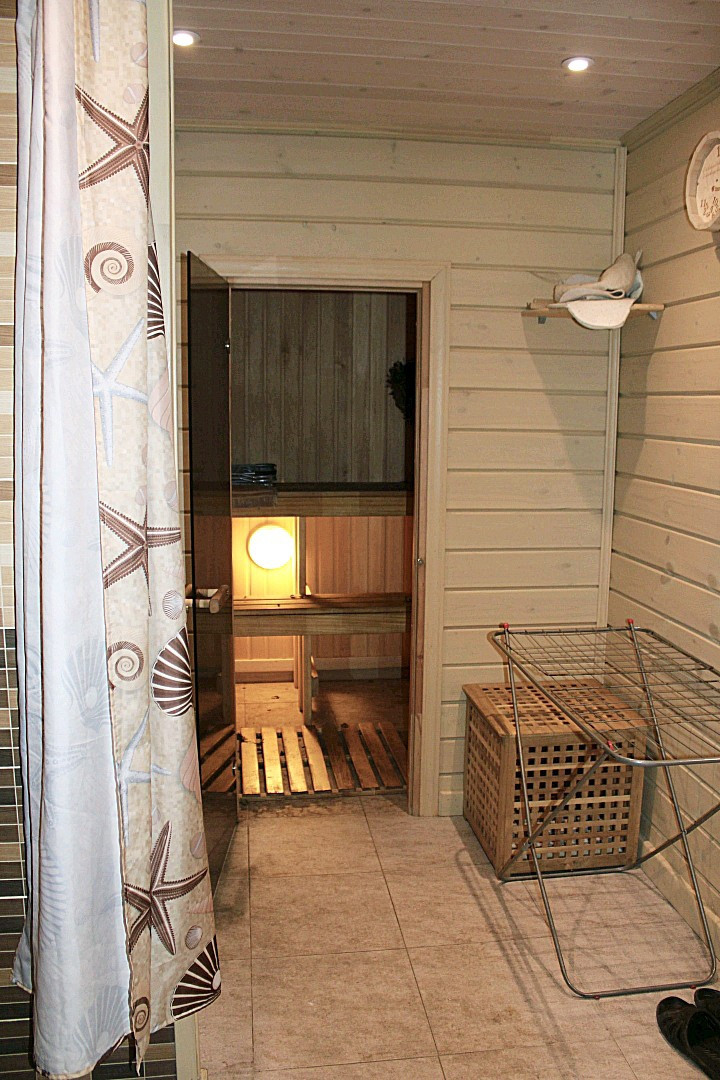 Небольшая спальня, отдельный с/узел, финская сауна с отдельным душем.