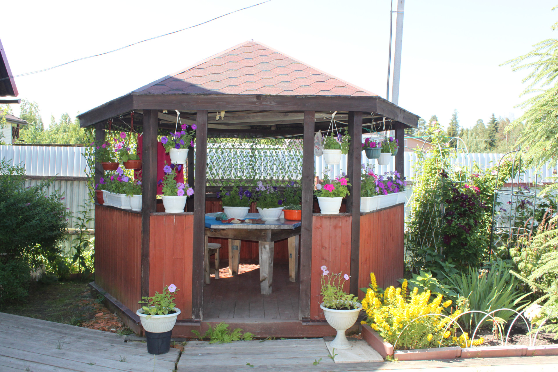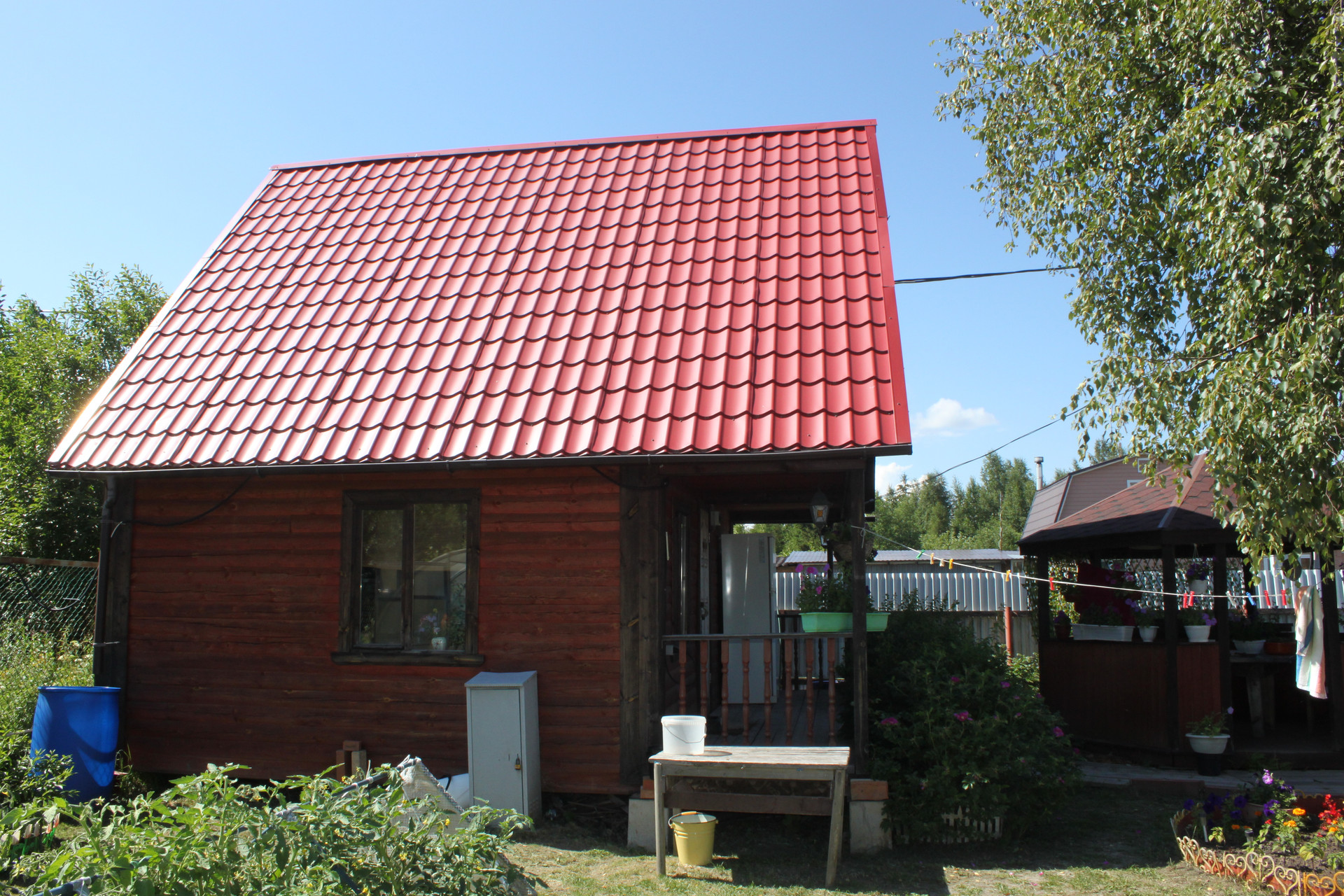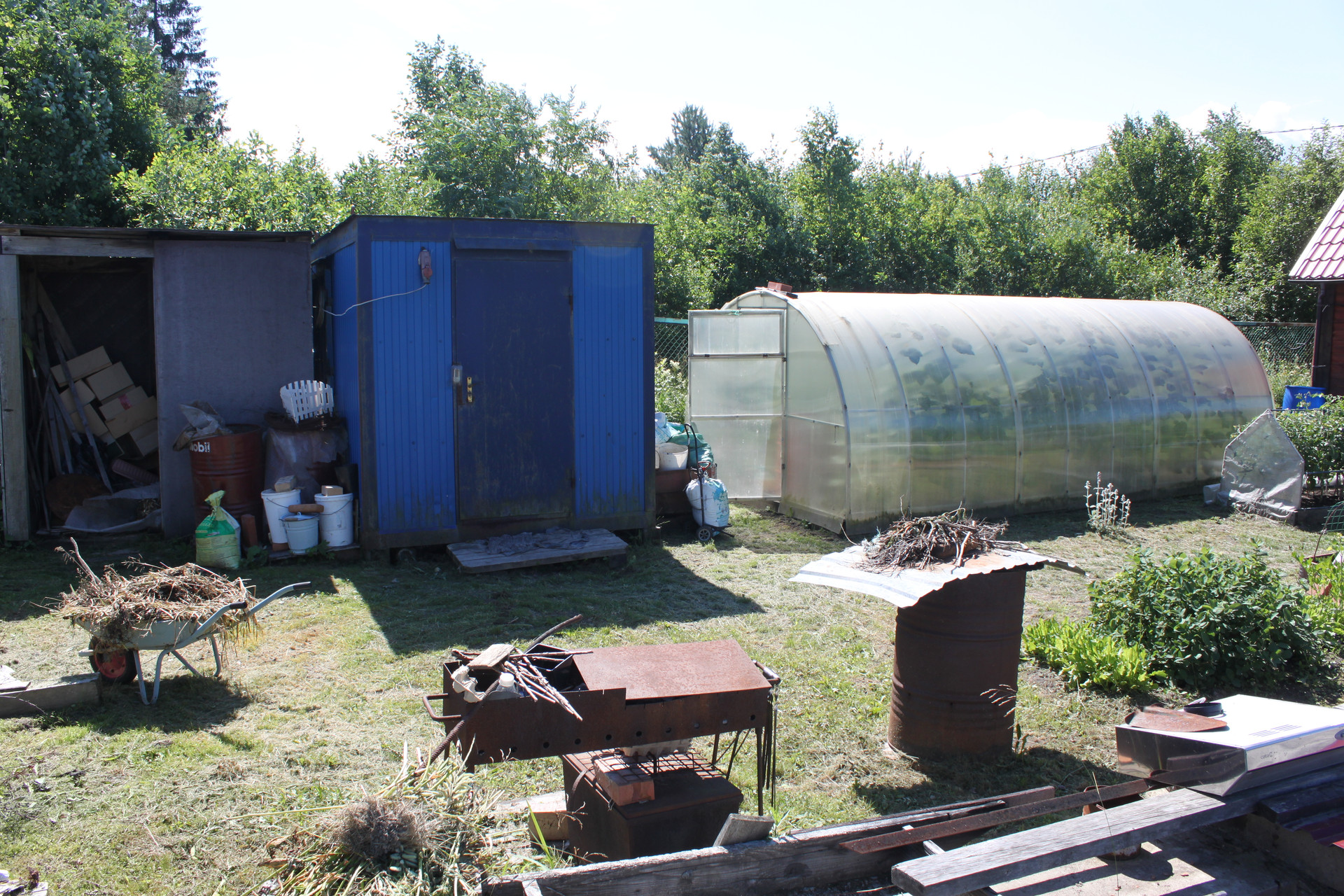 конечно же первым делом на участке были сооружены: забор, санузел (туалет или гальюн, кому как удобно), дровяник и конечно же беседка для отдыха и наслаждения миром и ловли дзена. К сожалению они уже устали - чай срока им уже больше 10 лет стало. Требуют местами поправки здоровья и внешнего вида. Нужна реинкарнация. Кстати, есть ещё один "толчёк" - он хоть и уличный, но зато с подогревом и умывальником. Зимний так сказать, где всё будет в тепле!!!