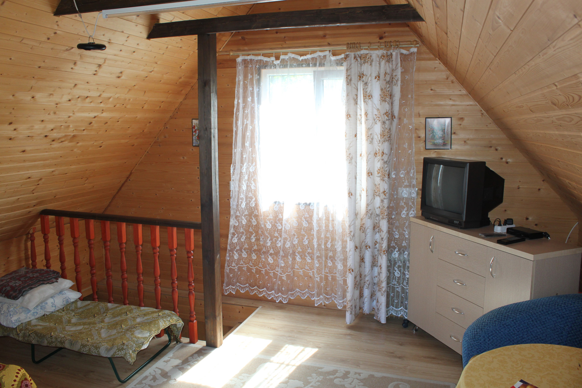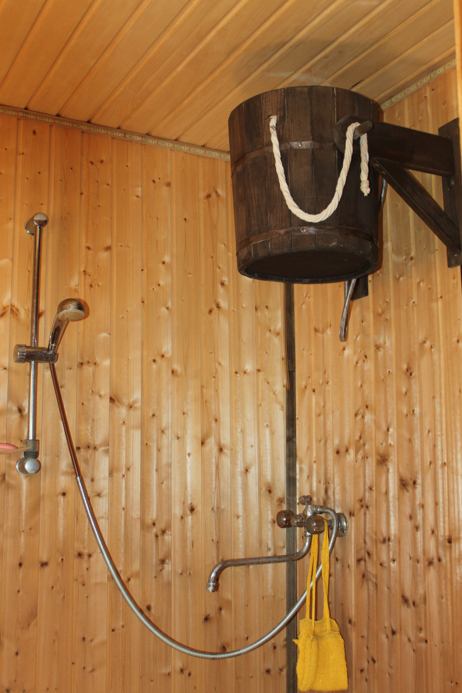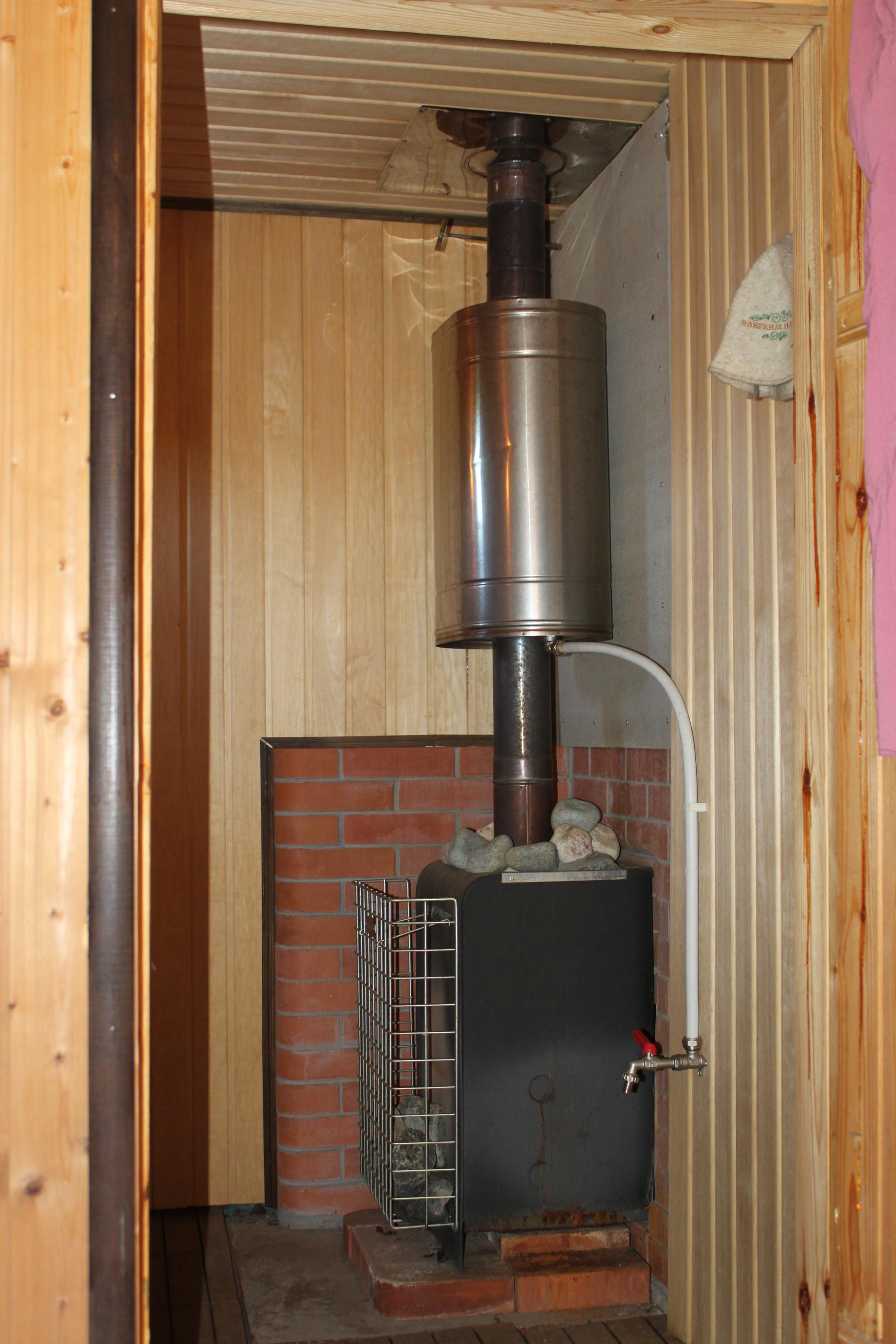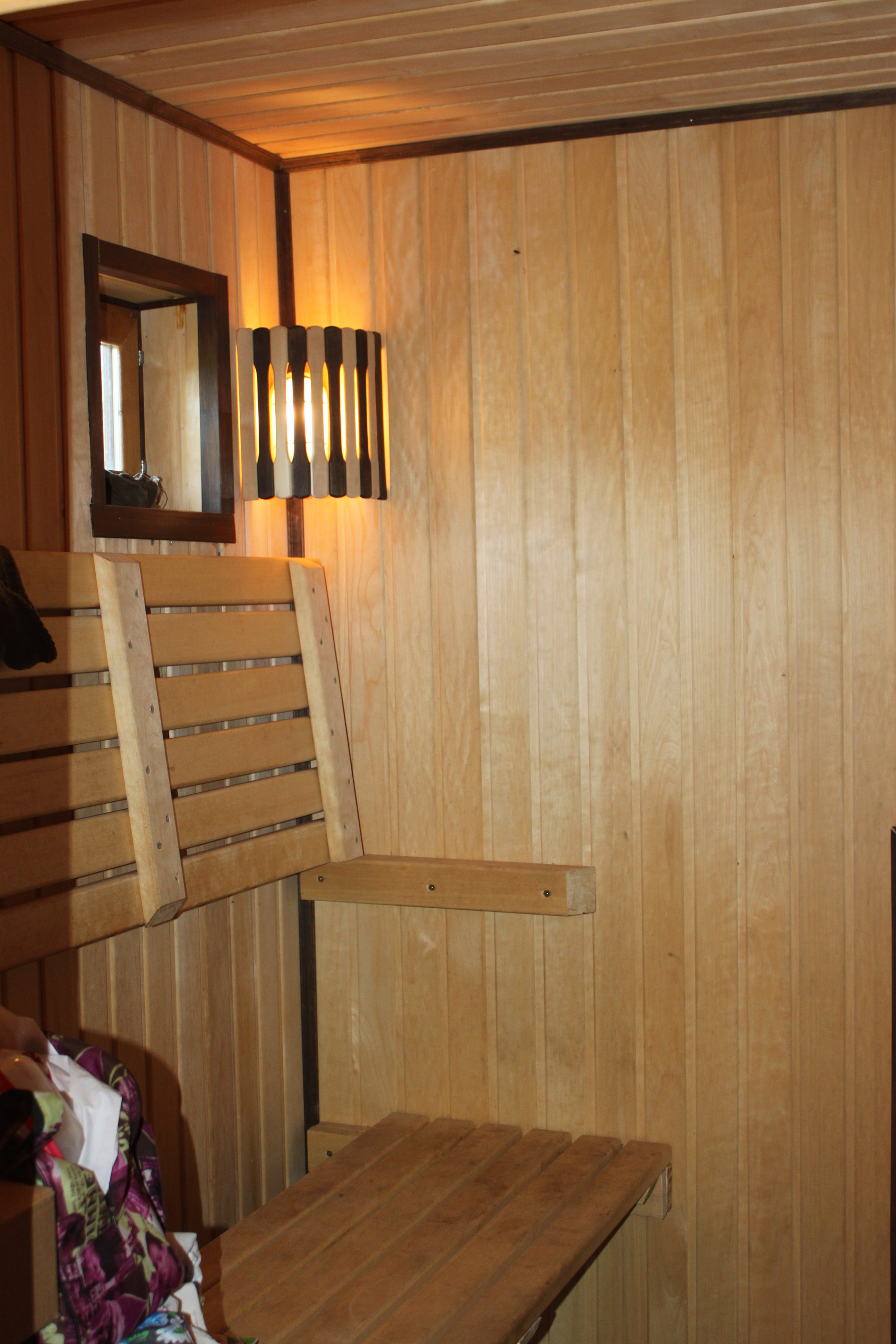 Крайним строением была организована на участке банька. Фундамент под ней не отличается от всех устроенных. банька имеет размер 6х6 метров в два этажа. Сооружена пестовскими мастерами деревянных дел. Сруб - из профилированного бруса. Кровля - металлочерепица "MONTEREY" 0.45 мм. толщиной с ПВХ покрытием. Внутри по уму проложены ветровлаго защиты, утеплитель, пароизоляция и всё это обшито архангельской вагоночкой. В парилке всё исполнено из осины сорта "Экстра",включая двух ярусные полки, стоит каменка с талькохлоридом, кварцитом жадеитом. Пар - отменный и лёгкий. Нагревается до состояния парения за два часа. Вся баня прогревается за 4-5 часов. Мы всей семьёй (5 душ) ночевали в ней (на втором жилом этаже) при -17 на улице. И нам было жарко. В бане устроено горячее водоснабжение при помощи 100 литрового бойлера с нержавеющим баком который программируется как Вам угодно. Так же в парилке на трубе установлен "самовар" на 73 литра. Выполнен полноценный душ и обливалка на 12 литров. На втором (жилом) этаже установлен новый раскладной диванчик на котором после парилки можно умиротворённо отдохнуть вдвоём. Если потесниться то и втроём. В диванчике удобно помещаются спальные принадлежности. Всё что не помещается в диван - укладывается в комод находящийся неподалёку. На комоде в свою очередь комфортно располагается зомбоящик несущий в массы всё что угодно. Антенна уличная, с усилителем. Кажет основные программы и радио эфир. В устройство бани вложена частичка души и больше 2-х лямов денег из кармана.