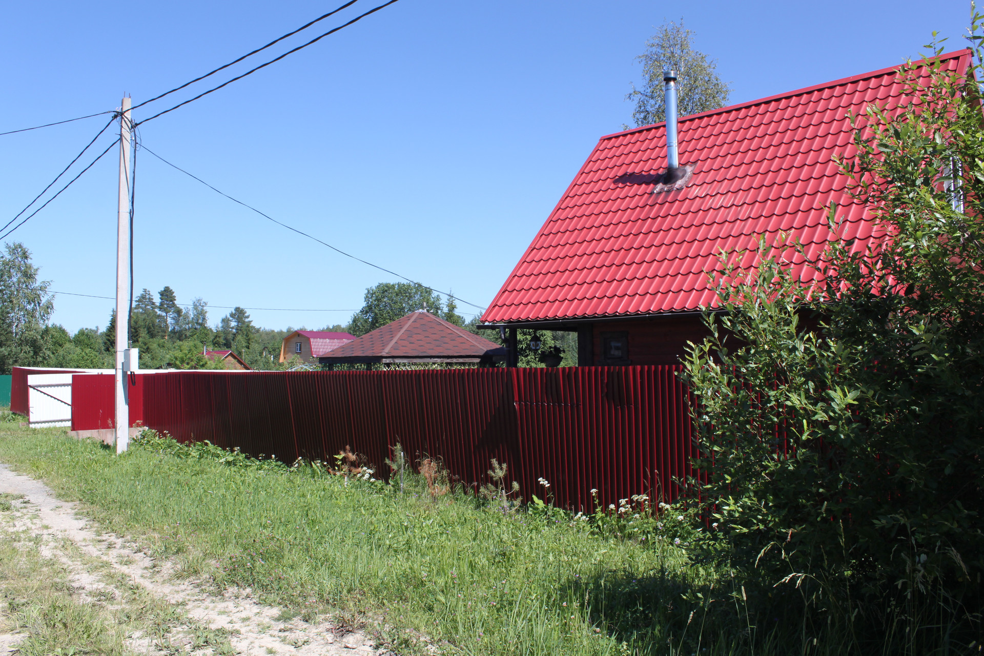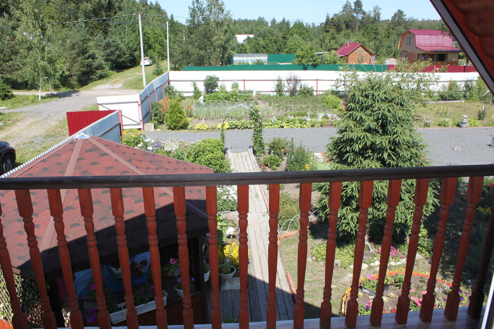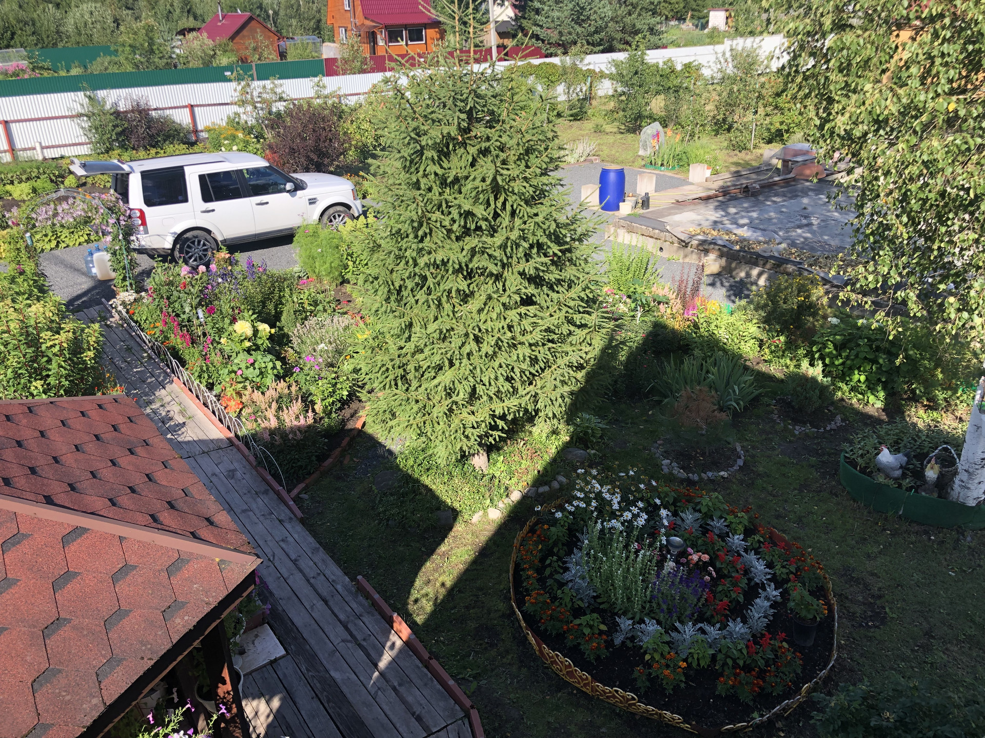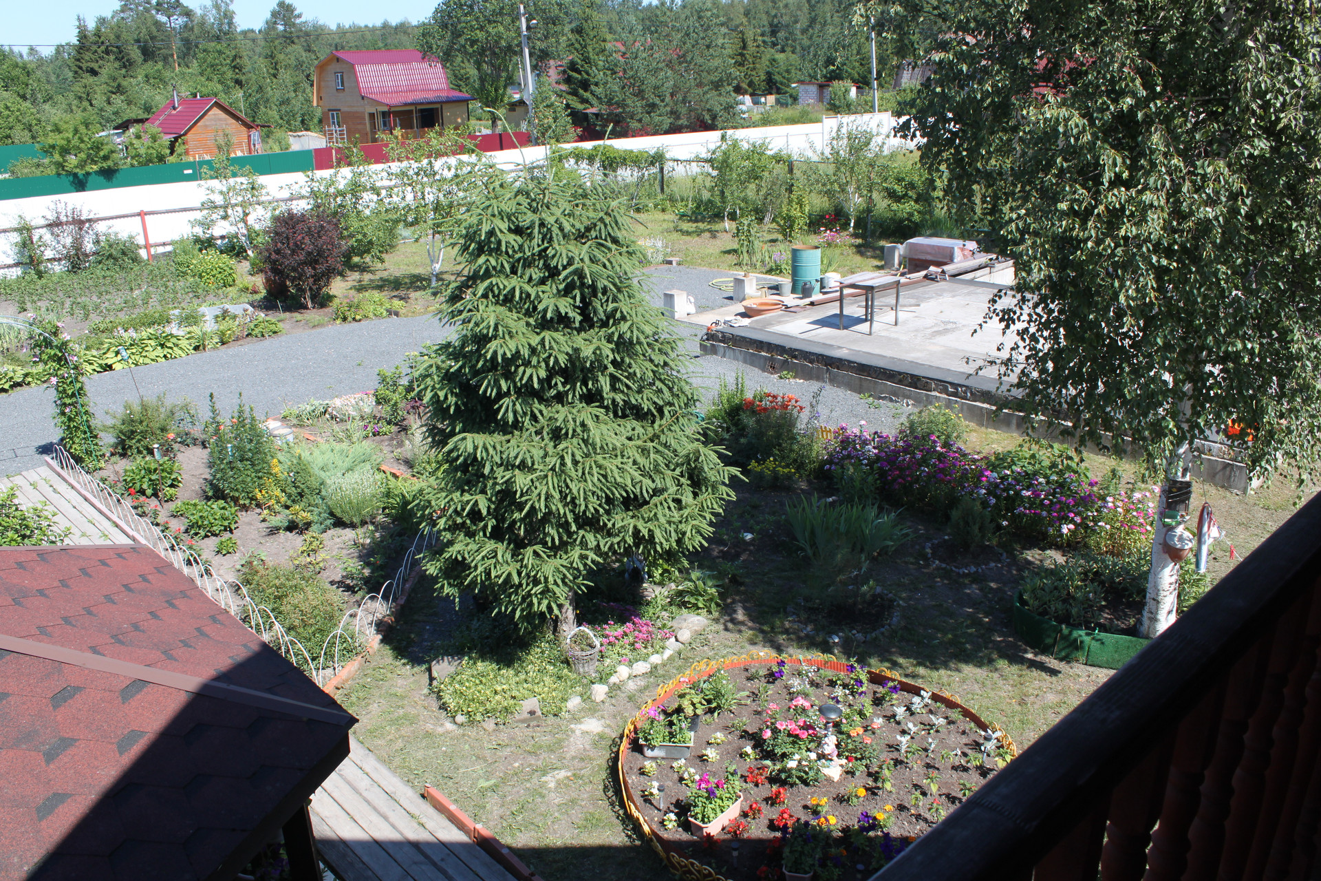 После раскорчёвывания участка был выполнен его частичный дренаж. Посему, в момент схода снега, весь заезд и большая часть участка напоминают знойную прерию саванны засыпанную очень мелким гранитным щебнем фракции 5-20 мм, всегда готовую принять автомобиль любой грузоподъёмности. И даже не один. Вообще заезд рассчитан на 5 не маленьких машин. Кстати сам заезд на участок исполнен в виде монолитных железобетонных подпорных стенок скрывающих под собой толстостенную металлическую трубу для пропуска воды. Конструкция получилась надёжней плотины Гувера в США.