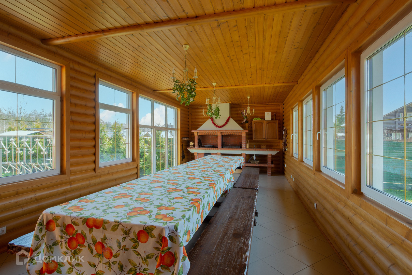 большая летняя светлая кухня с зоной барбекю и казаном;