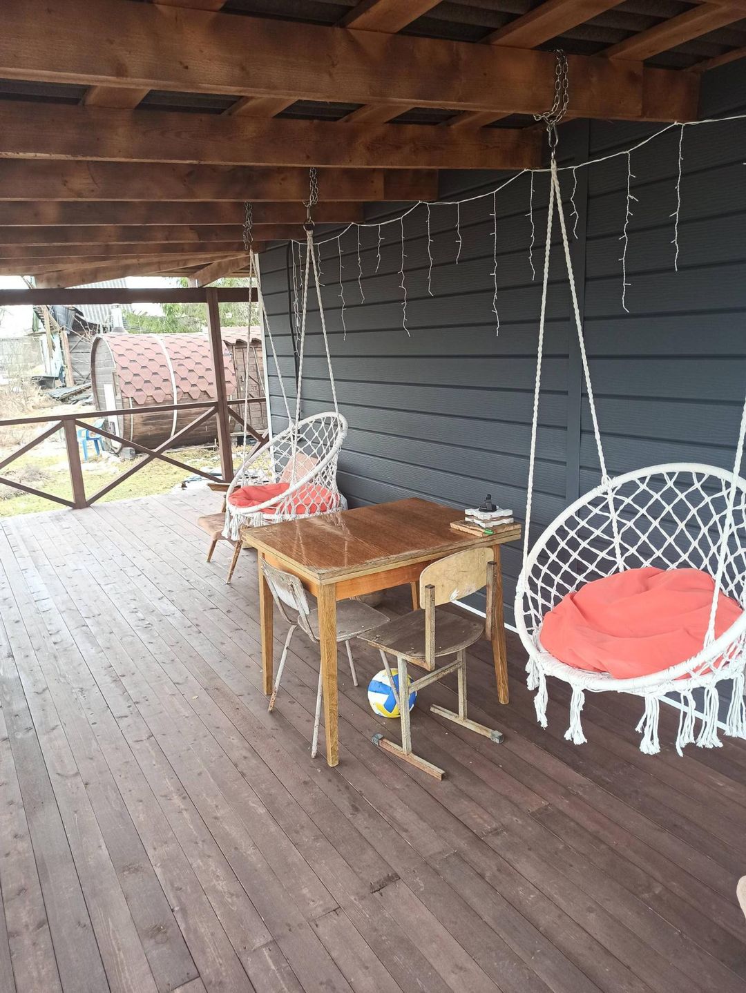Терраса открытая 8*3, по периметру  украшена гирляндой.