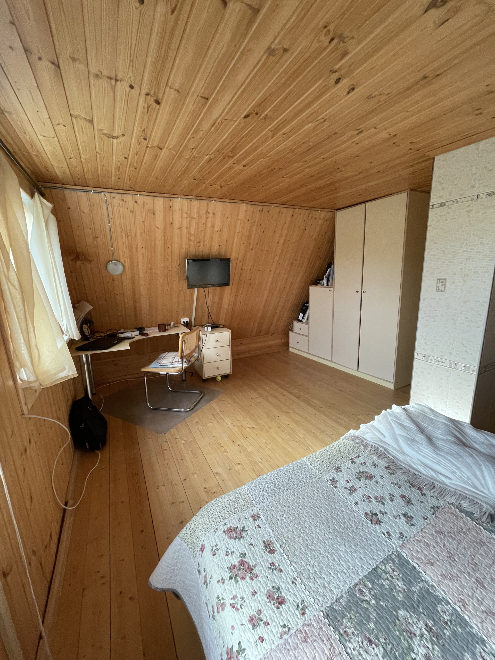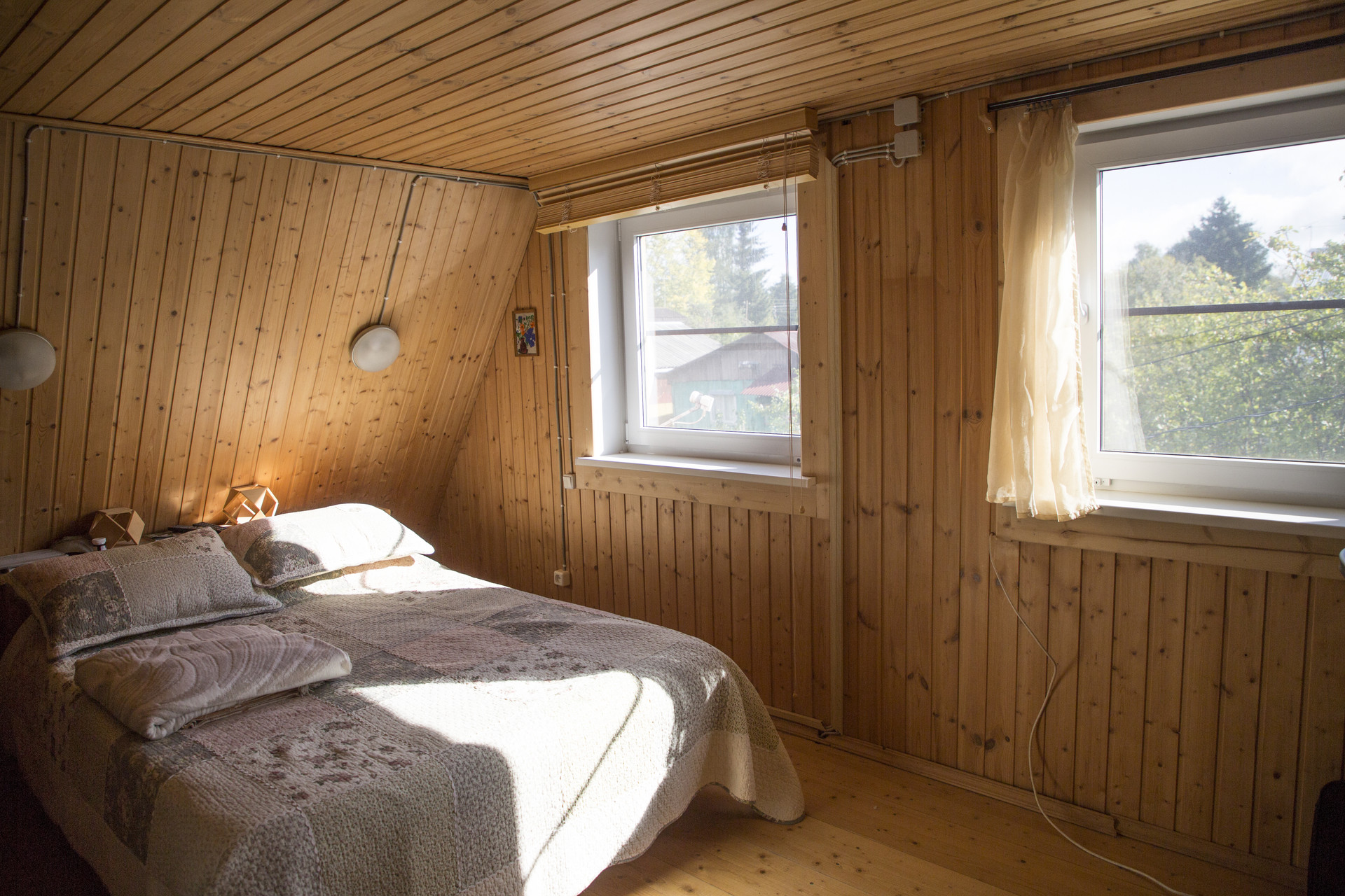 В доме капитальная печь-камин, есть погреб, душевая кабина на лоджии, под верандой – насос, подающий воду из скважины и бойлер. На первом этаже две комнаты, на втором – одна большая, кухня на веранде.