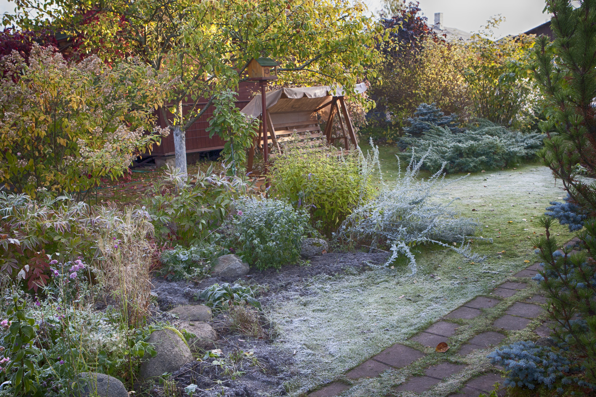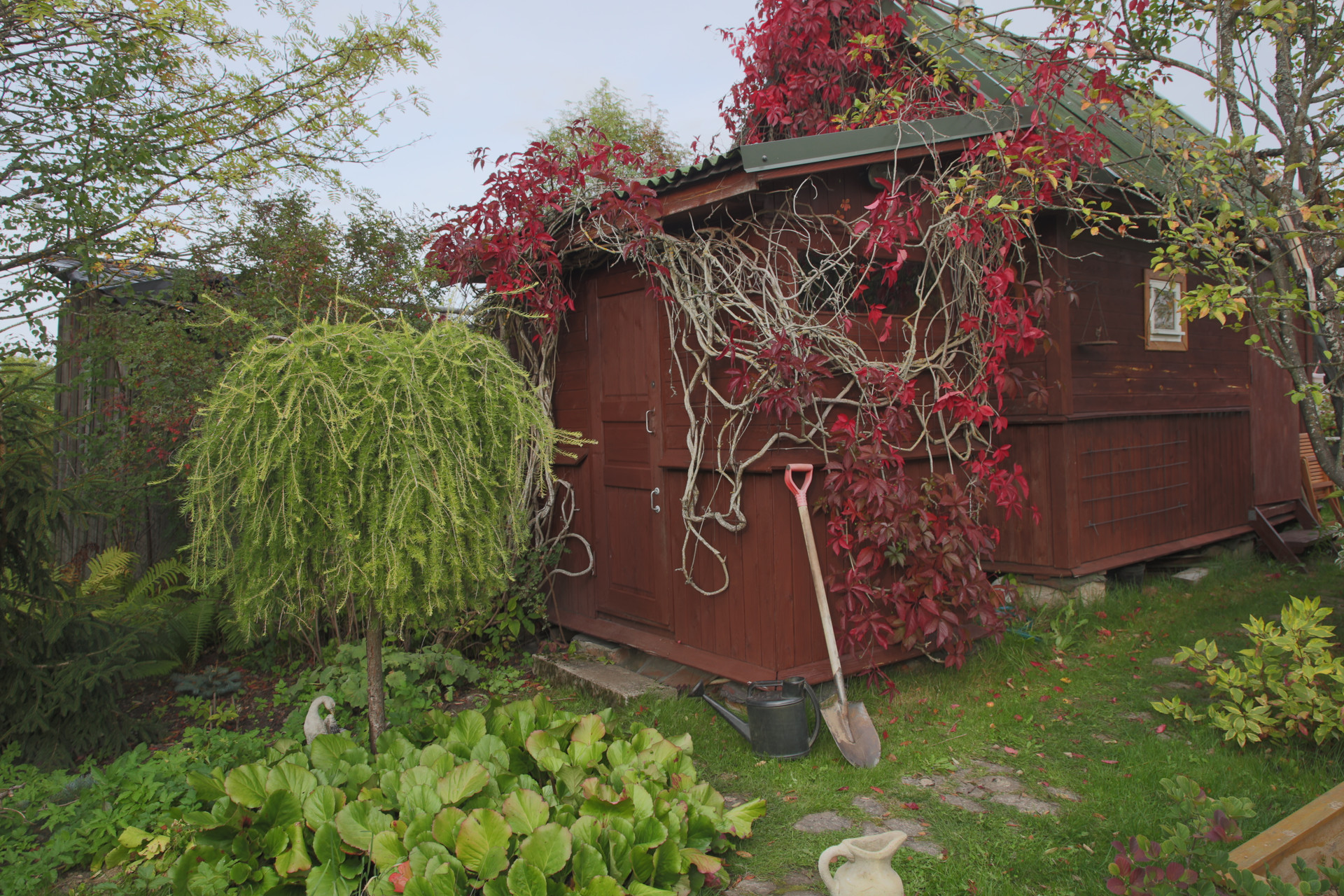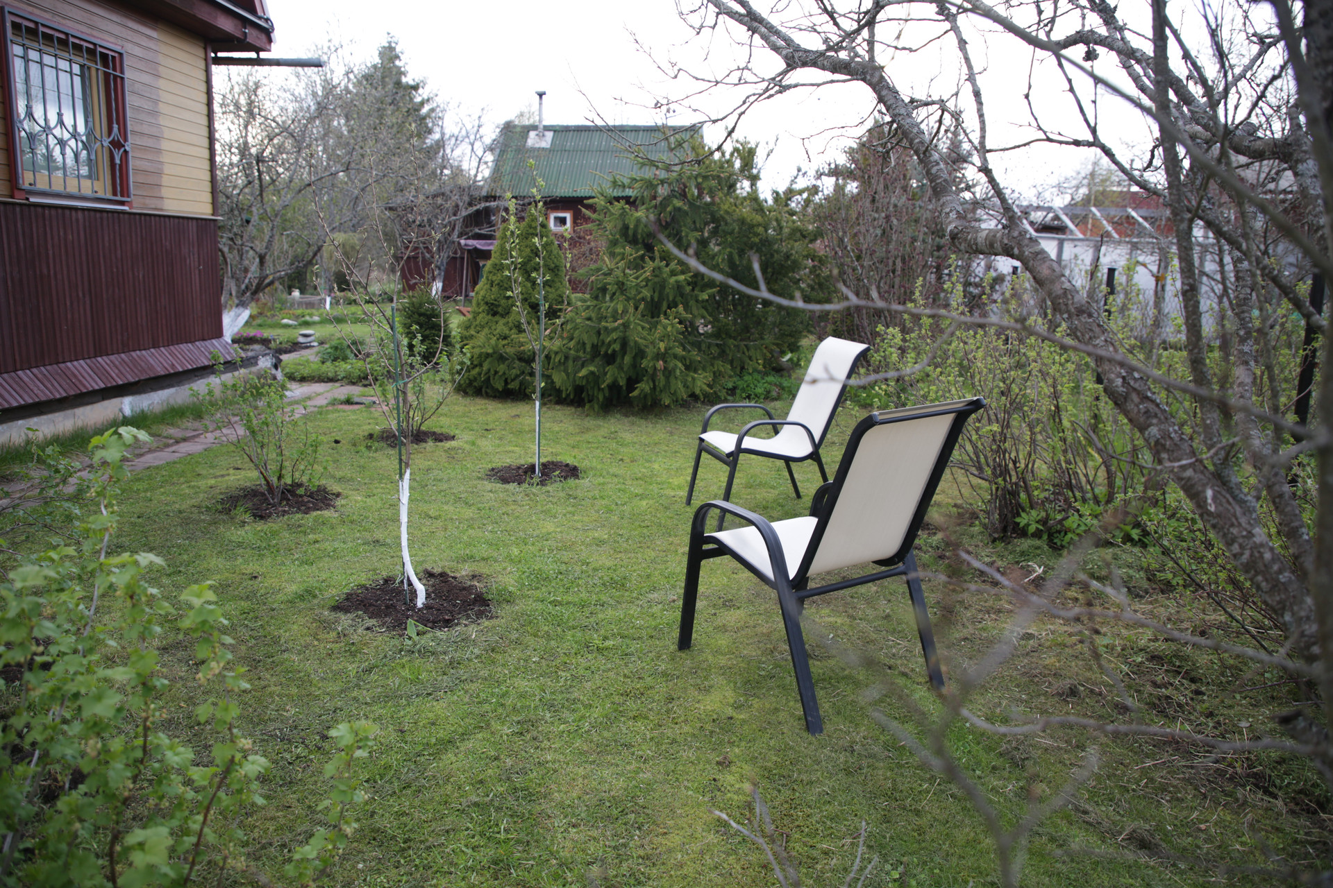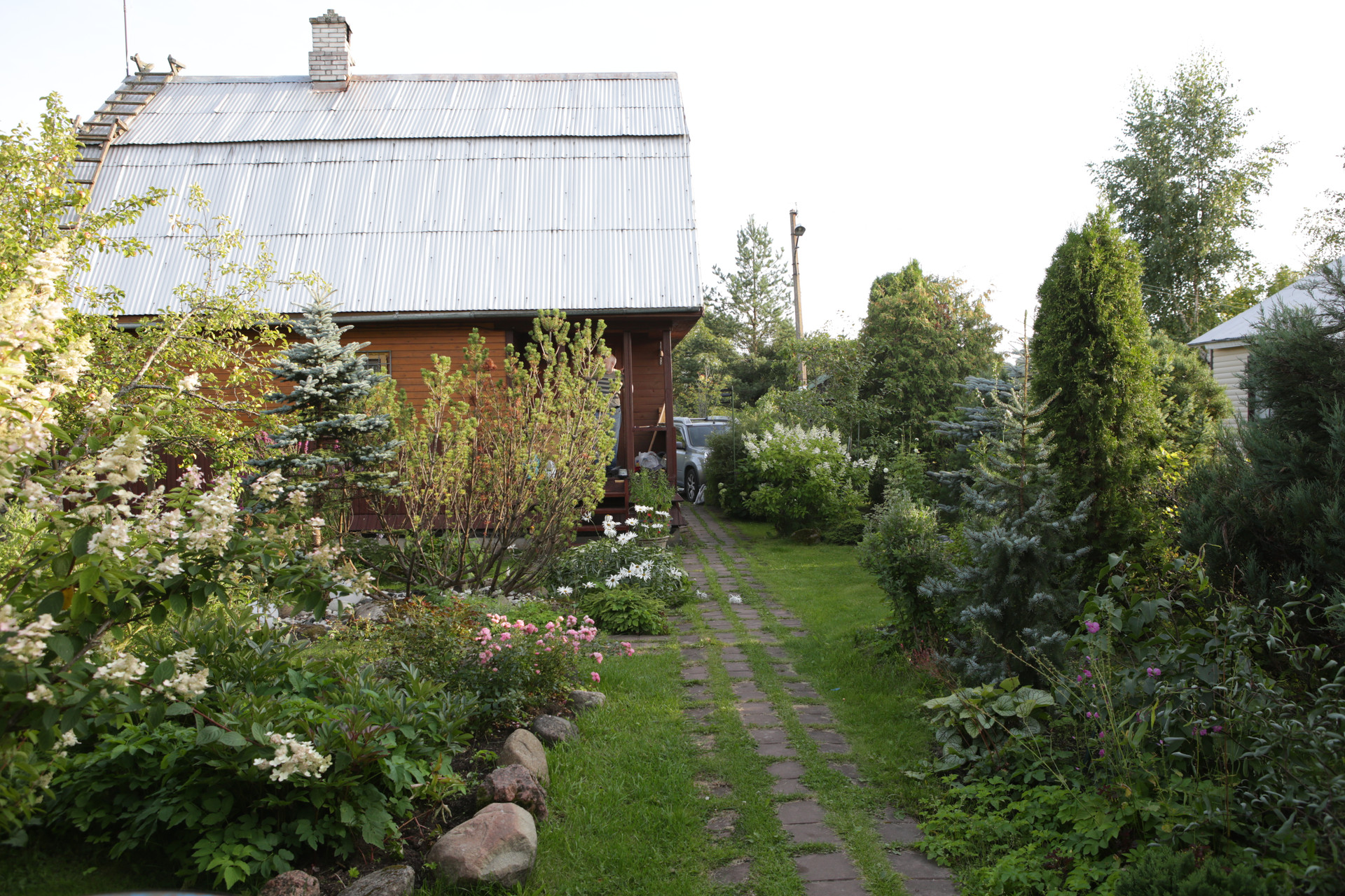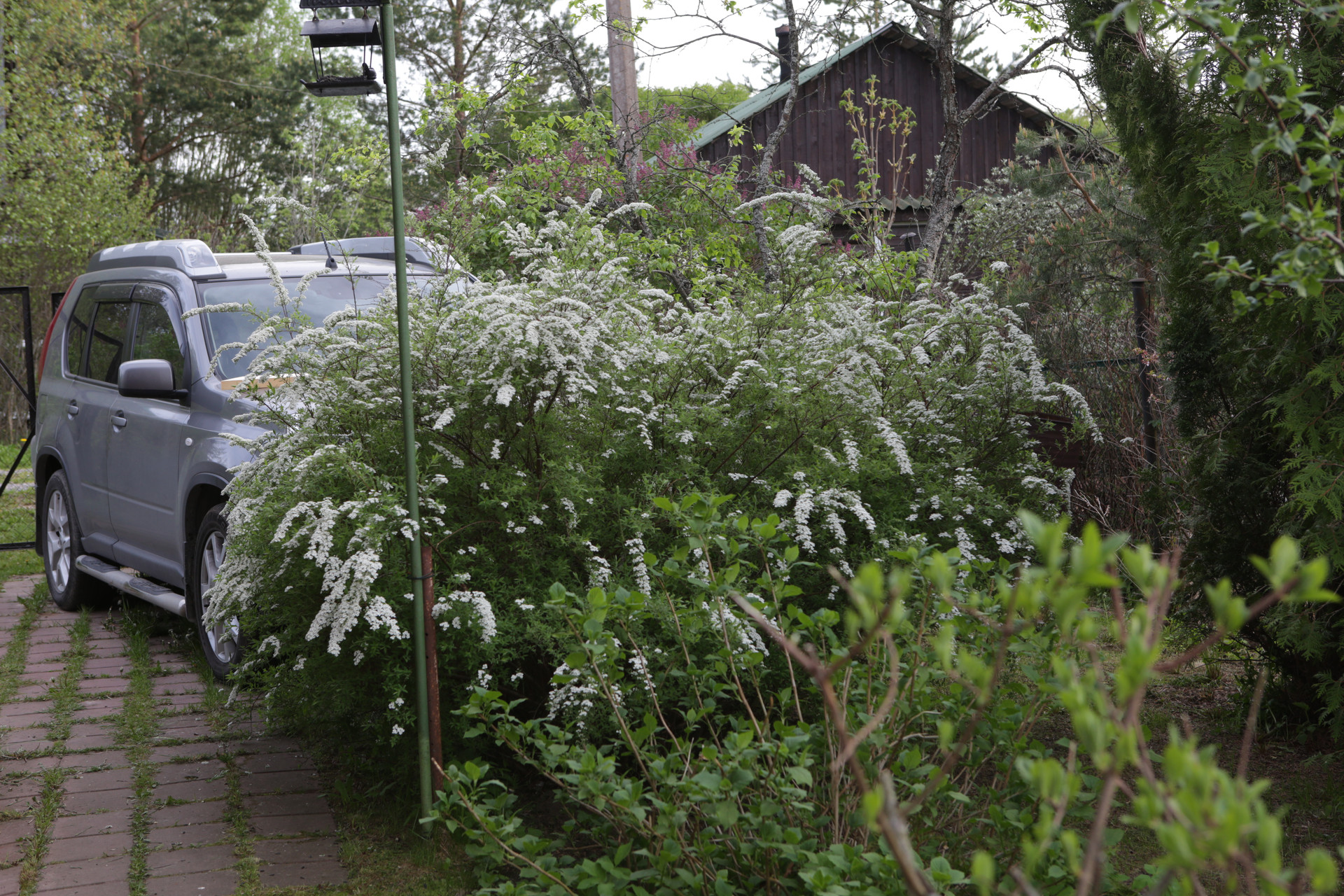 От дороги участок отделяют посадки сирени и шиповника.