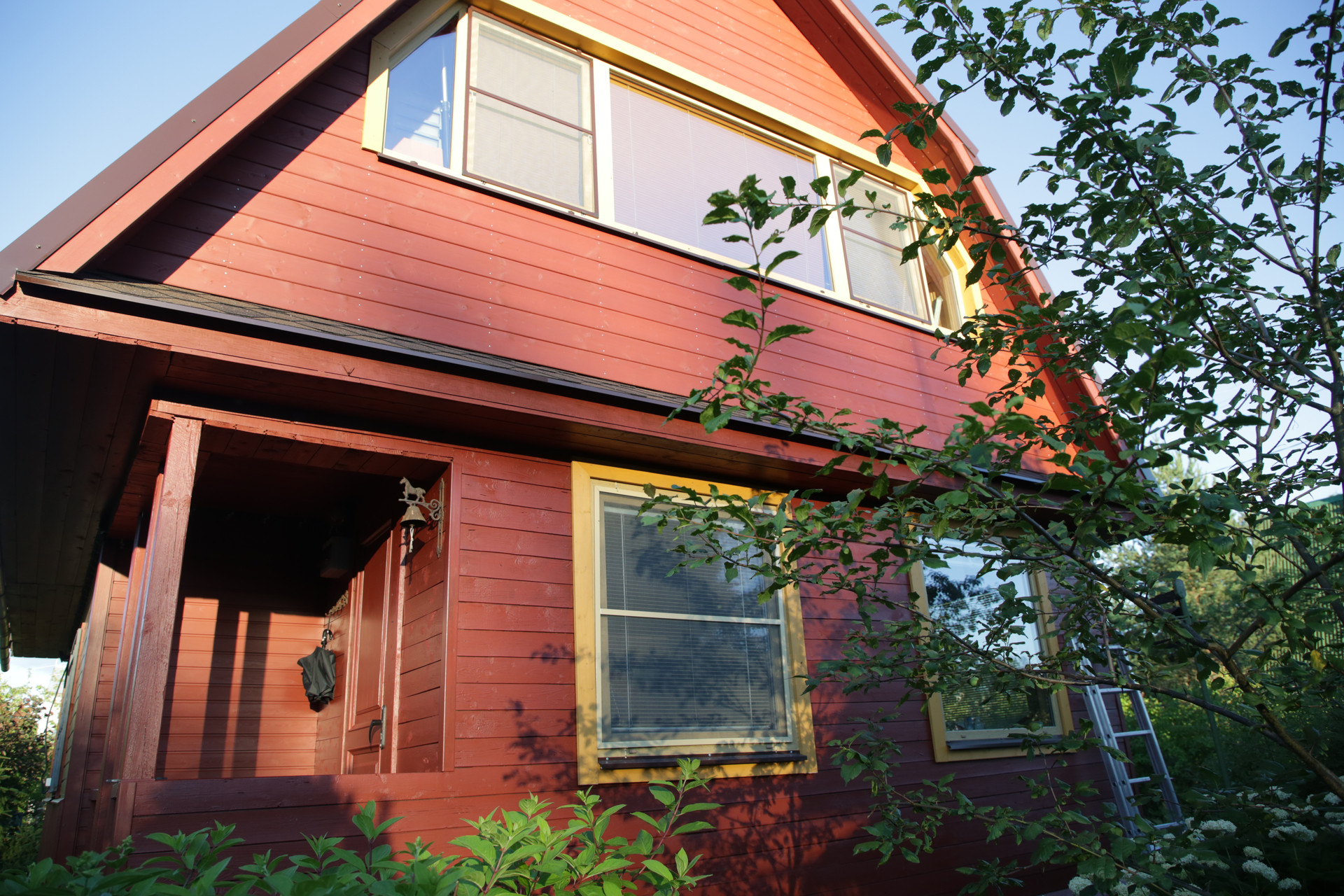 Дом 6х8 м, 2 этажа с утепленной верандой и застекленным балконом. Дом бревенчатый, обшит вагонкой и имитатором бруса, окрашен краской Tikkurila, везде новые стеклопакеты.