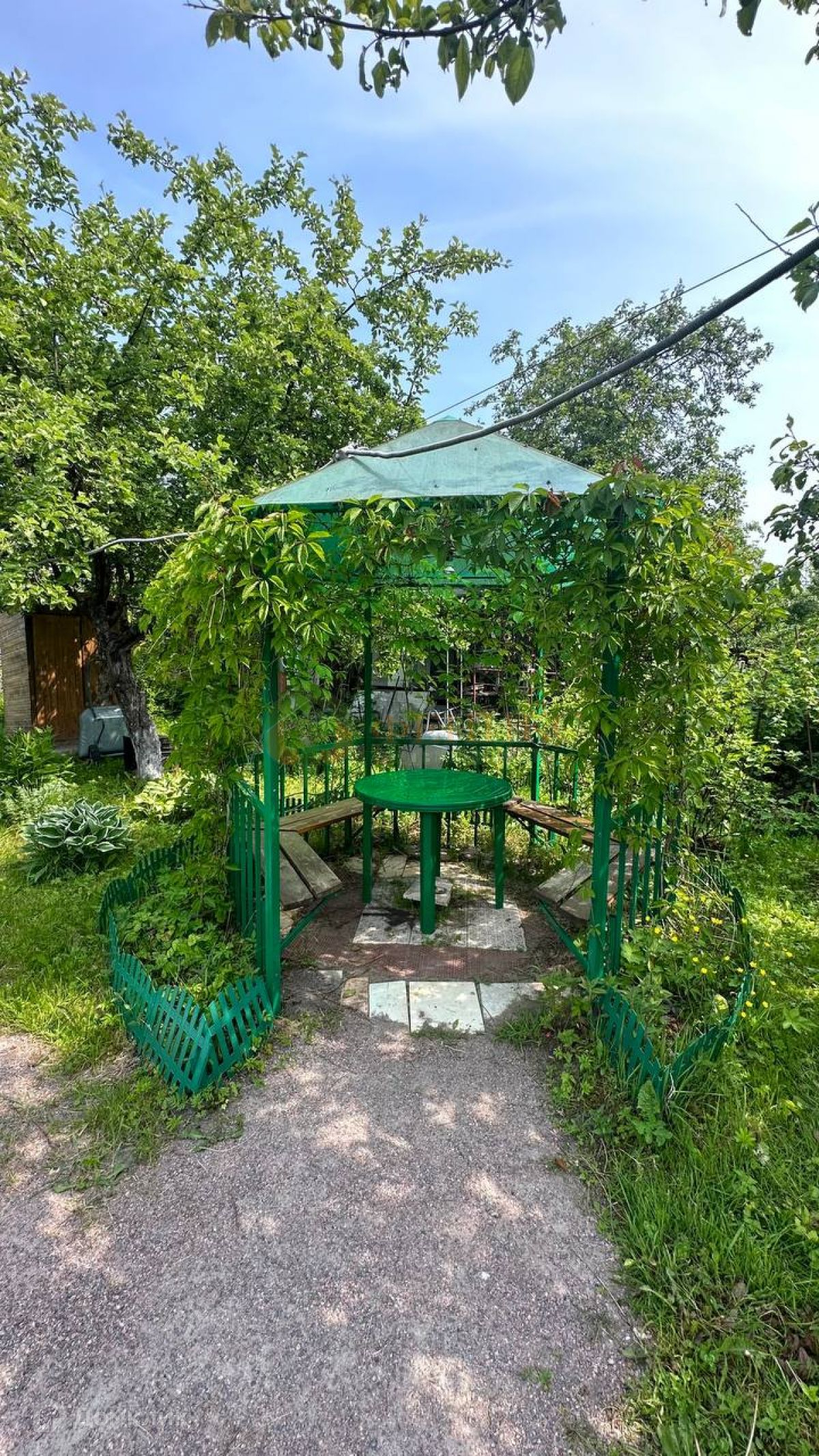 Туалет (торфяной биотуалет), умывальник и летний душ с бойлером на улице. Есть парник, сарай, беседка и гостевой домик 3х6 м.Номер объекта: #150/740581/82