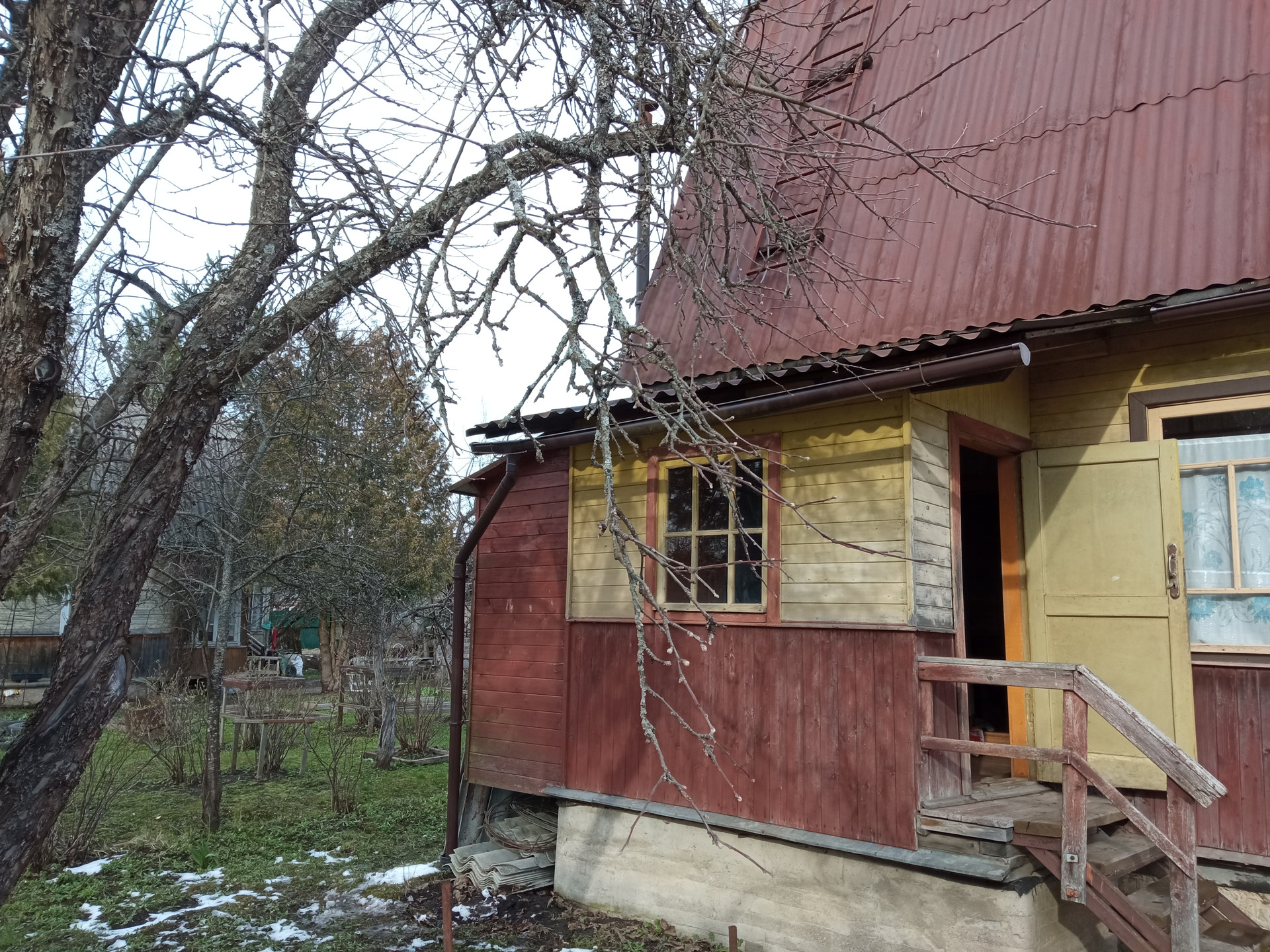 Участок ухожен, яблони, сливы, вишня, кусты малины, красной и черной смородины, крыжовник, грядки.