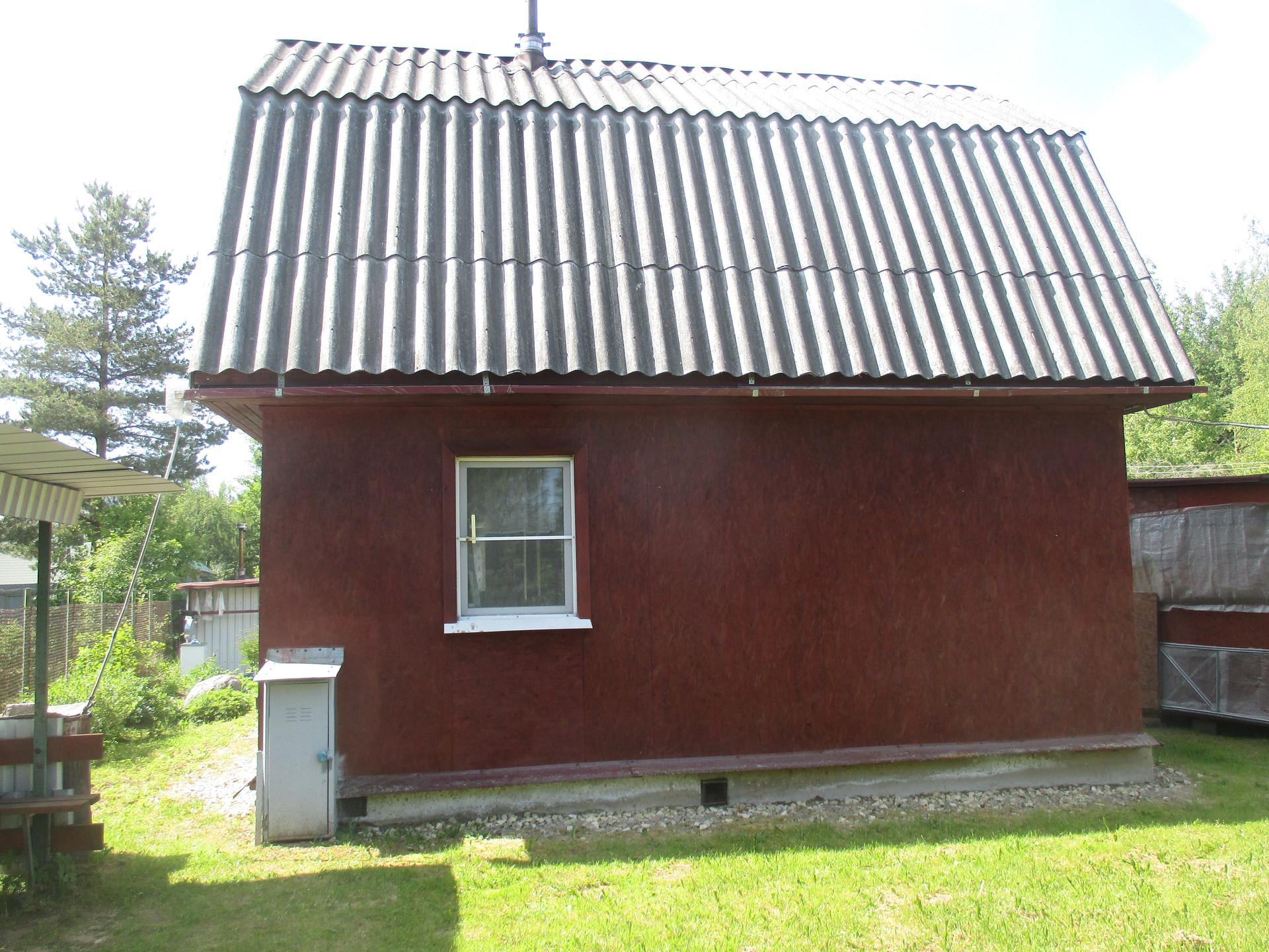 Материал кровли – шифер, влаговетрозащита. На крыше водослив.