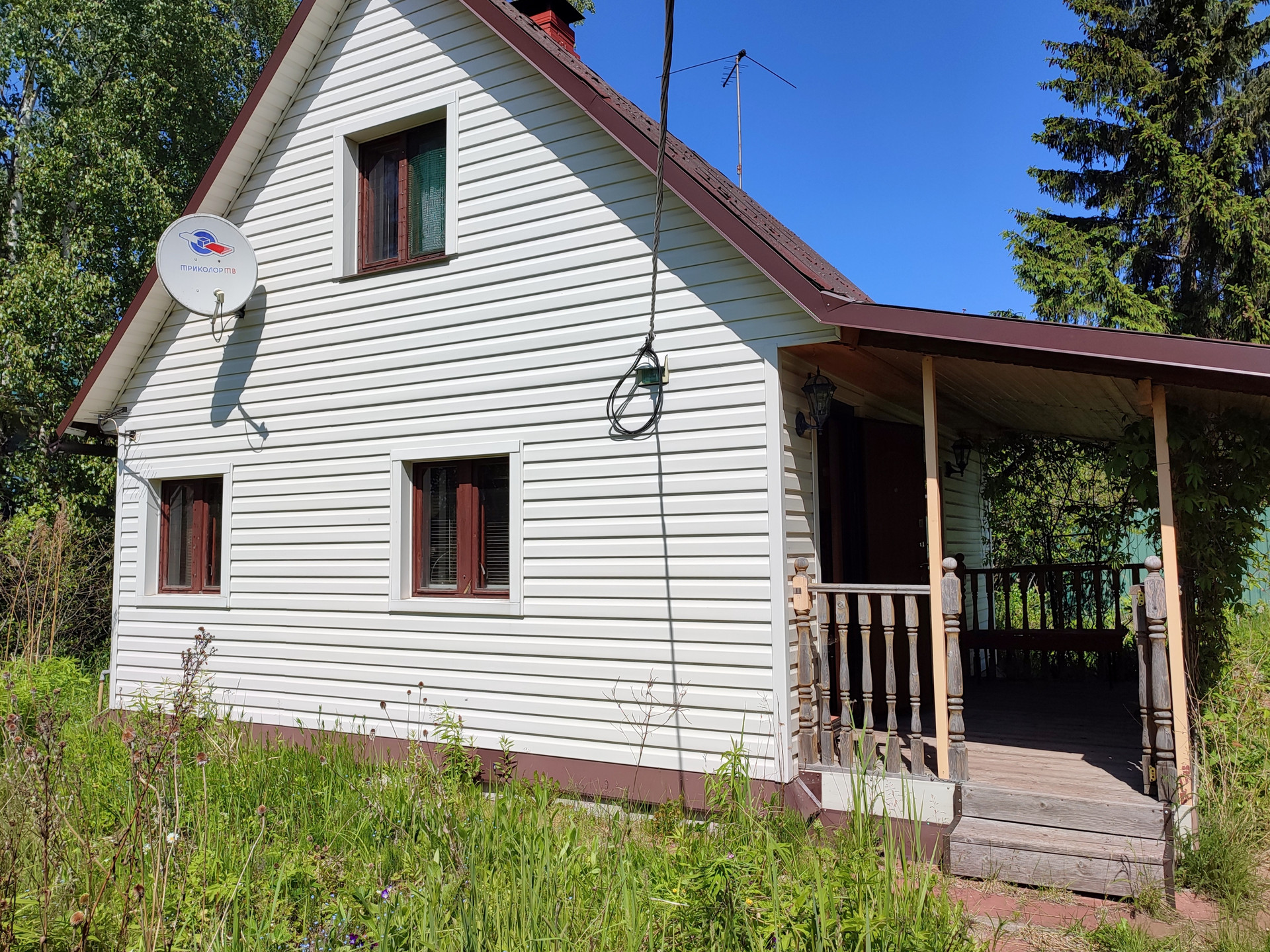 Дом имеет два жилых этажа, три комнаты, кухонная зона, терраса с уличной мебелью. Участок правильной формы сухой, ровный с соснами. Скважина на участке, насосная станция и водопровод. Электричество 380 в, 10 Квт. Современный безопасный щит с УДТ защитой.