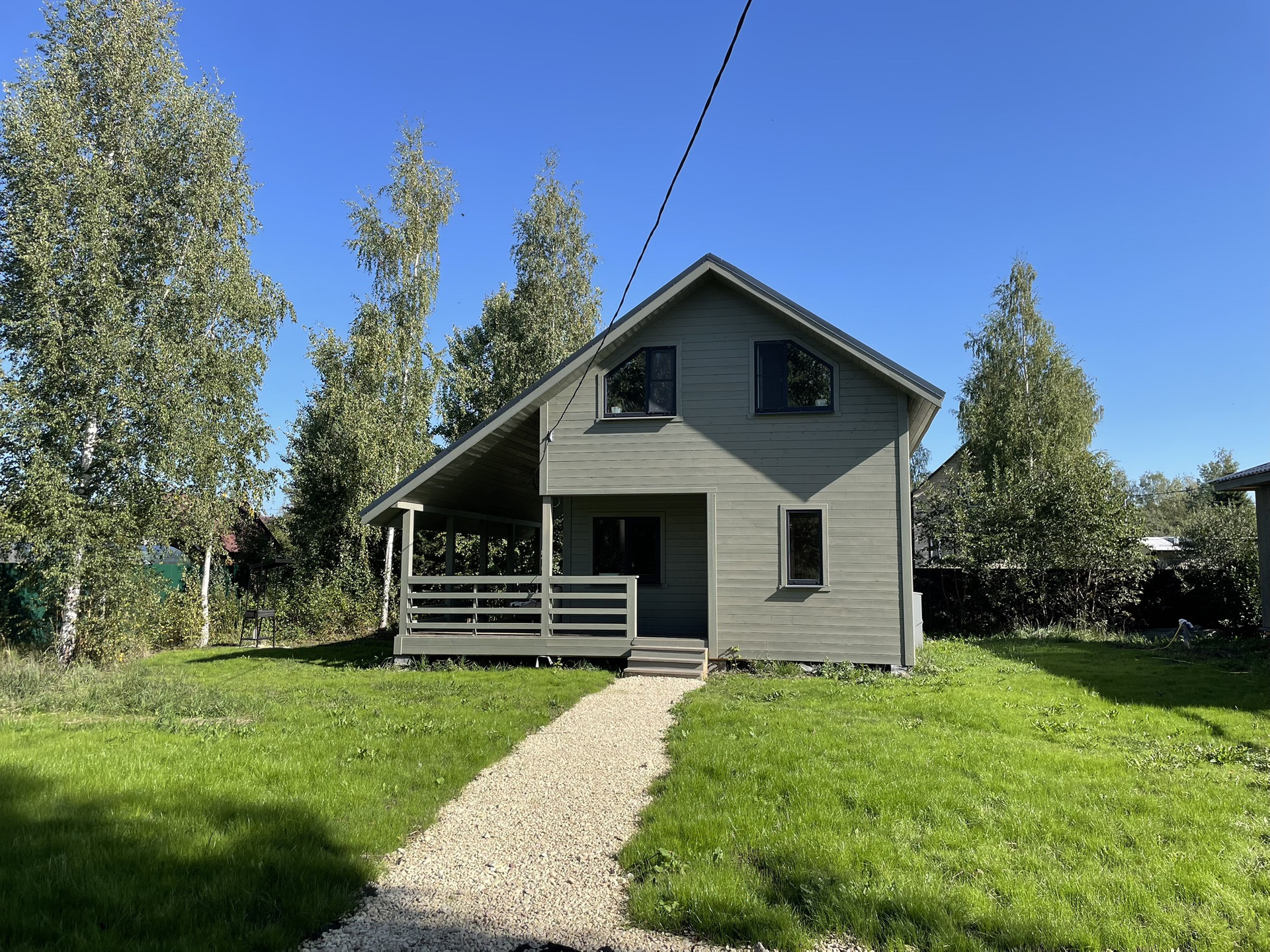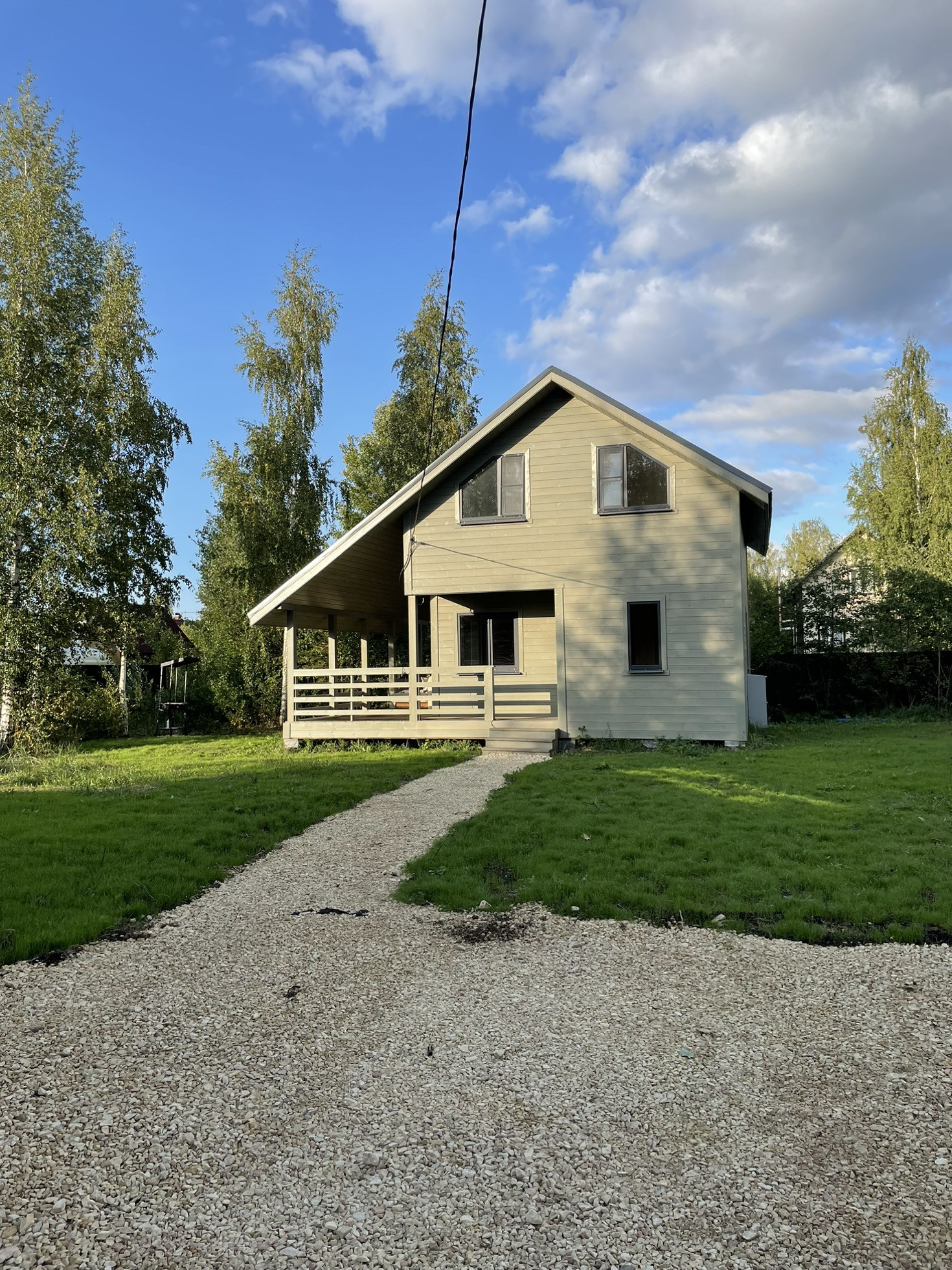 Участок выровнен и окружен крупными деревьями. Дом расположен в получасе езды от Московского и Красносельского районов, 10 минут до Гатчины и Туутари парка.