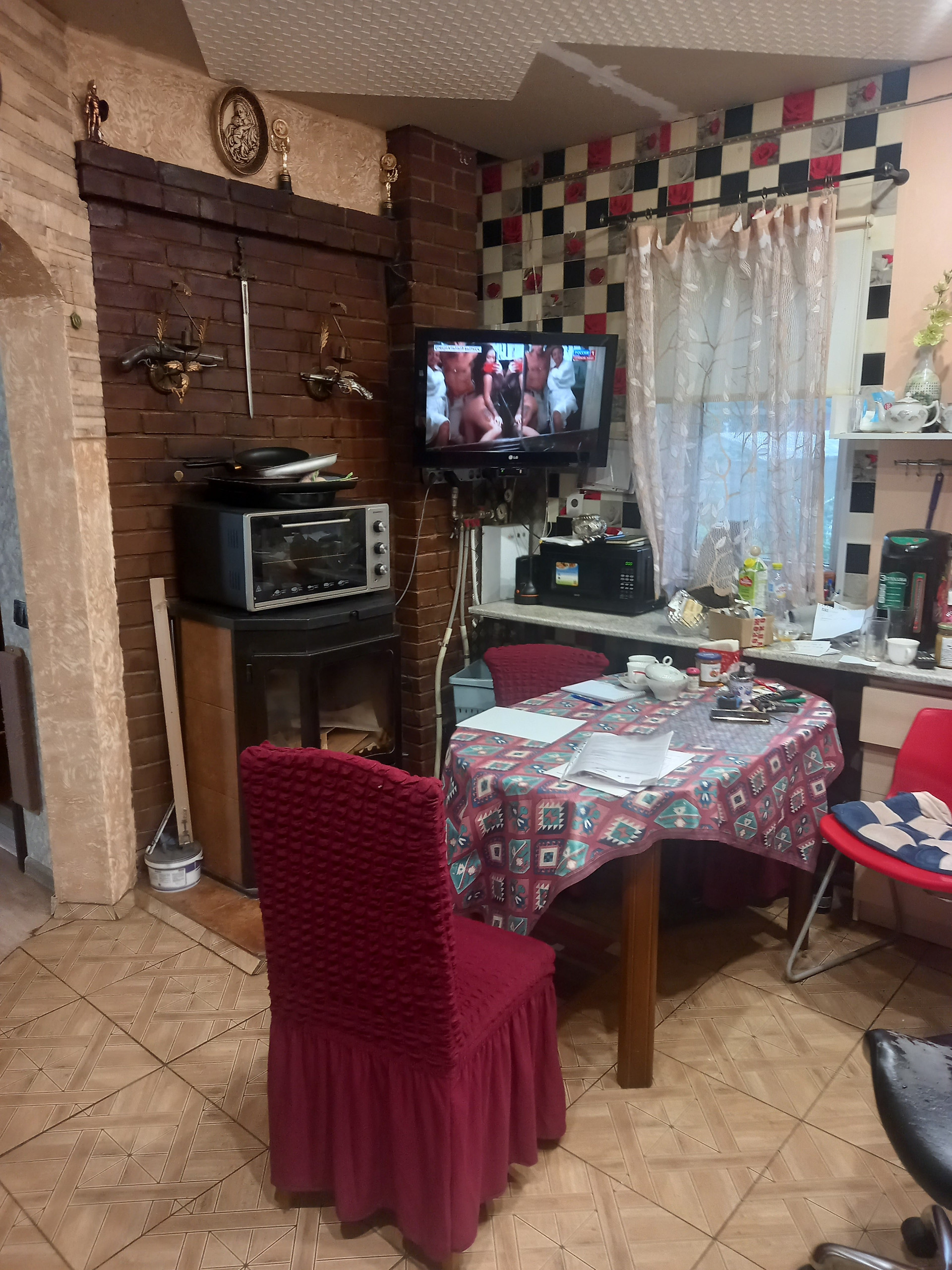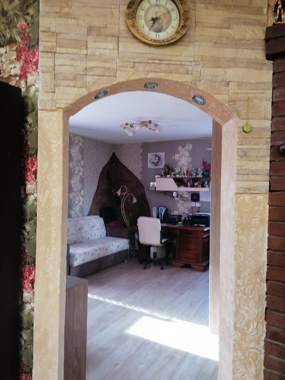 Первый этаж: кухня 13,5 м. с камином, гостиная17,5 м+ спальня 7,4м.