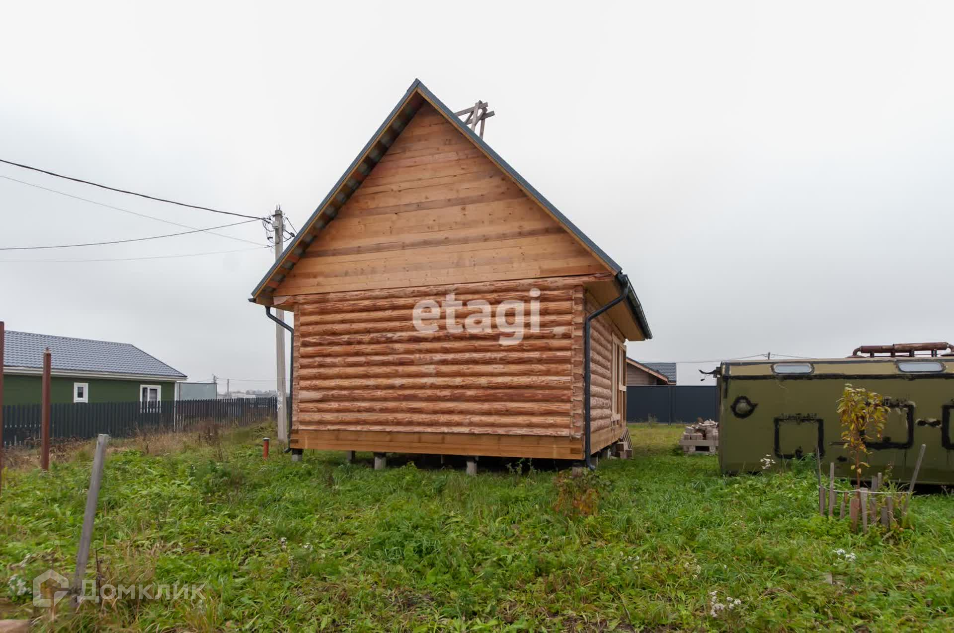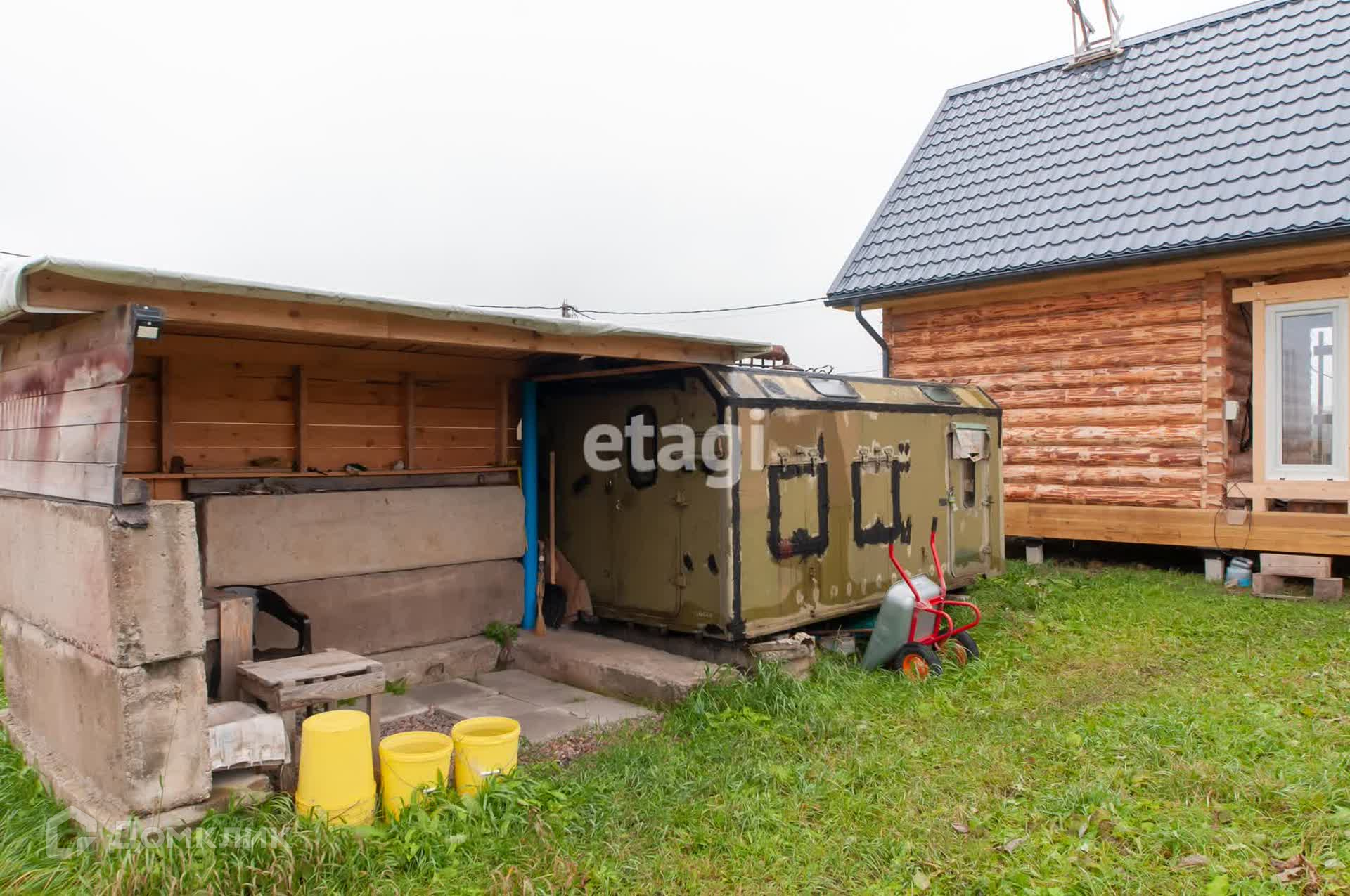На участке есть алюминиевый кунг, внутри более чем опрятный, освещение, розетки, спальное место, стол.