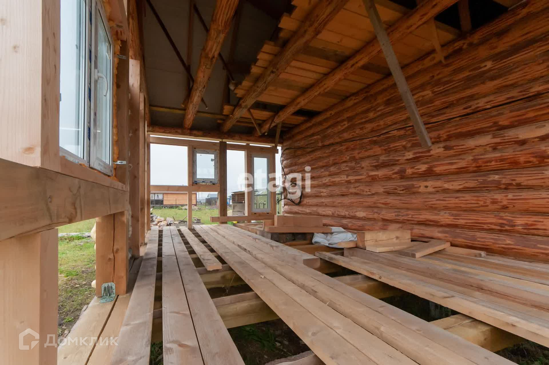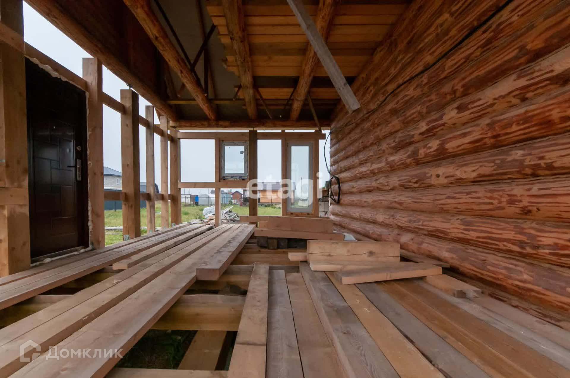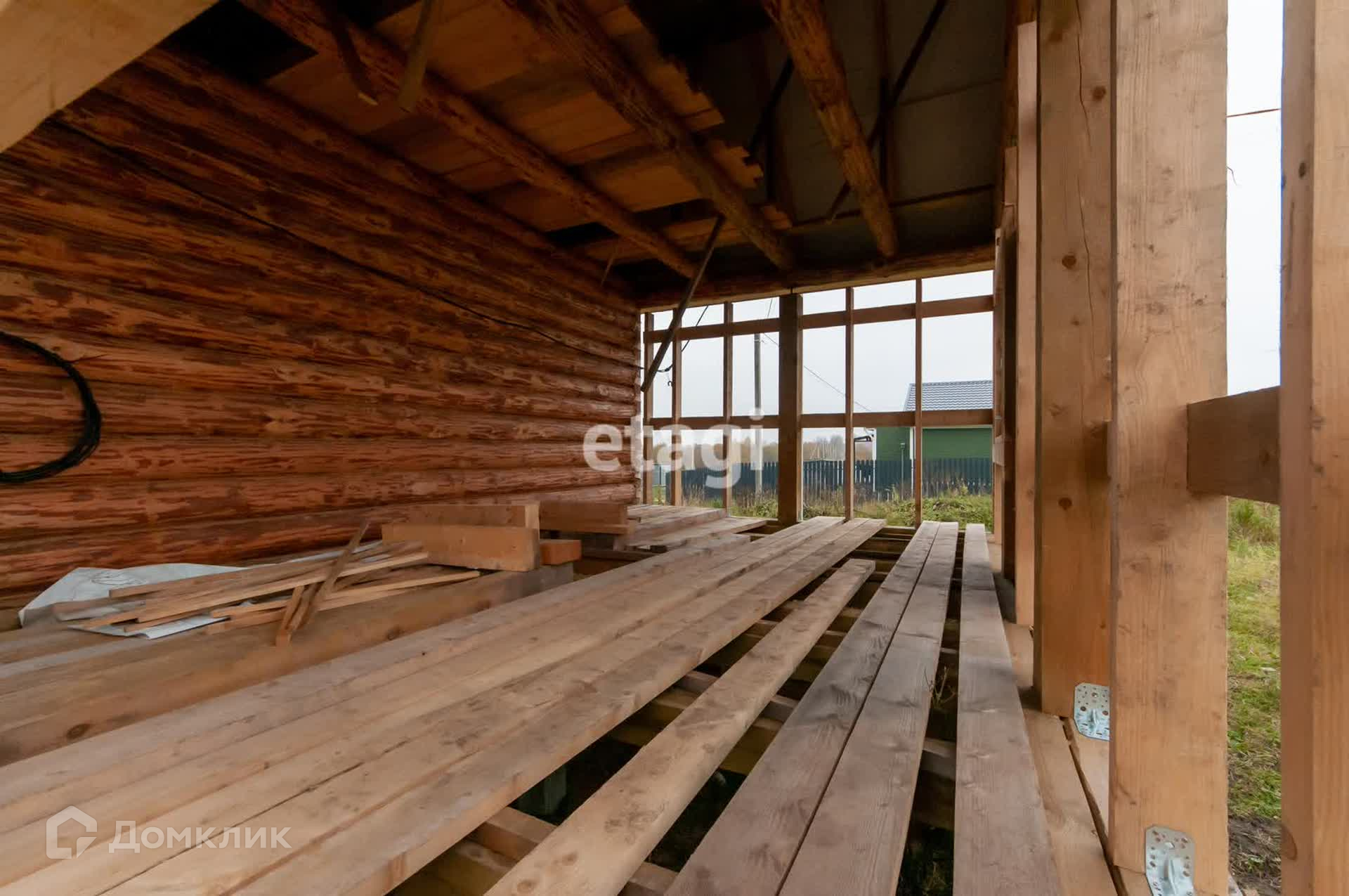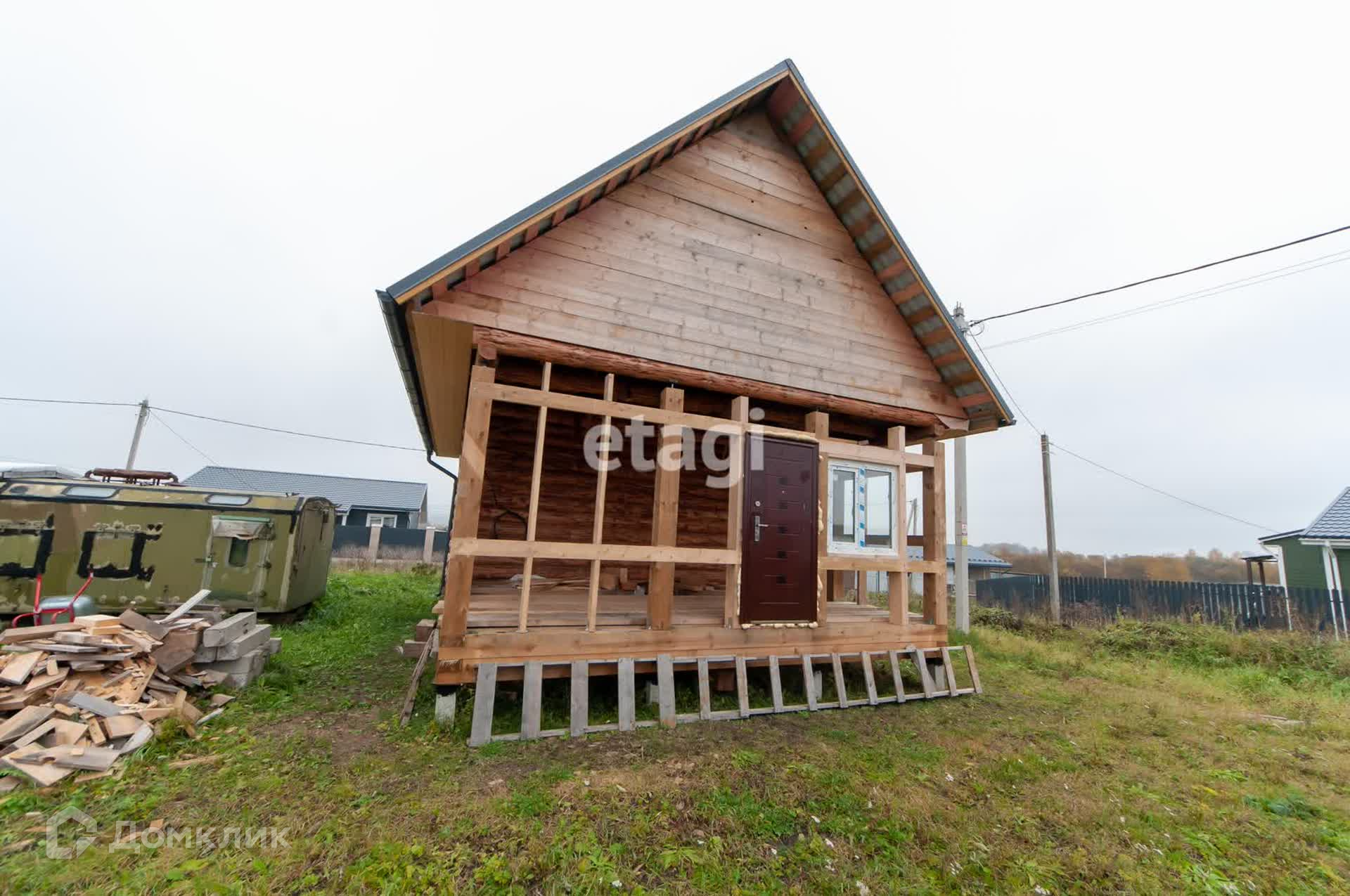 Строение представляет собой сруб 4х6 (срублен в лапу, бревно не менее 200) с выносом 4х6, материал из Псковской области.