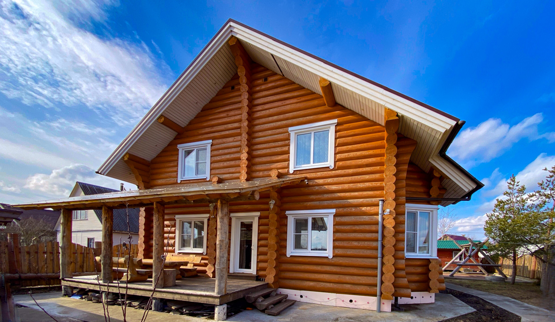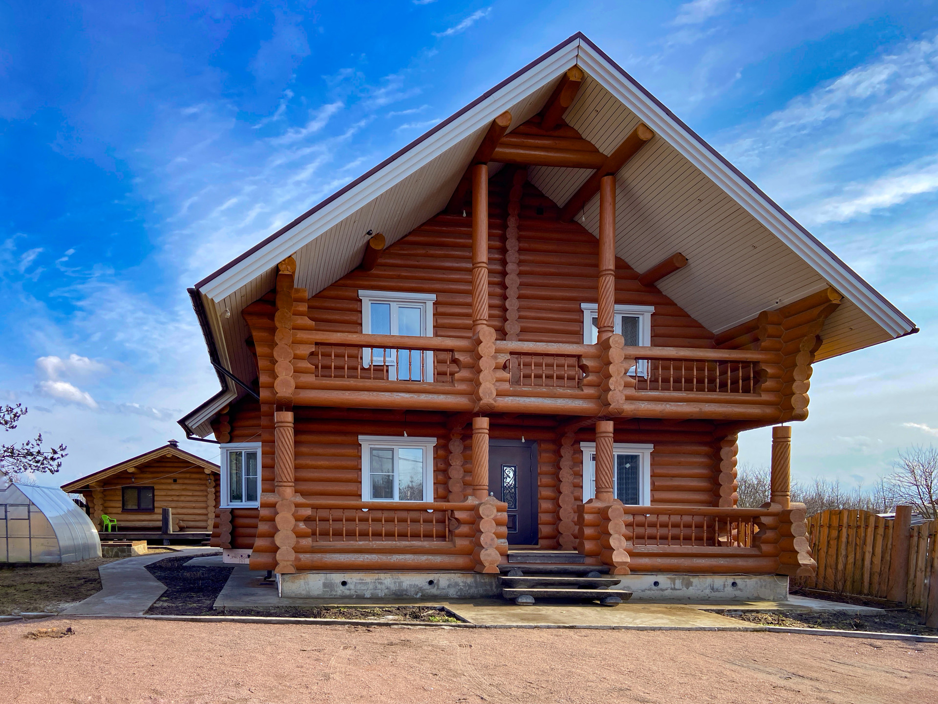 Полностью готовый зимний дом из бревна 210 кв. м, 2 этажа, для комфортного круглогодичного проживания.