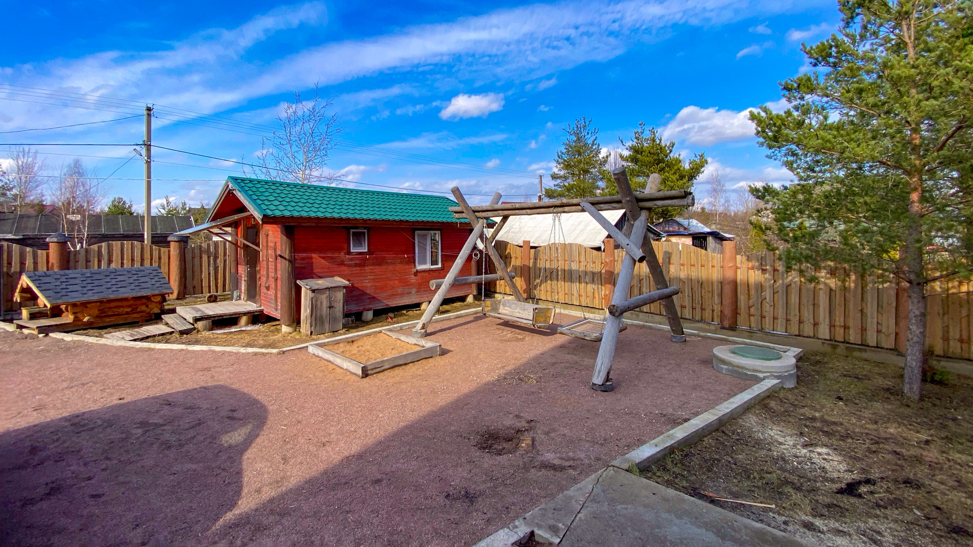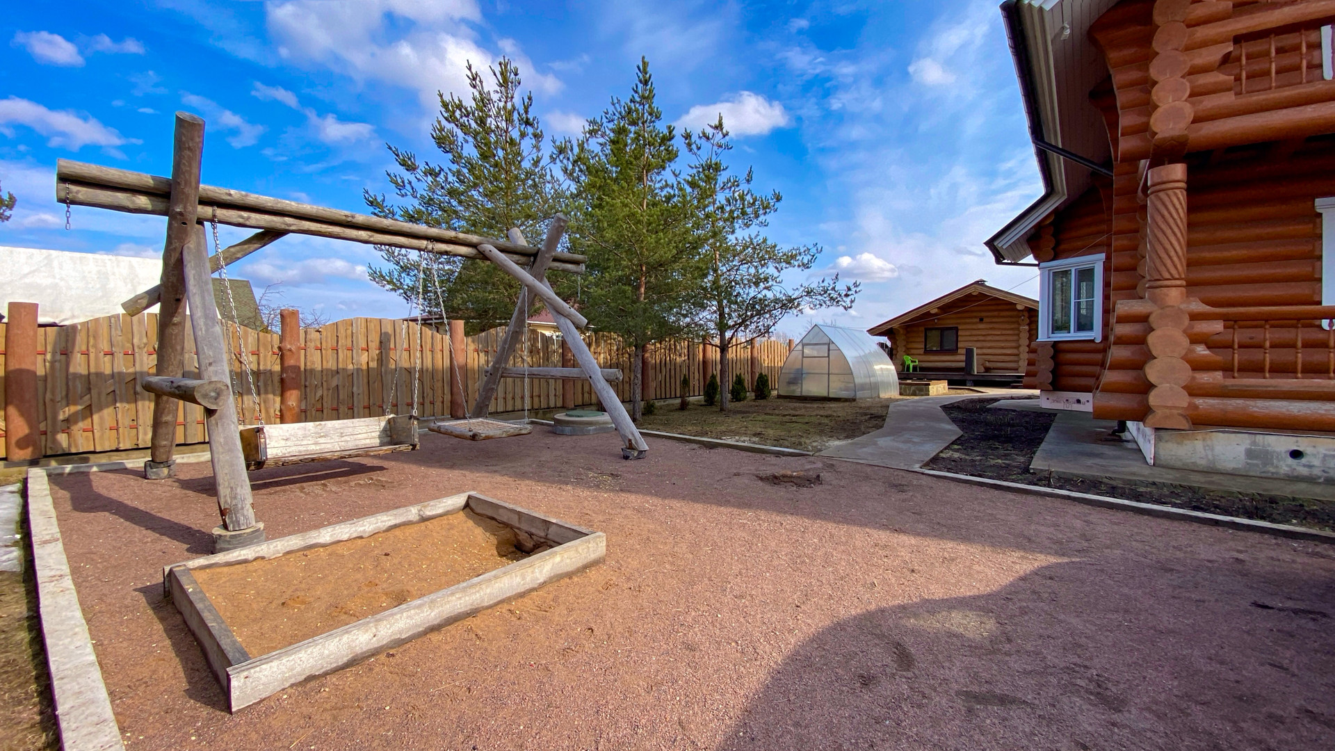 Детские качели, парник, крытая мангальная зона