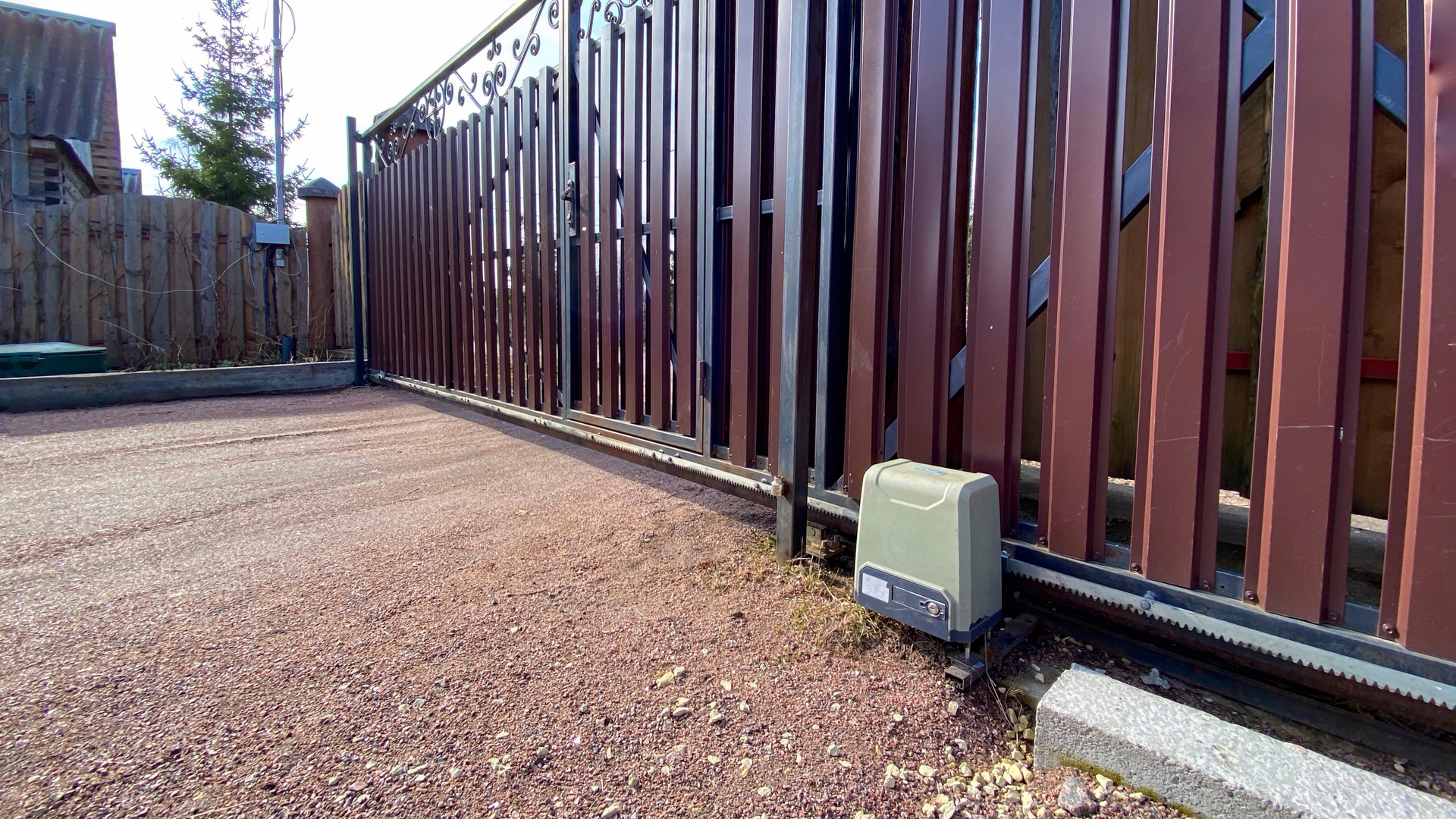 Установлены откатные ворота с электроприводом с дистанционным управлением.