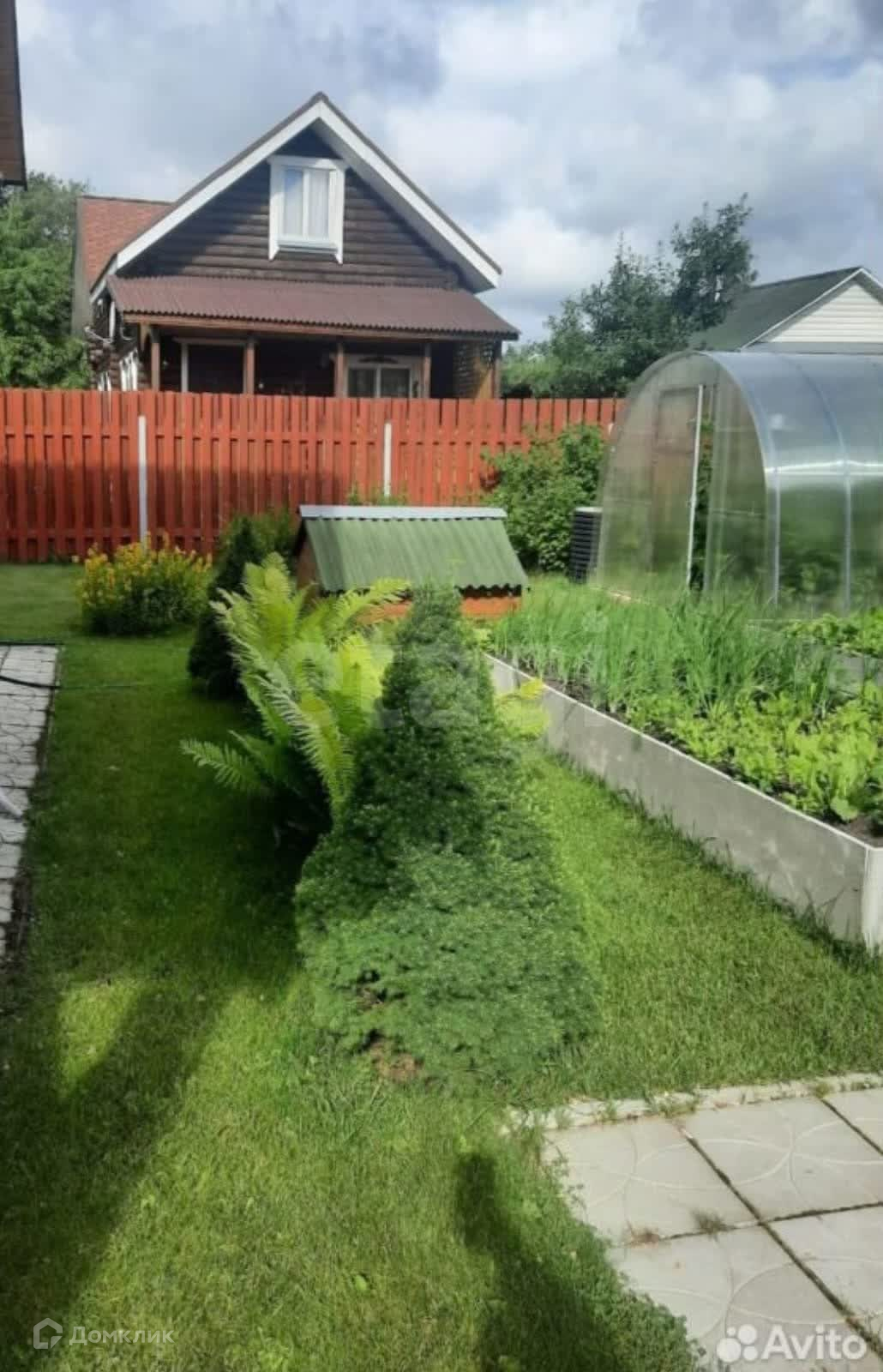 Участок 6 сот.огорожен забором и автоматическими воротами. Территория участка облагорожена: уложен рулонный газон, высажены туи, плодовые растения и кусты, декоративные цветы.