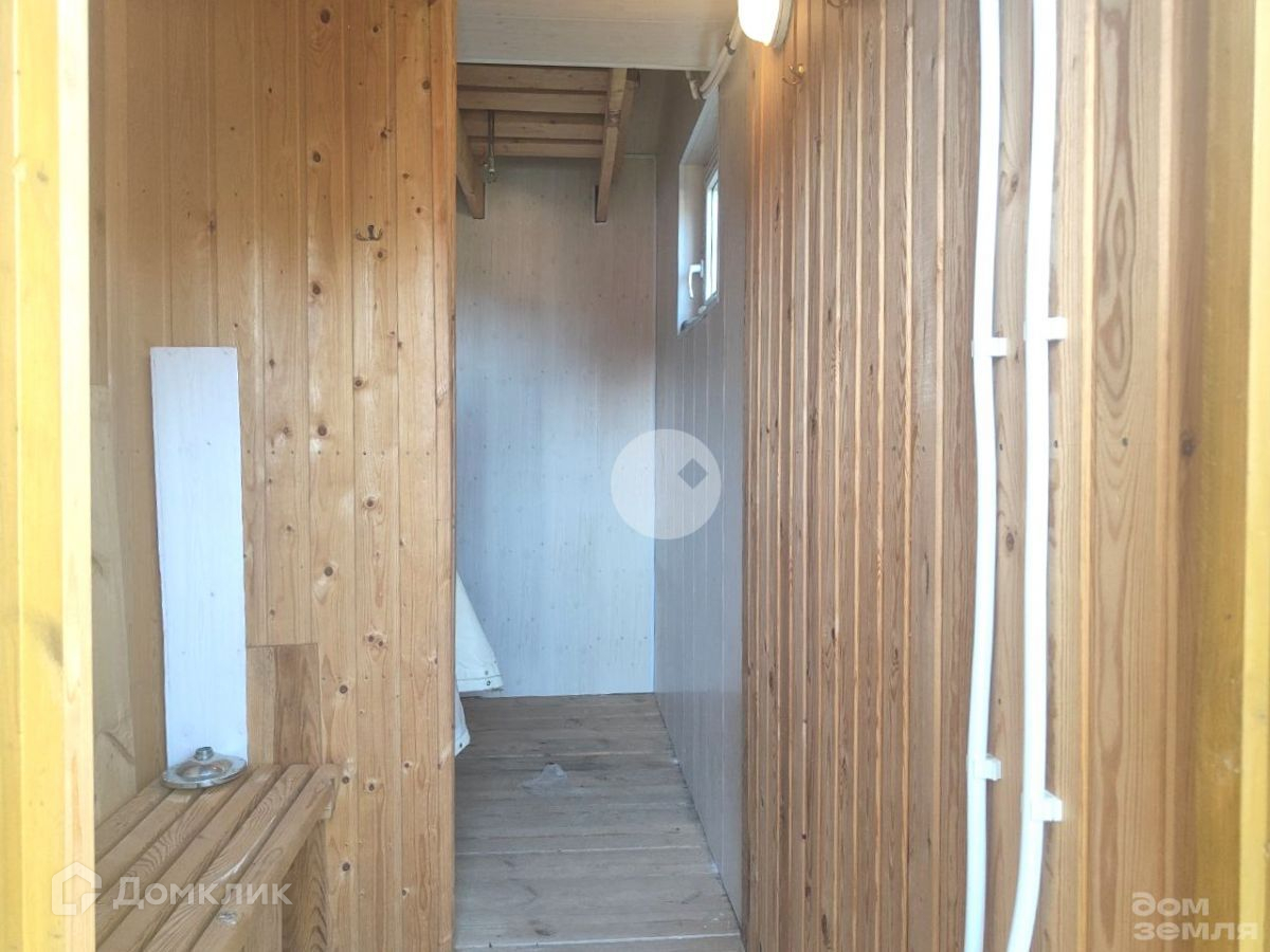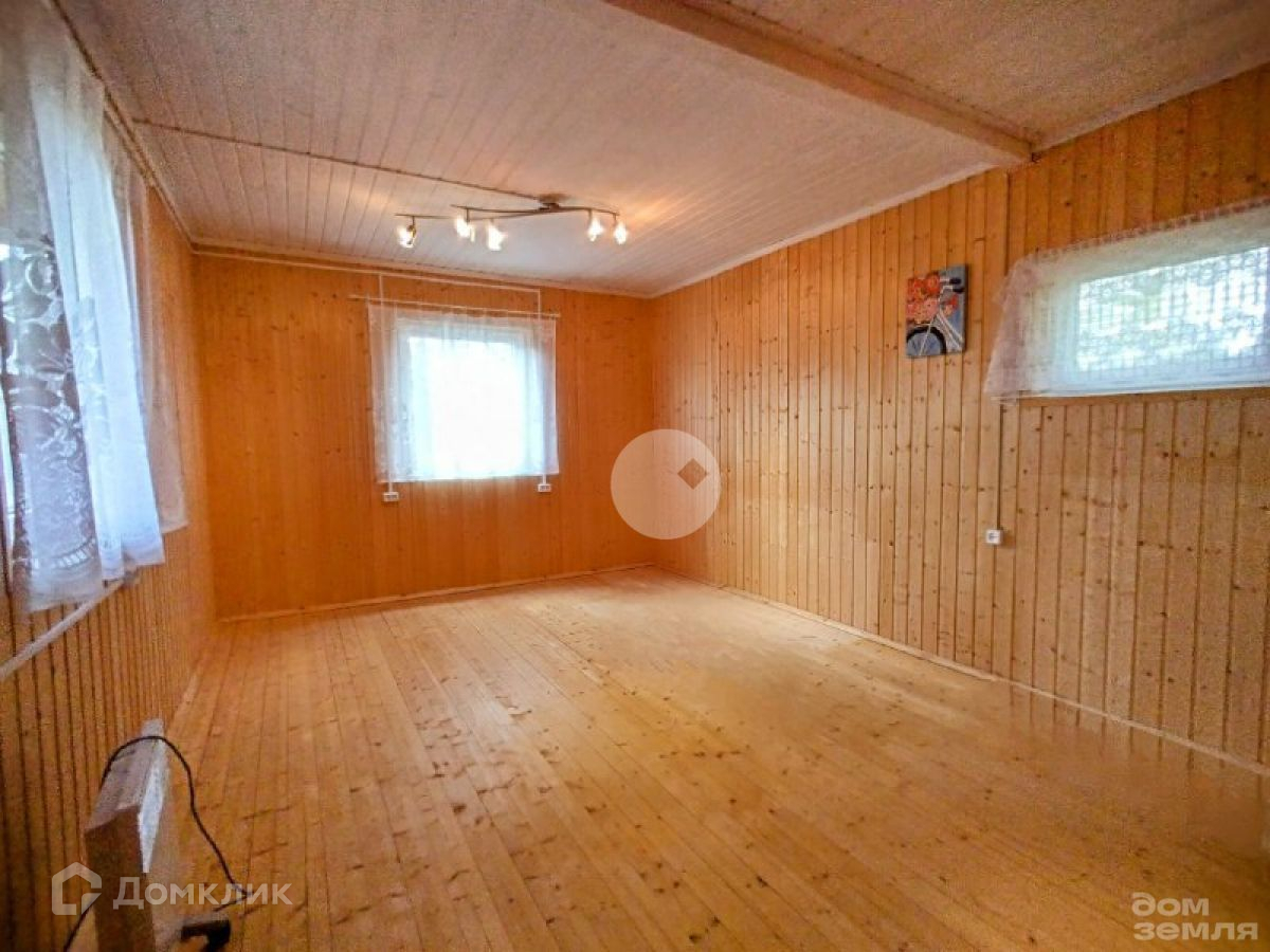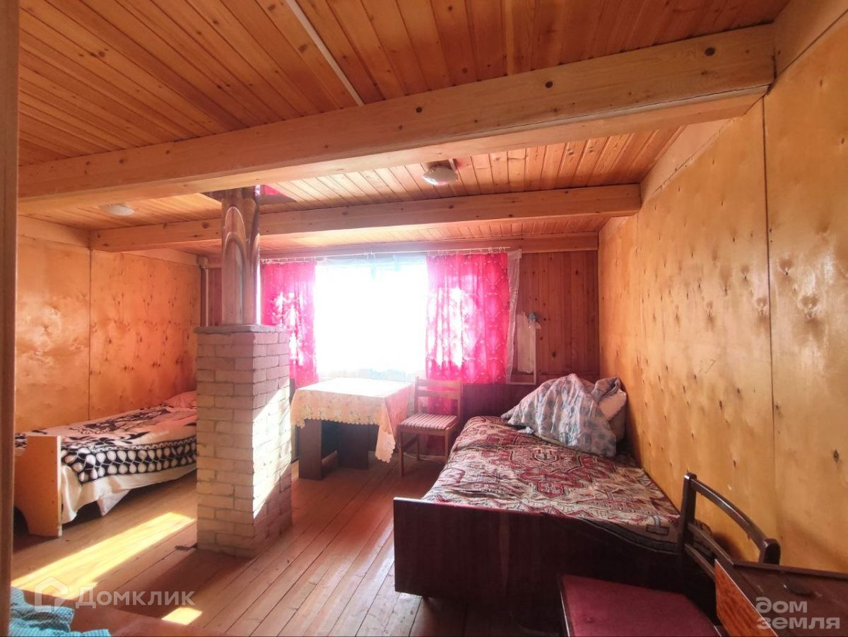 Бревенчатый  дом 1994 года постройки. Стоит на блочном фундаменте. Крыша покрыта шифером. На первом этаже  комната с кирпичной печкой, кухня и веранда. На втором этаже 1 комната. Внутренняя отделка - вагонка.