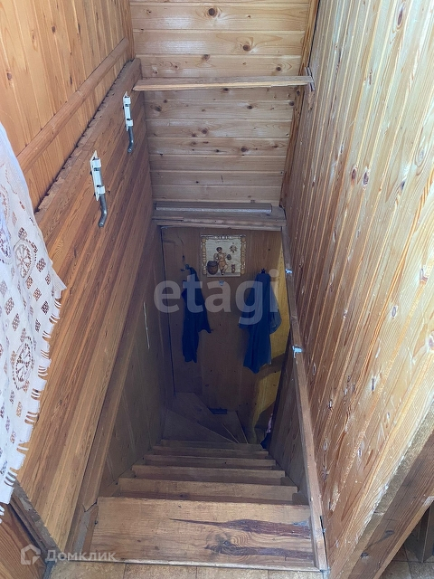 Площадью 52.4 кв. м, на первом этаже кухня, комната с печью. На втором этаже жилая комната.
