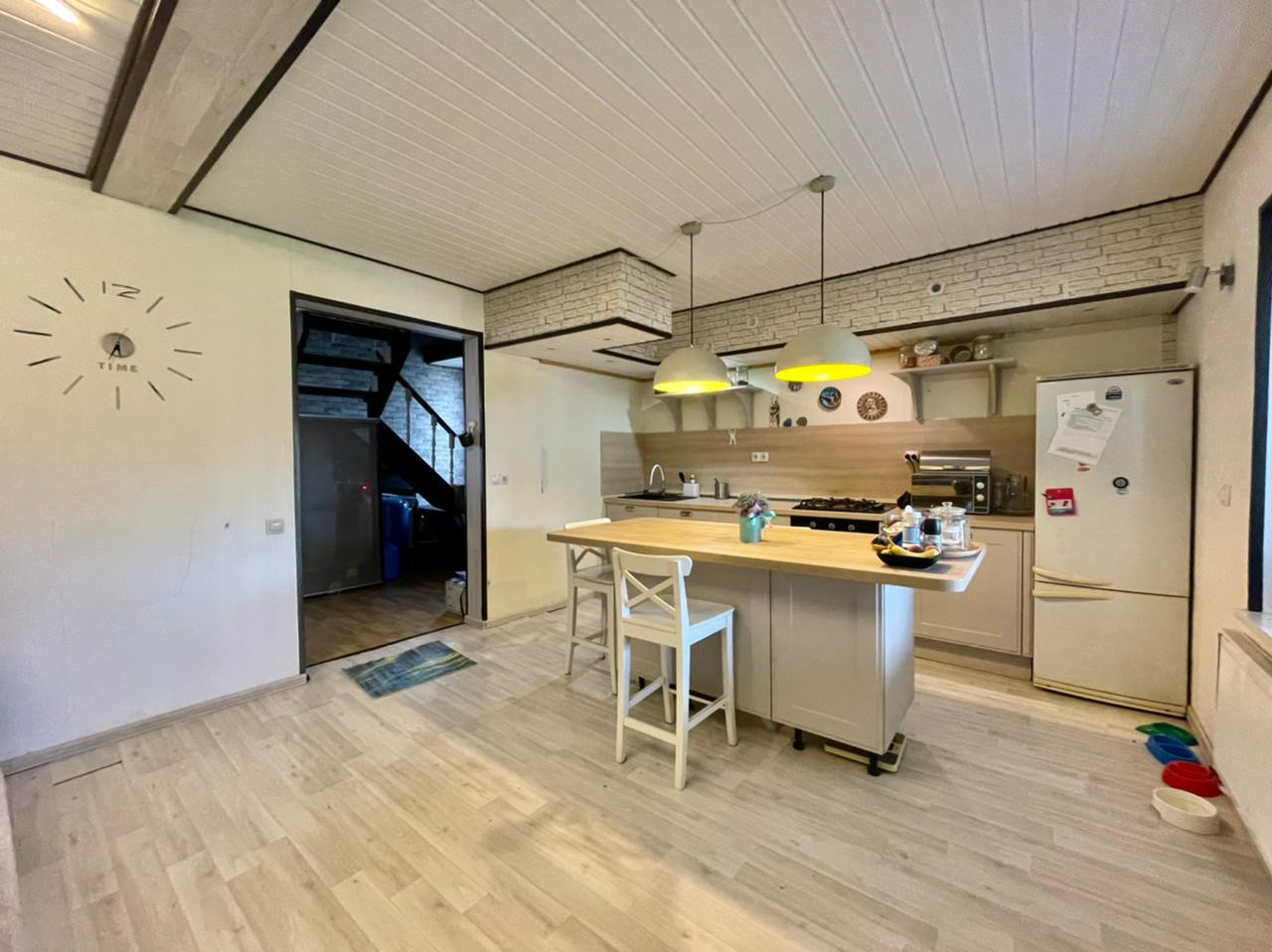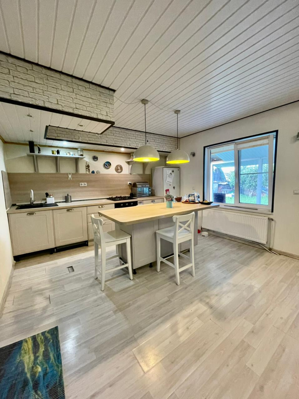 1-ом этаже: холл, большая кухня-гостиная (все встроенное оборудование остается новым хозяевам: посудомойка, варочная поверхность, духовой шкаф, холодильник), открытая терраса, санузел.