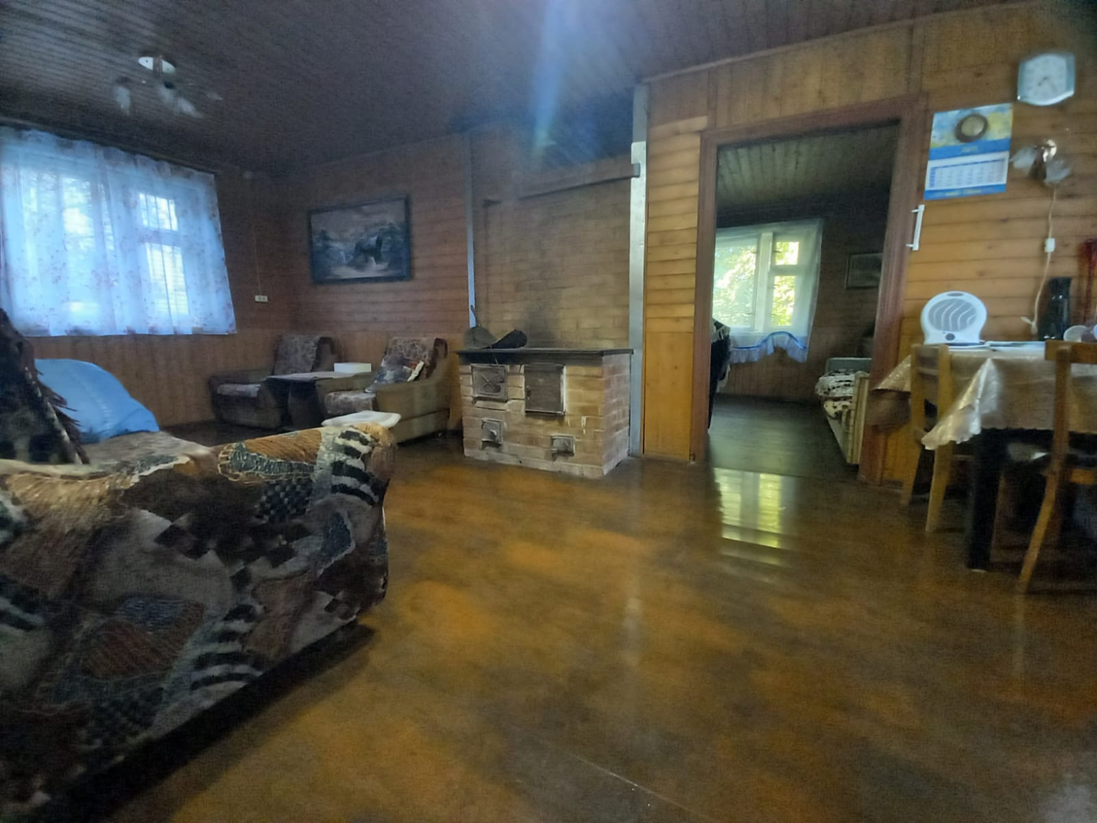 На участке расположен теплый зимний дом из бревна, который утеплен и обложен кирпичом. В доме хорошая печь, 4 комнаты, кухня, и летняя веранда.