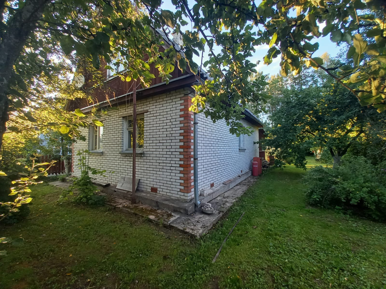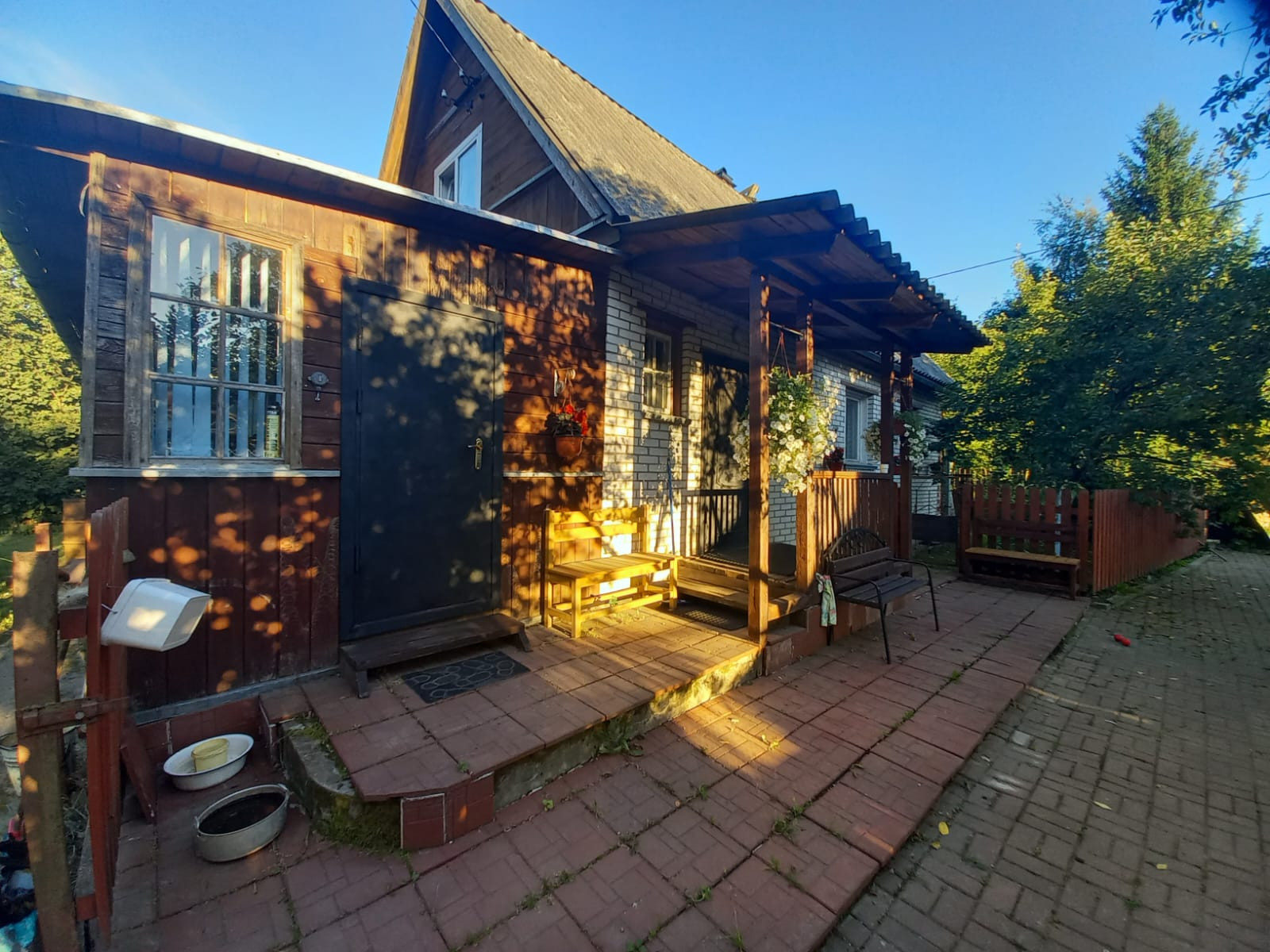 Участок огорожен, въездные ворота, тротуарная плитка. На участке парник, теплица, беседка, газон, пруд, плодовые деревья, кустарники, дровник с дровами, металлический гараж 6х4м, и качели. Все сделано с душой для отличного отдыха и приятного времяпрепровождения.