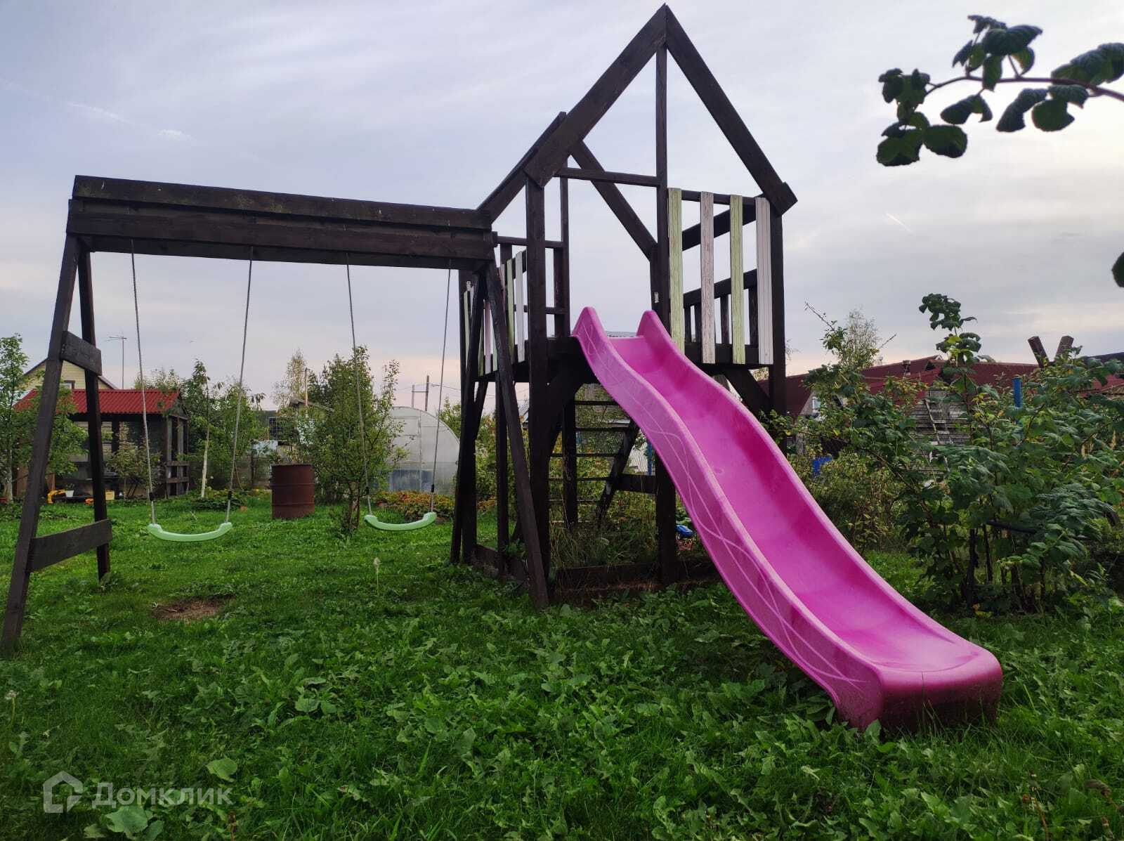 Участок: 6 соток. Участок солнечный. Земля отличная (не глина), растет всё! Все разработано с любовью, посажены плодовые деревья: яблони, слива, вишня; и кусты: смородина, крыжовник, малина; и красивейшие цветы. На участке есть беседка, бассейн, хозяйственный блок, деская площадка, теплица из поликарбоната. У участка есть отдельное место для парковки одного автомобиля. Вьезд на участок отличный. Ворота распашные.